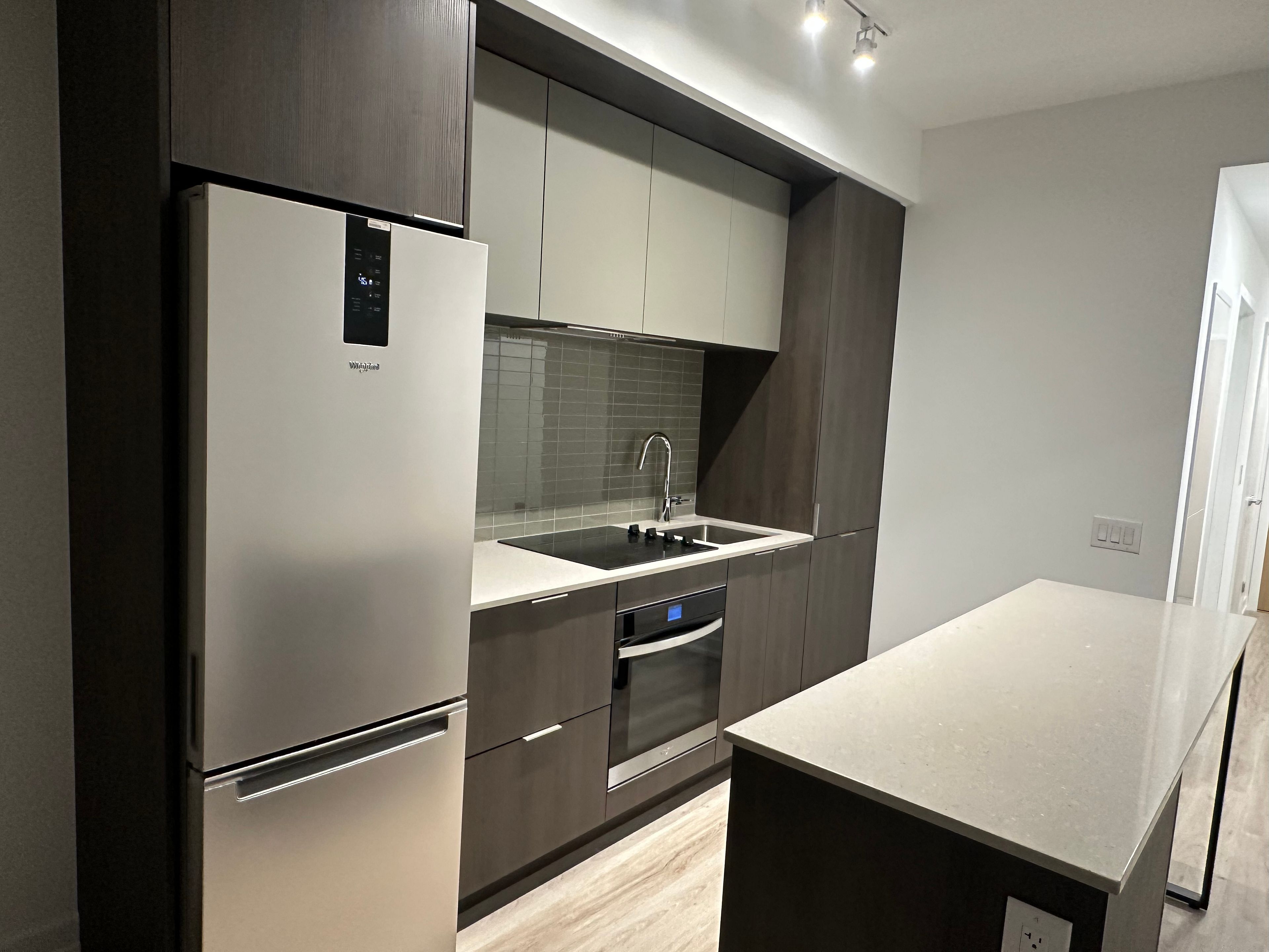 Brand new and never lived in, this modern one bedroom condo is perched on the 43rd floor and offers breathtaking views over the city. The bright open concept layout features a sleek kitchen with full sized integrated appliances, quartz countertops, and a spacious island, flowing seamlessly into the sun filled living area . The bedroom provides a comfortable retreat with generous closet space, complemented by a contemporary four piece bathroom and convenient in suite laundry. Located in the city centre district, just steps to square one shopping centre, dining, transit, and everyday amenities, with quick access to highways 403, 401, and the qew. One locker is included. An excellent opportunity to enjoy brand new, low maintenance urban living in the heart of mississauga.