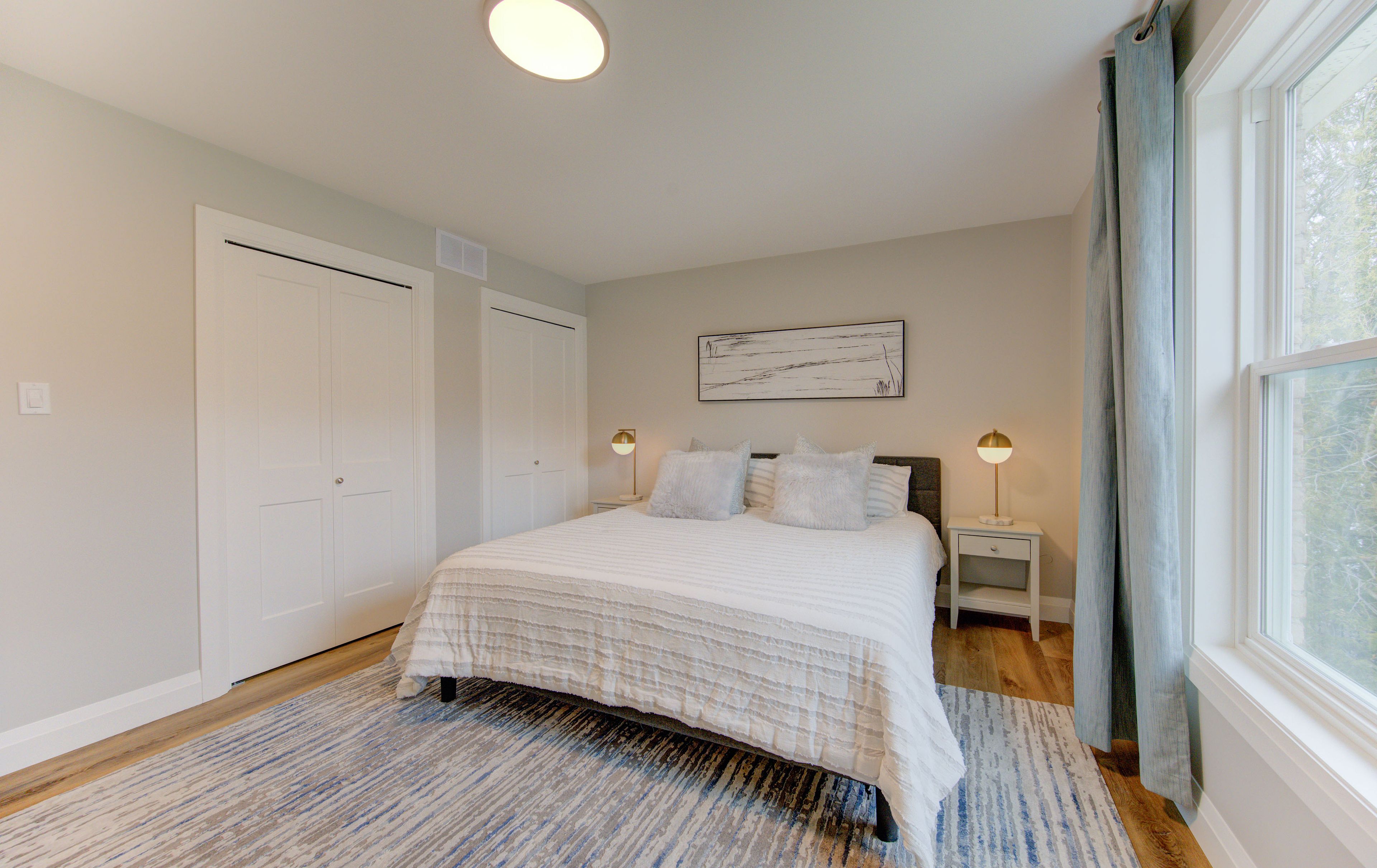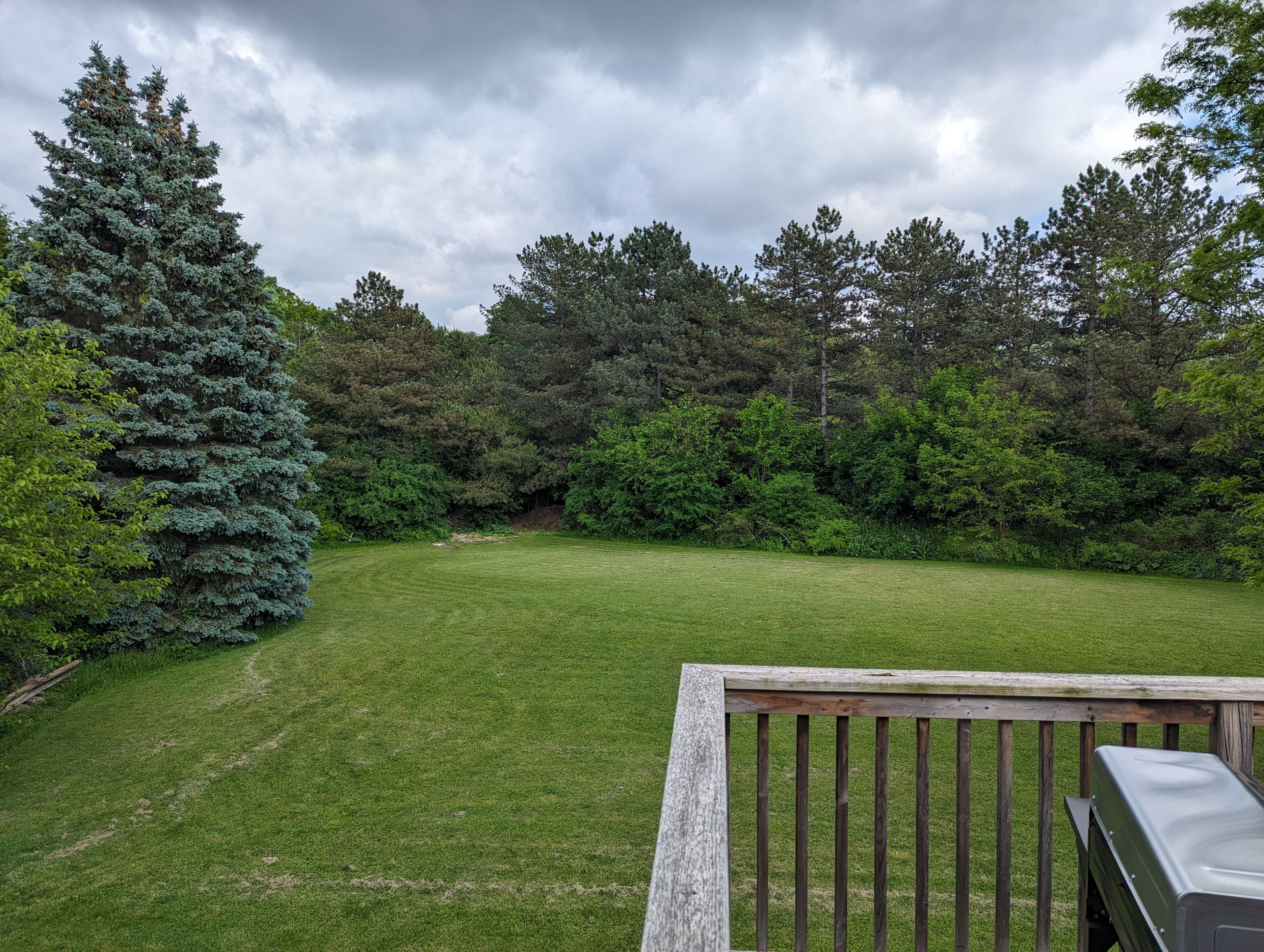 • Expansive backyard deck offers a private outdoor retreat for relaxation.