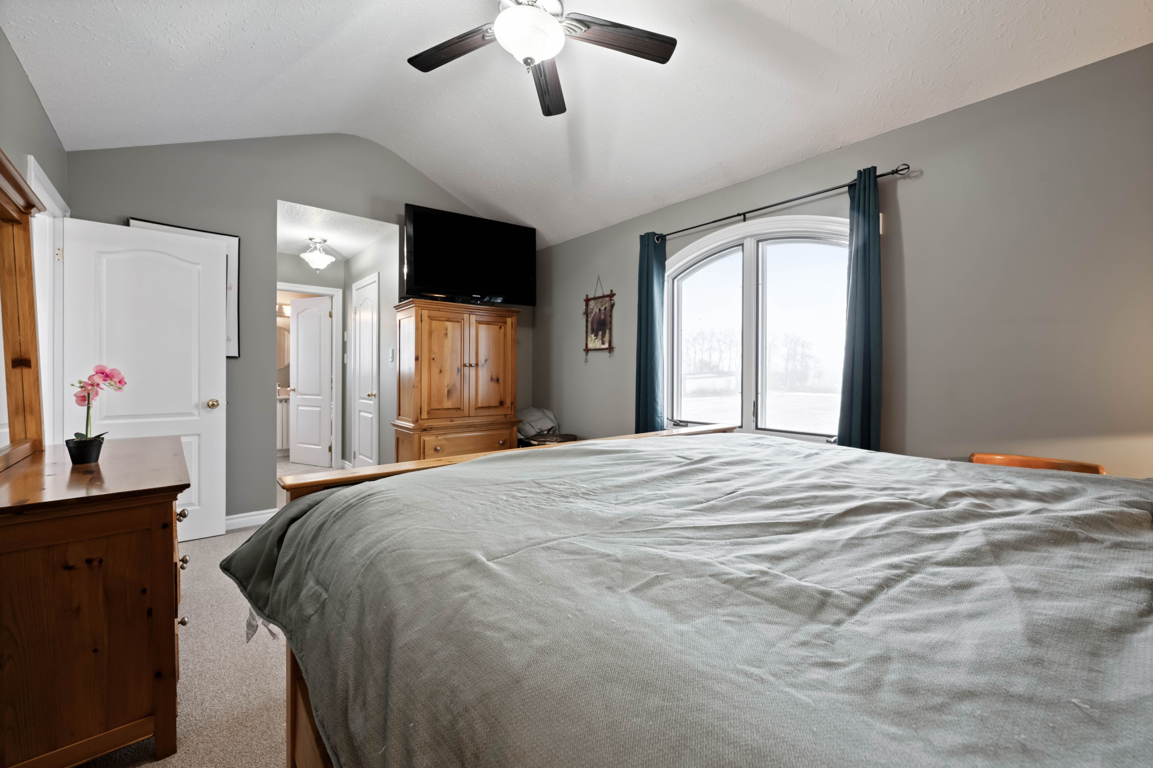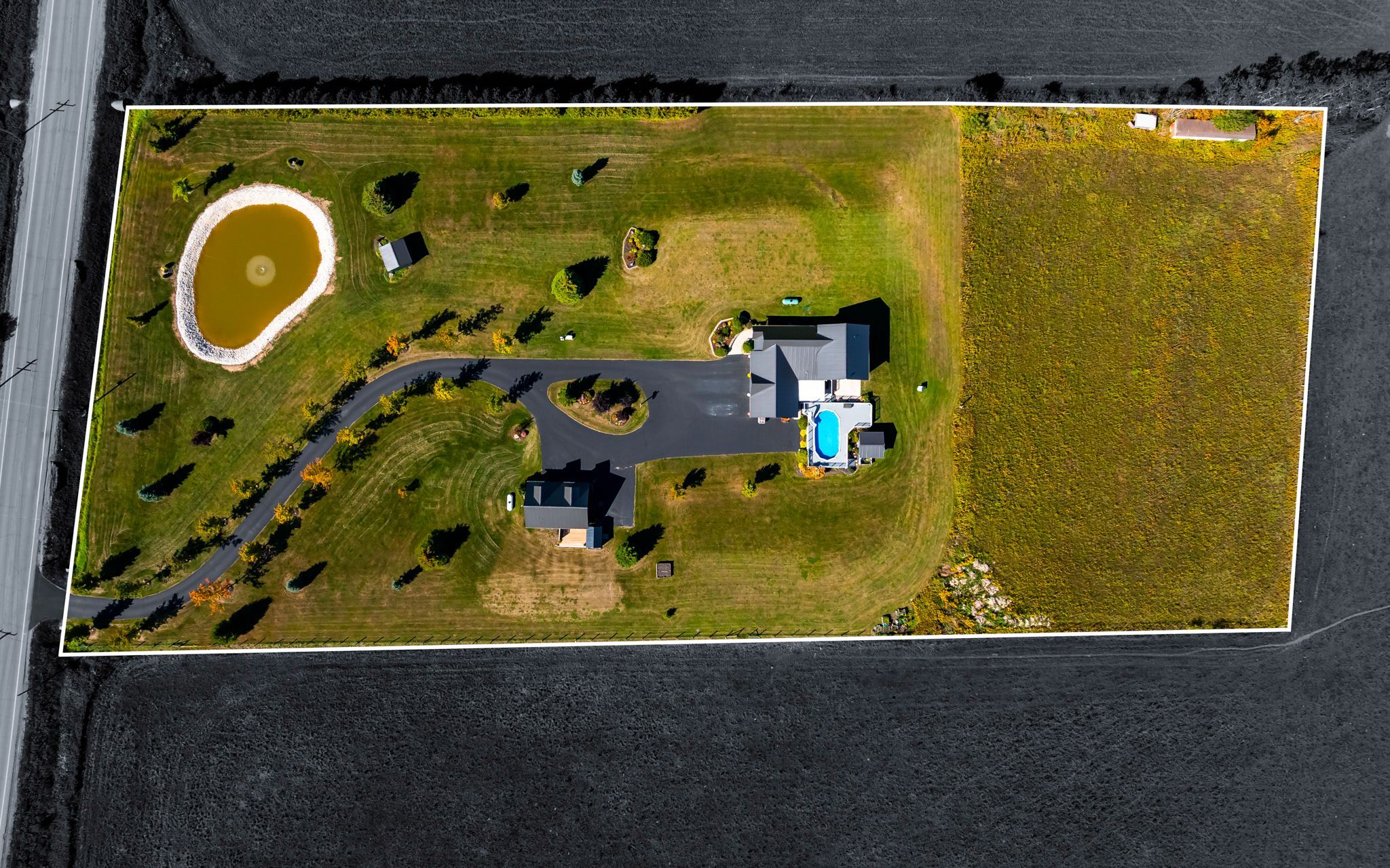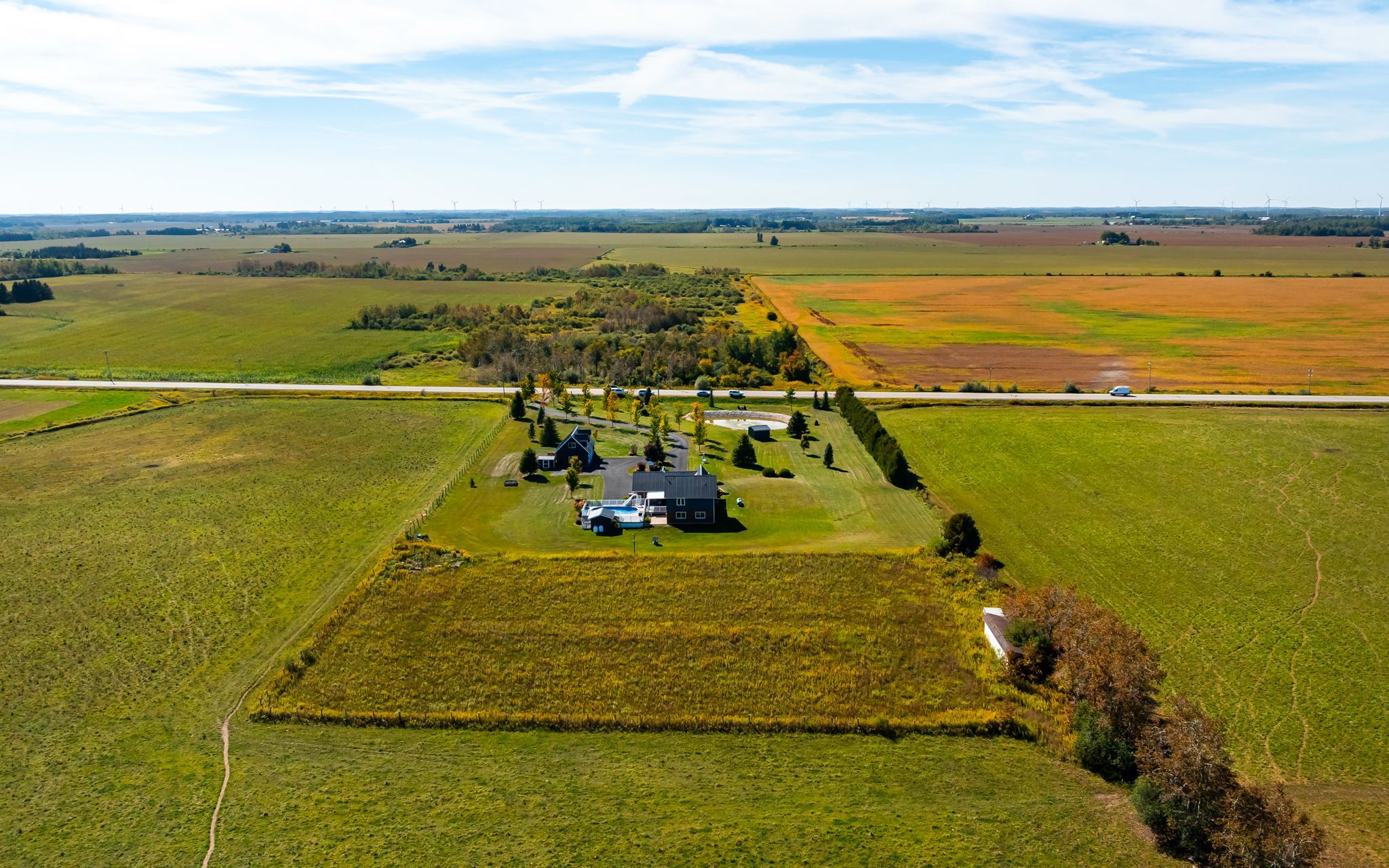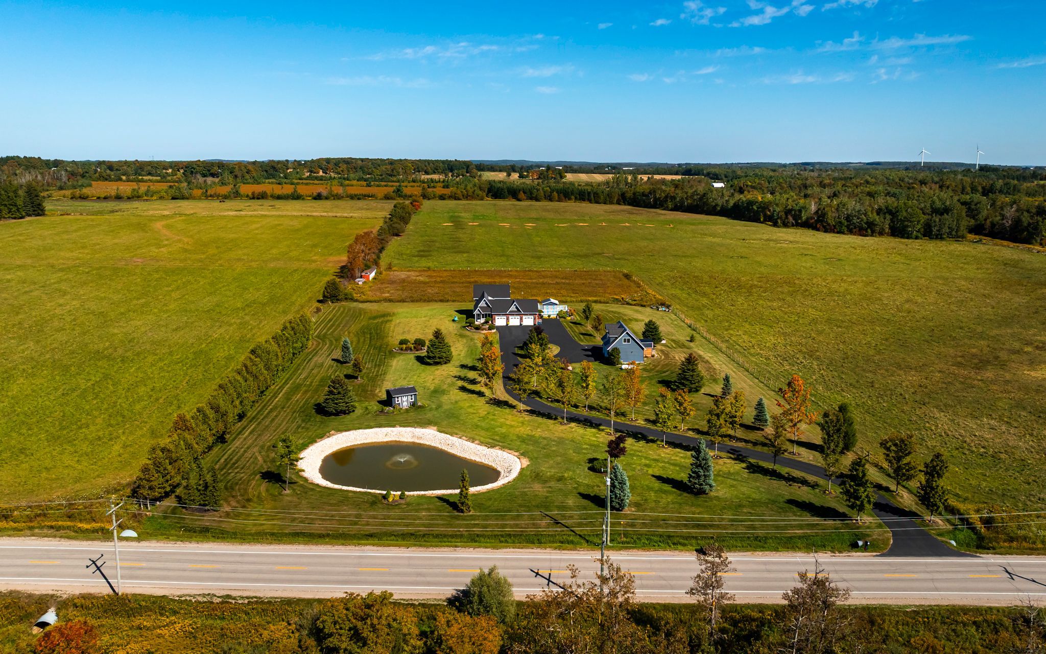 This freshly painted country home is living at it's finest. Set on 5 acres with beautiful landscaping and a spring fed pond, there is a 4 bedroom main house with 3 car garage and a 2 bedroom detached coach house. This property is perfect for multi generational families or those looking to earn an income on rent. The 4 level back split house was custom designed by the current owners with large inviting rooms, over sized windows, insulated interior walls and ceilings for sound proofing, hard wired sound, hard wired internet, and more. The open concept main floor consists of a combined living room and dining room with cathedral ceilings and a pellet stove. You'll also find an eat in kitchen with a propane stove to cook on, a breakfast bar and a walk out to the partially covered deck and heated pool with slide. Upstairs is three bedrooms, including a primary with cathedral ceilings and a spa like 4 piece ensuite with jacuzzi tub. There's also a second 4 piece bathroom on this level. The above grade lower level has a 4th bedroom with a 3 piece semi ensuite bathroom, large family room with propane a fireplace and wet bar, a second walk out to the deck and pool, along with the laundry room. The partially finished basement has a 5th bedroom with above grade windows, a rec room and a cold cellar. Back outside to the converted, detached 1500 square foot, two storey coach house, where you'll find an open concept main level with radiant heated floors, large kitchen, dining and living room with propane fireplace, a walk out to your private deck, laundry and a 4 piece bathroom. Upstairs on the second floor are two bedrooms, including a 2 piece ensuite. The coach house is heated via radiant boiler heating. Three sheds on the property, including power to the shed at the pond, all buildings have metal roofs, separate septic for the coach house, separate propane tanks for the main house, coach house and heated pool. Generac generator. Pride of ownership is abundantly clear.