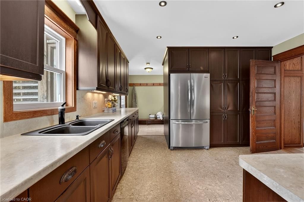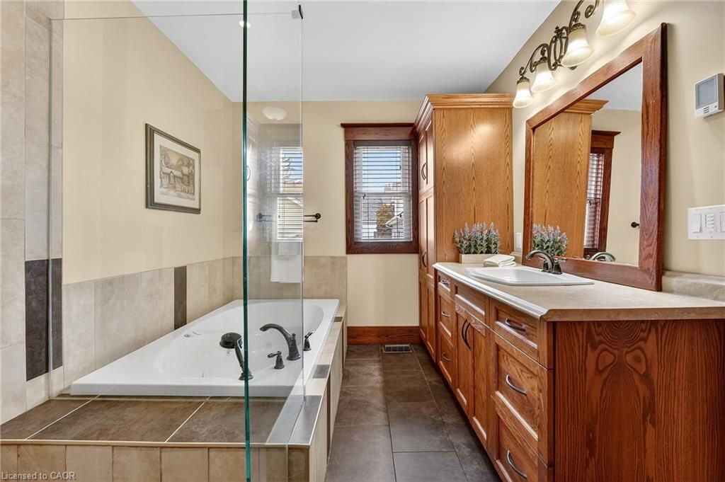 Experience this impressive 2 storey character home offering approximately 2,200 sq ft of above-grade living space and a layout designed for flexibility. The main floor features a one-bedroom layout, while the upper level offers a separate three-bedroom living space. Renovations over the years include an addition with a mudroom/laundry room and primary suite with heated floors, basement floor removal and repour and weeping tile. The wraparound porch and two decks with pergolas and mature chinese wisteria provide inviting outdoor spaces ideal for relaxing or entertaining. Situated in the heart of vineland along niagara's wine route, the property offers convenient access to local wineries, golf, and nearby amenities. A detached 1,700 sq ft two-storey garage and workshop is a standout feature, offering exceptional flexibility for hobbies, storage, or additional workspace. With ample parking and generous space inside and out, this property blends character, versatility, and practical functionality.