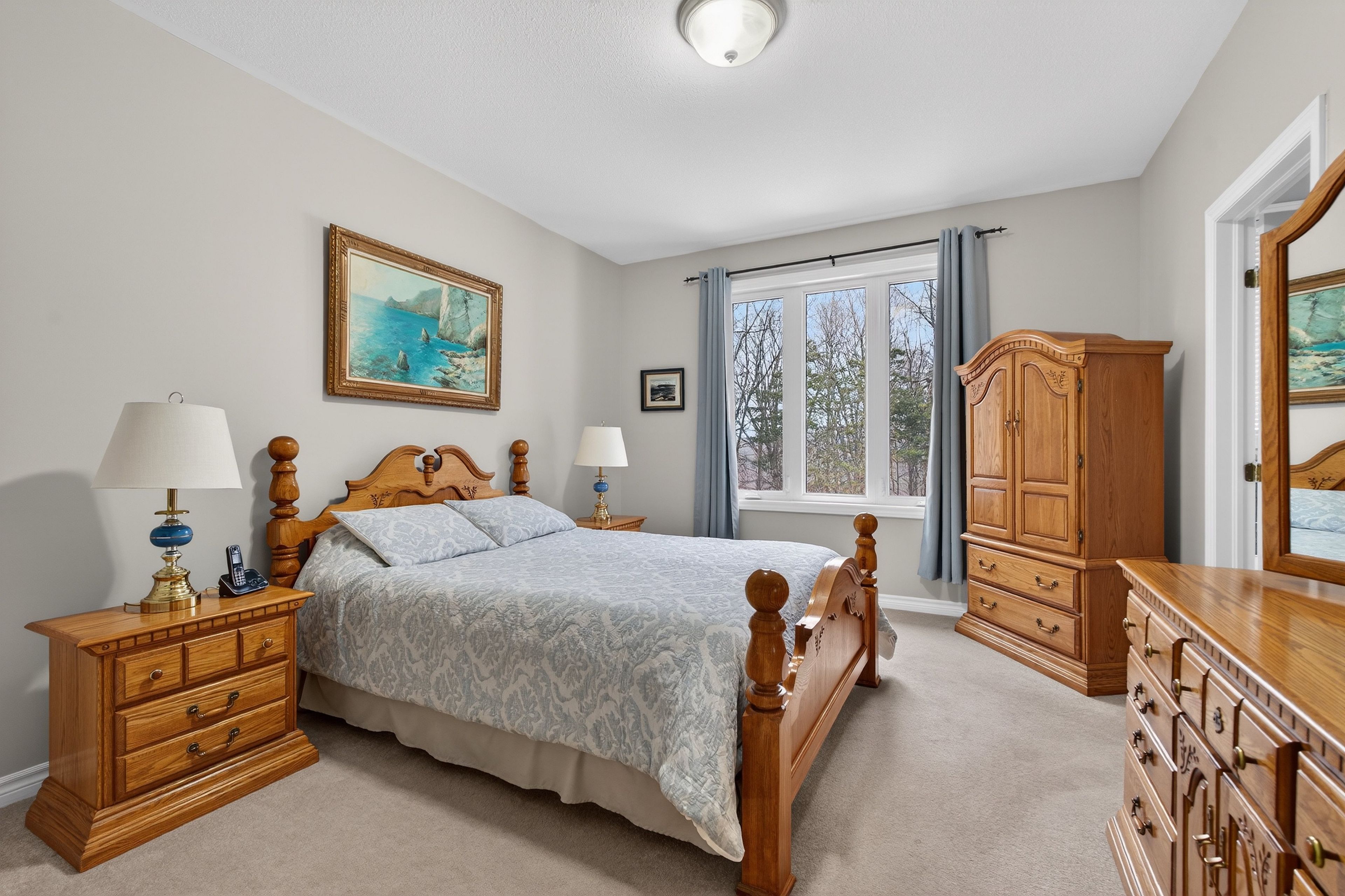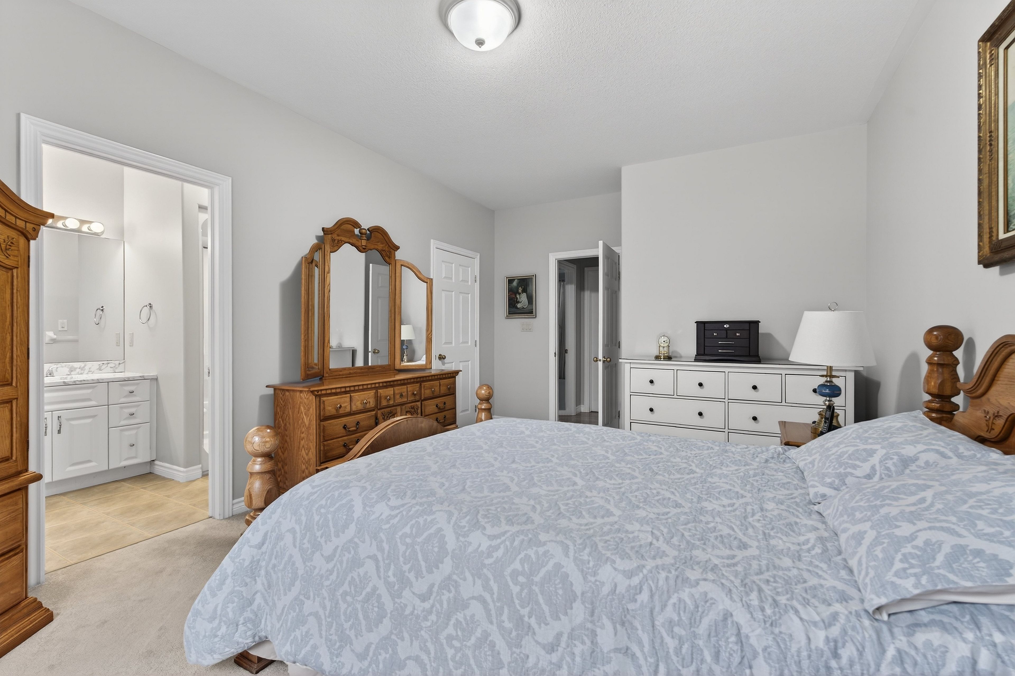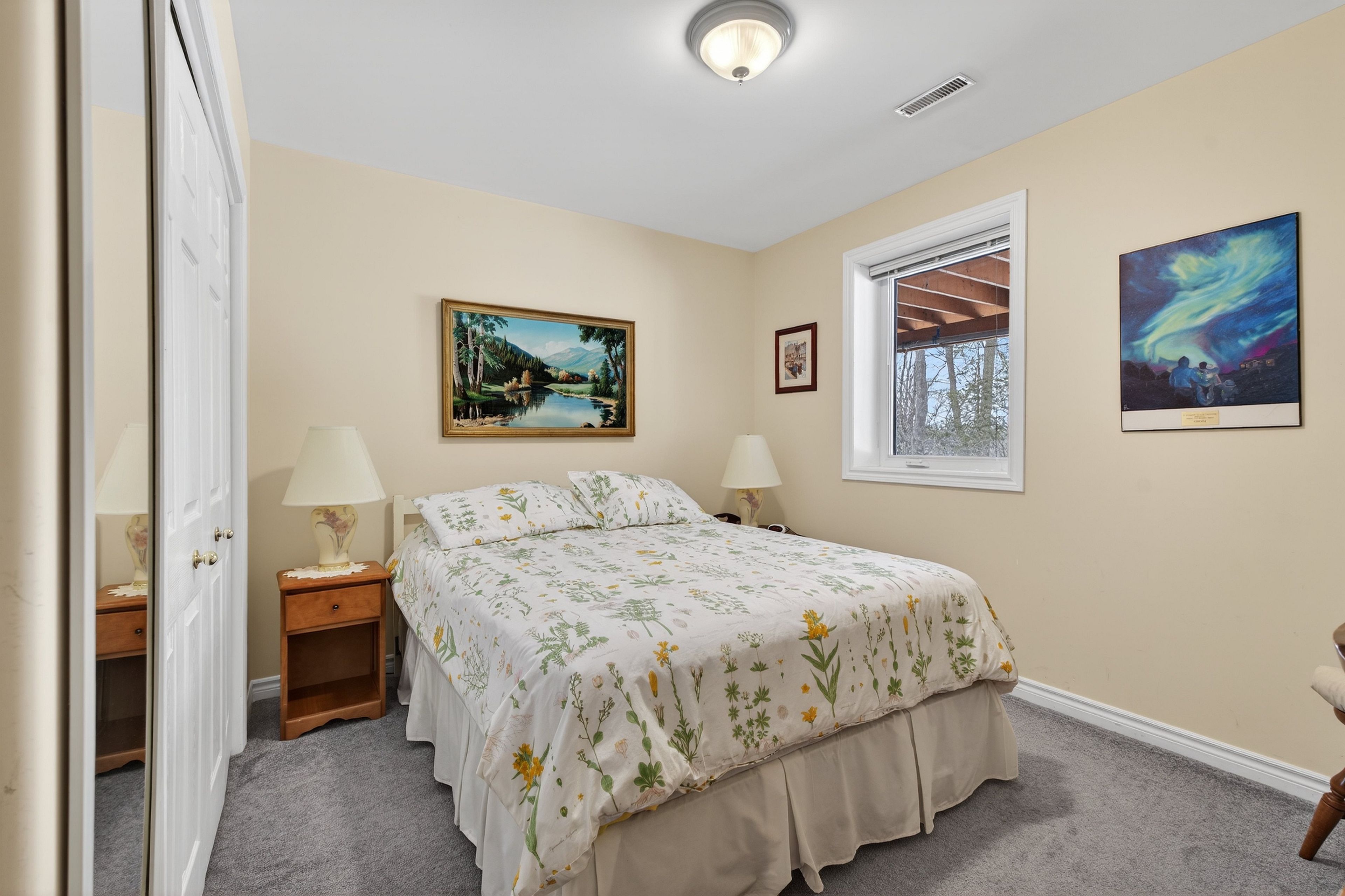 • Hardwood flooring throughout, with cozy carpeting in spacious bedrooms.