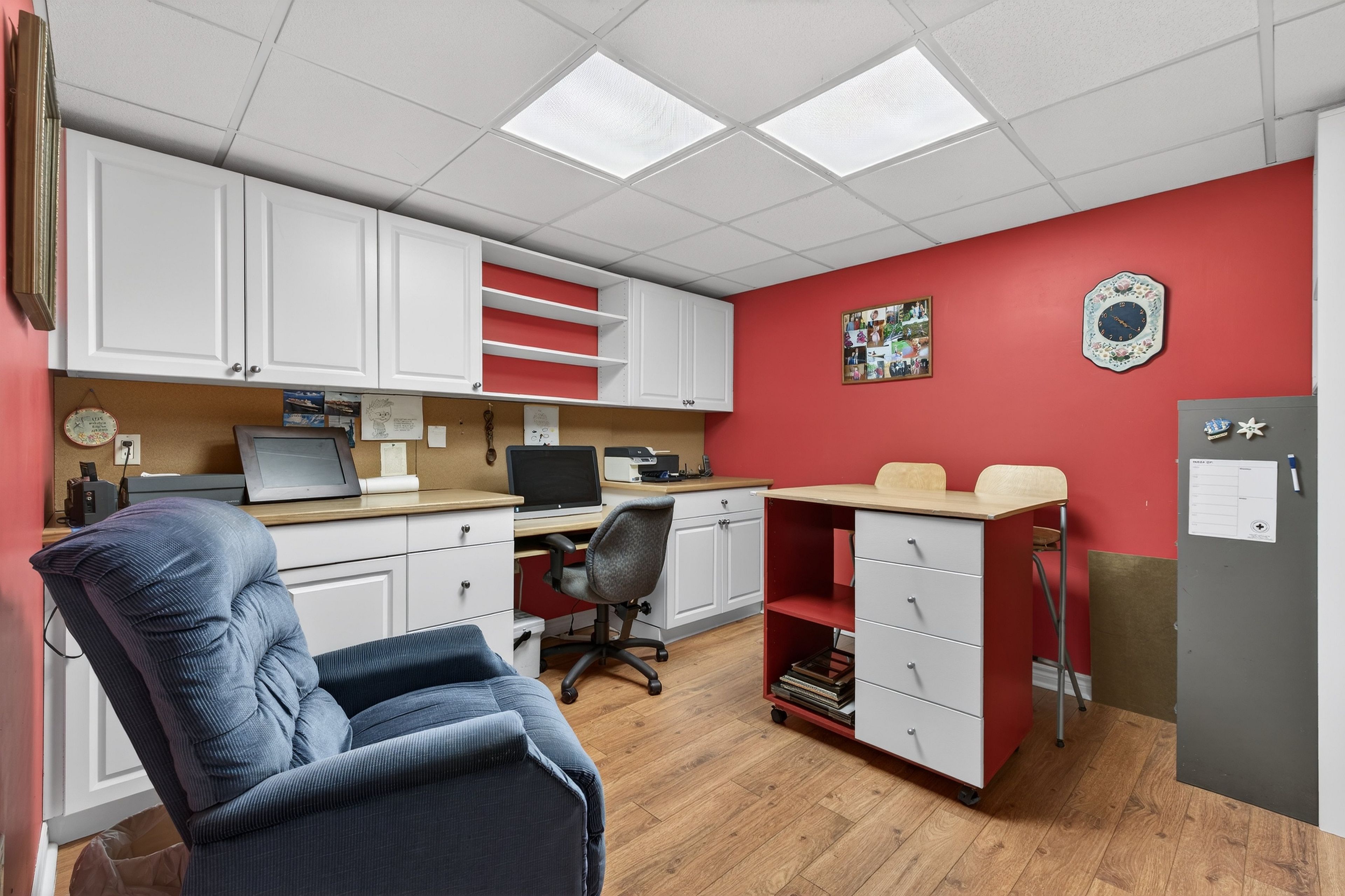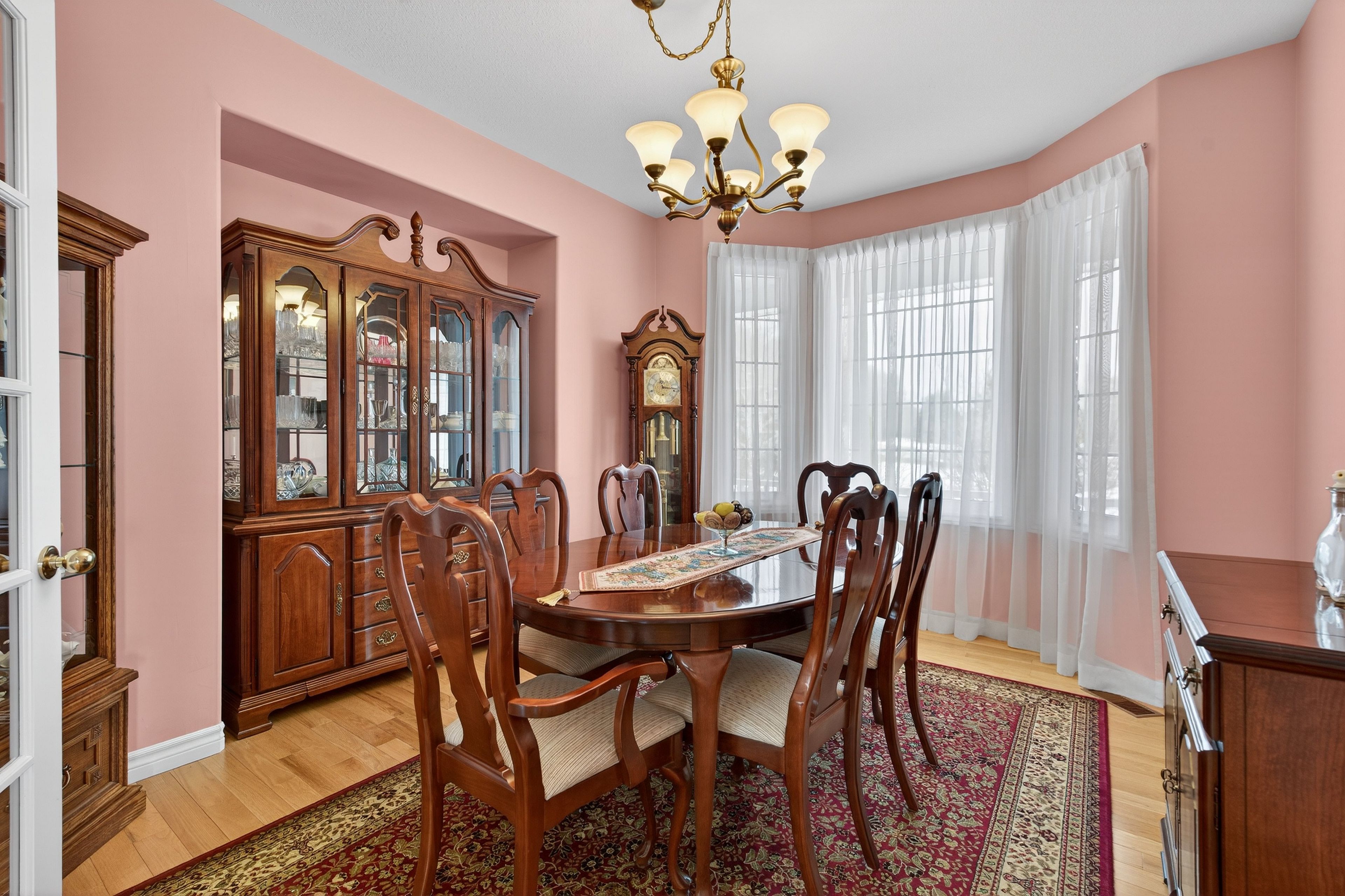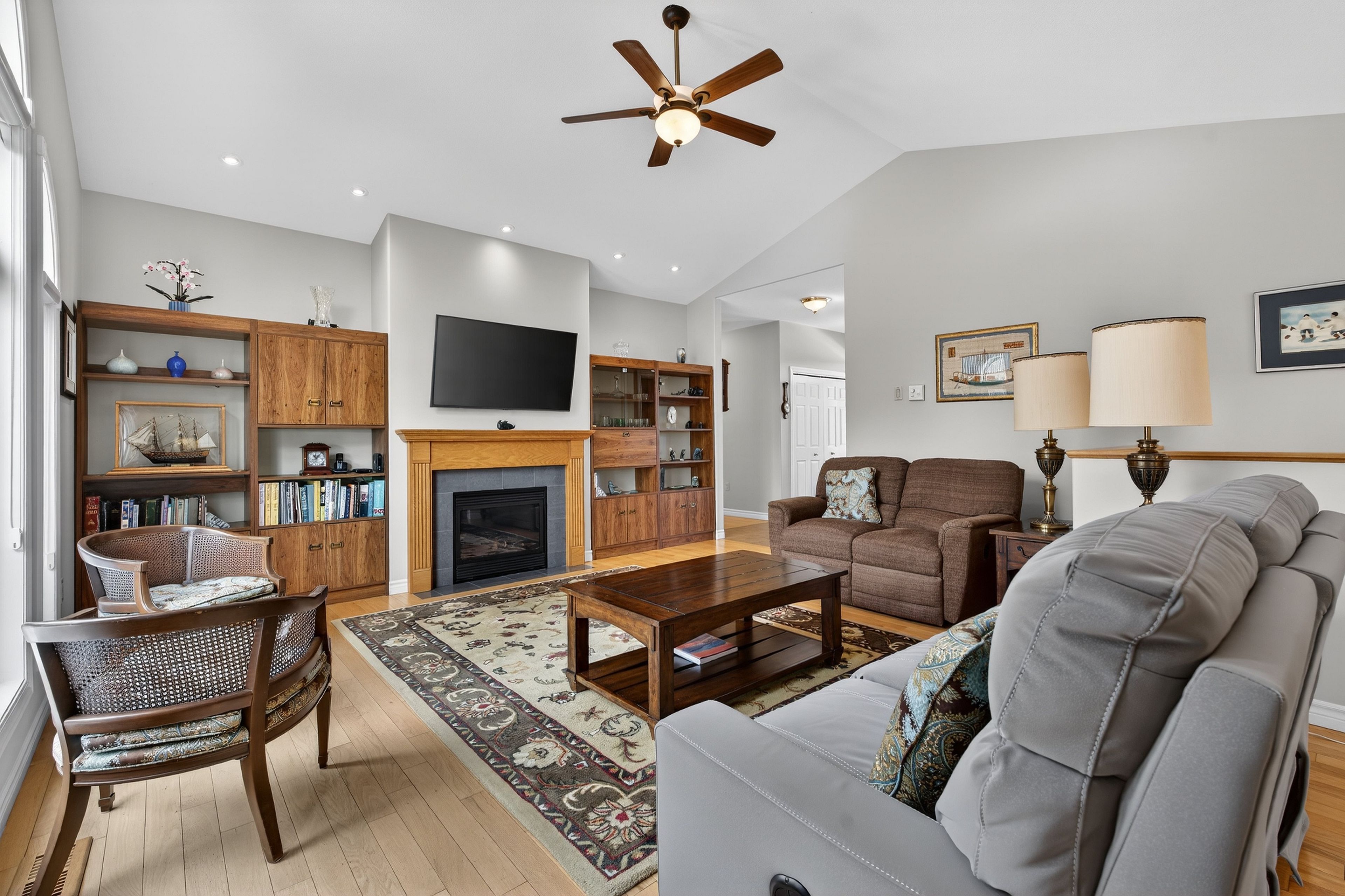 • Hardwood flooring throughout, with cozy carpeting in spacious bedrooms.