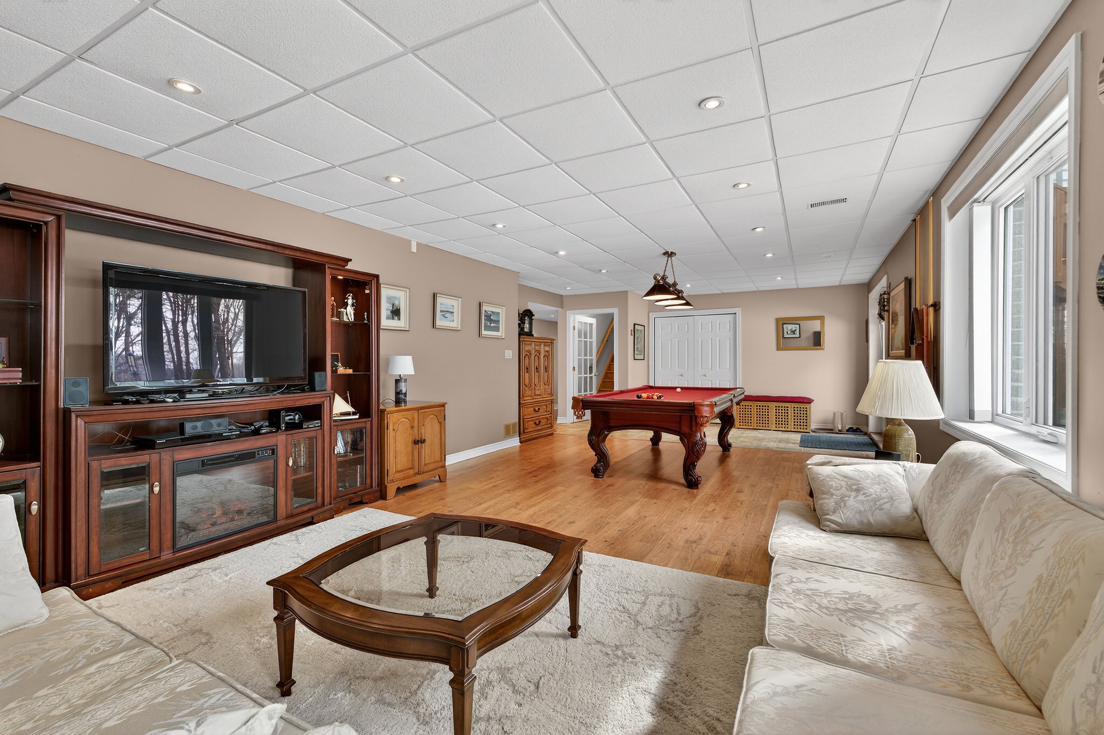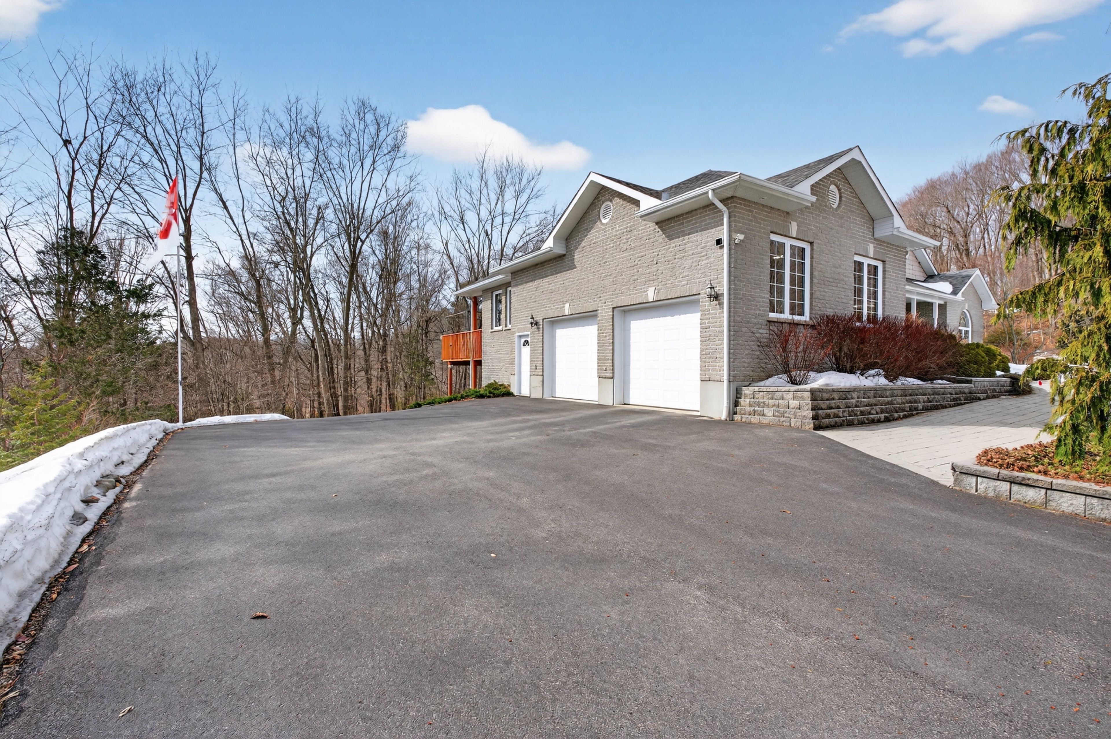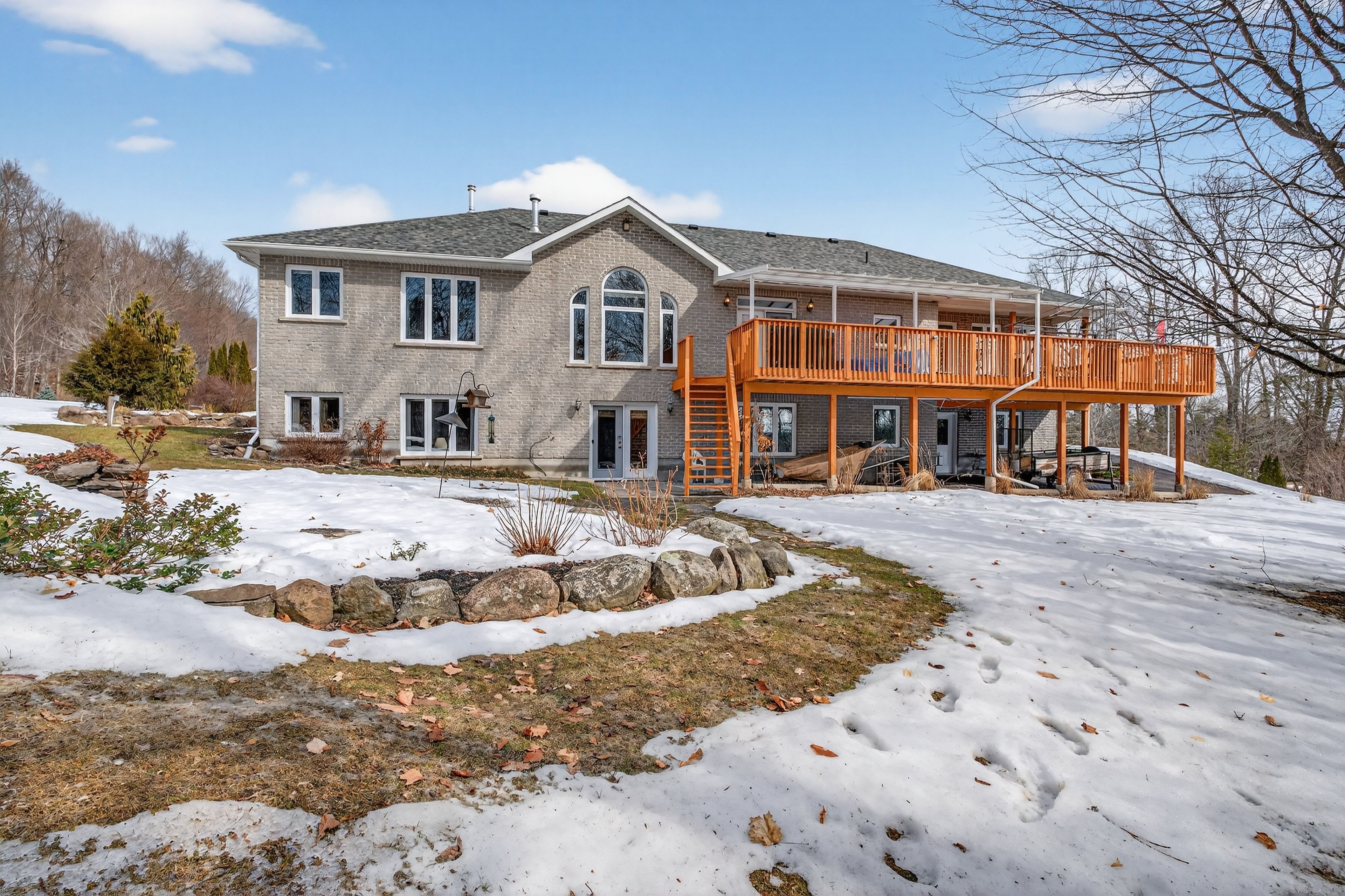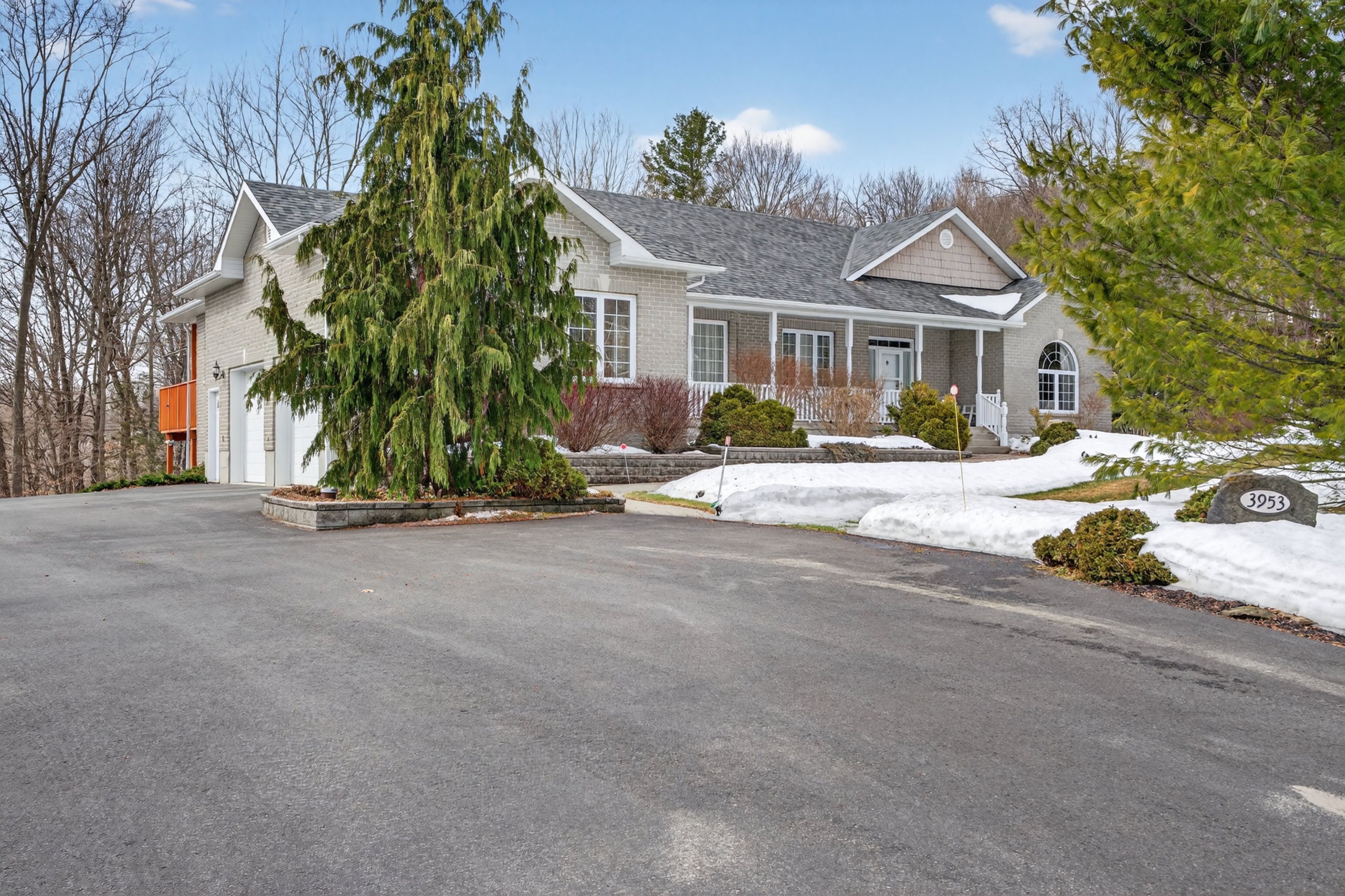 Welcome to 3953 middle woodland drive, a spacious and beautifully crafted home by tony matias offering approximately 4,000 sqft of comfortable living space. Set on a private 2. 62-acre lot, this impressive property features a durable icf foundation, providing excellent energy efficiency, strength, and year-round comfort. The home also boasts a full walkout basement finished with brick and cultured stone accents, along with a large rear deck perfect for outdoor gatherings. The beautifully maintained grounds include a large garden, a tranquil waterfall pond, and expansive green space to enjoy the outdoors. Inside, hardwood floors run throughout most of the home, with plush carpeting in the two spacious bedrooms for added comfort. The primary suite offers a relaxing retreat with a well-appointed ensuite featuring a stand-up shower and jacuzzi tub. At the same time, an additional four-piece bathroom includes an acrylic shower/tub combination. The welcoming front entry leads to a versatile office or den with ample closet storage, complemented by a convenient linen closet in the hallway. A bright and inviting sunroom fills with natural light, creating the perfect space to relax and take in views of the surrounding property. The double-car garage features large doors, 16-foot ceilings, and gives convenient access directly into the home. While the lower level features an enormous recreation room-ideal for family activities, hobbies, or entertaining. Recent upgrades include a furnace (2022), an owned propane hot water tank, and an hrv system with central air, ensuring modern comfort and efficiency. Thoughtfully designed and beautifully maintained, this property offers the perfect balance of space, quality construction, and peaceful country living.