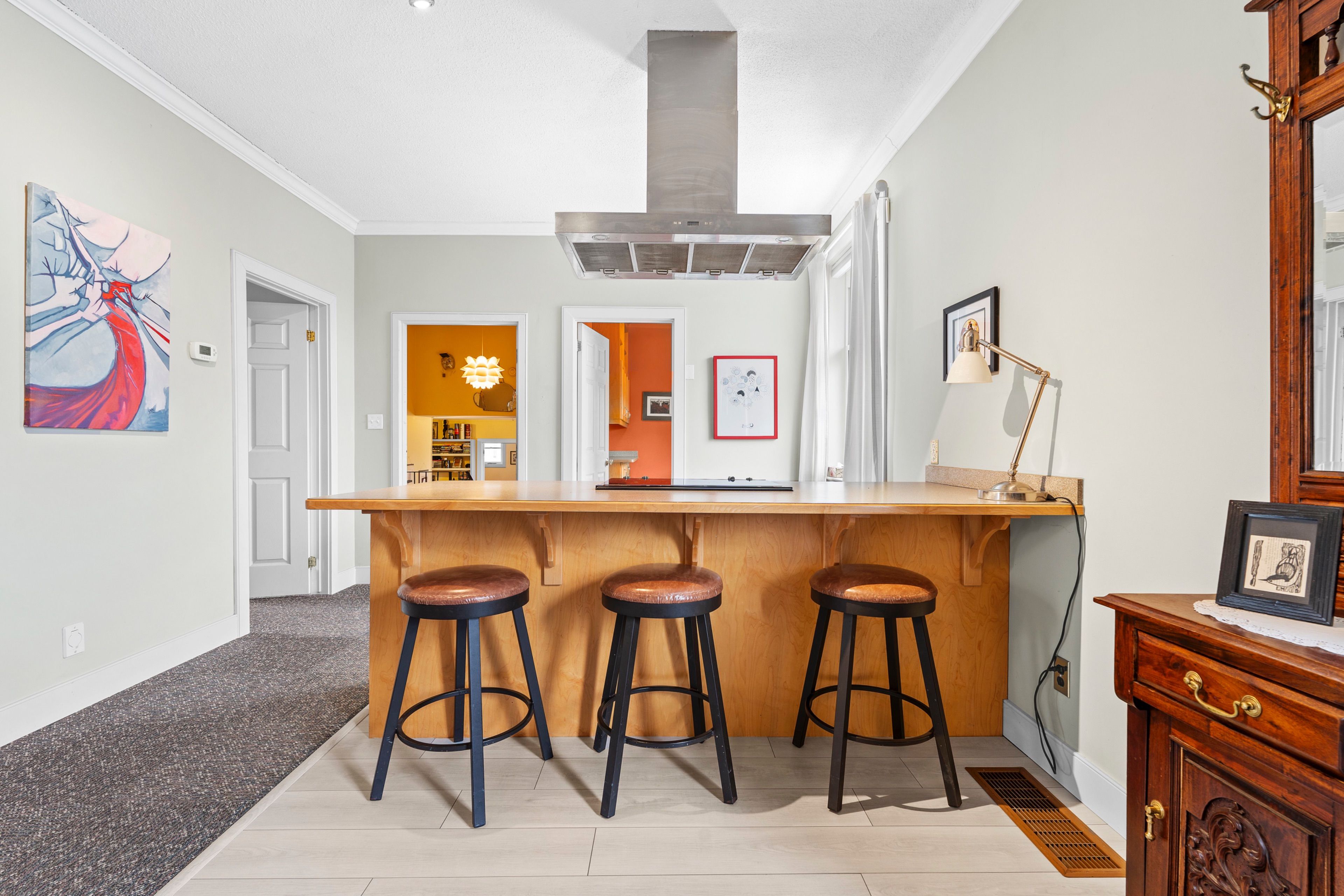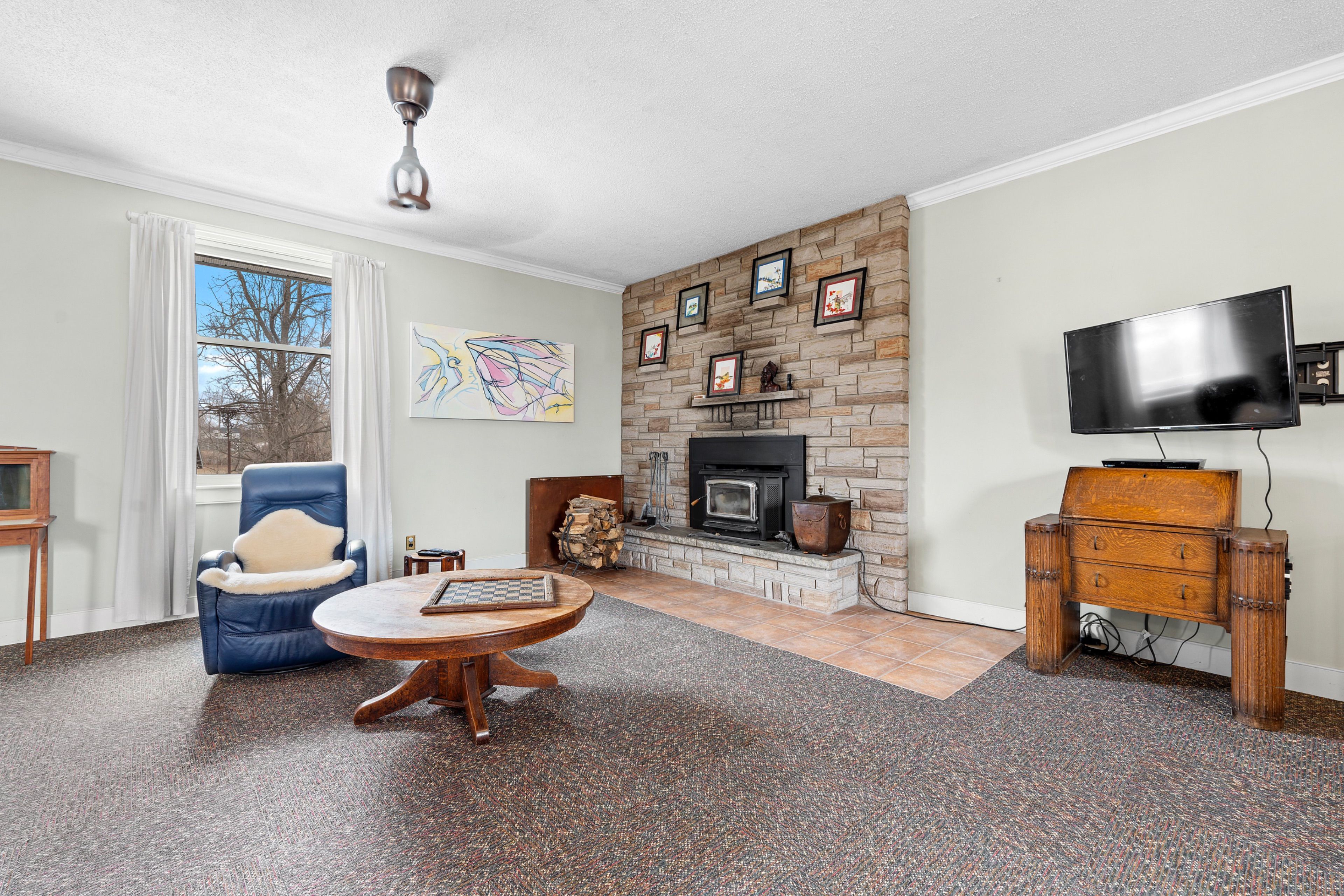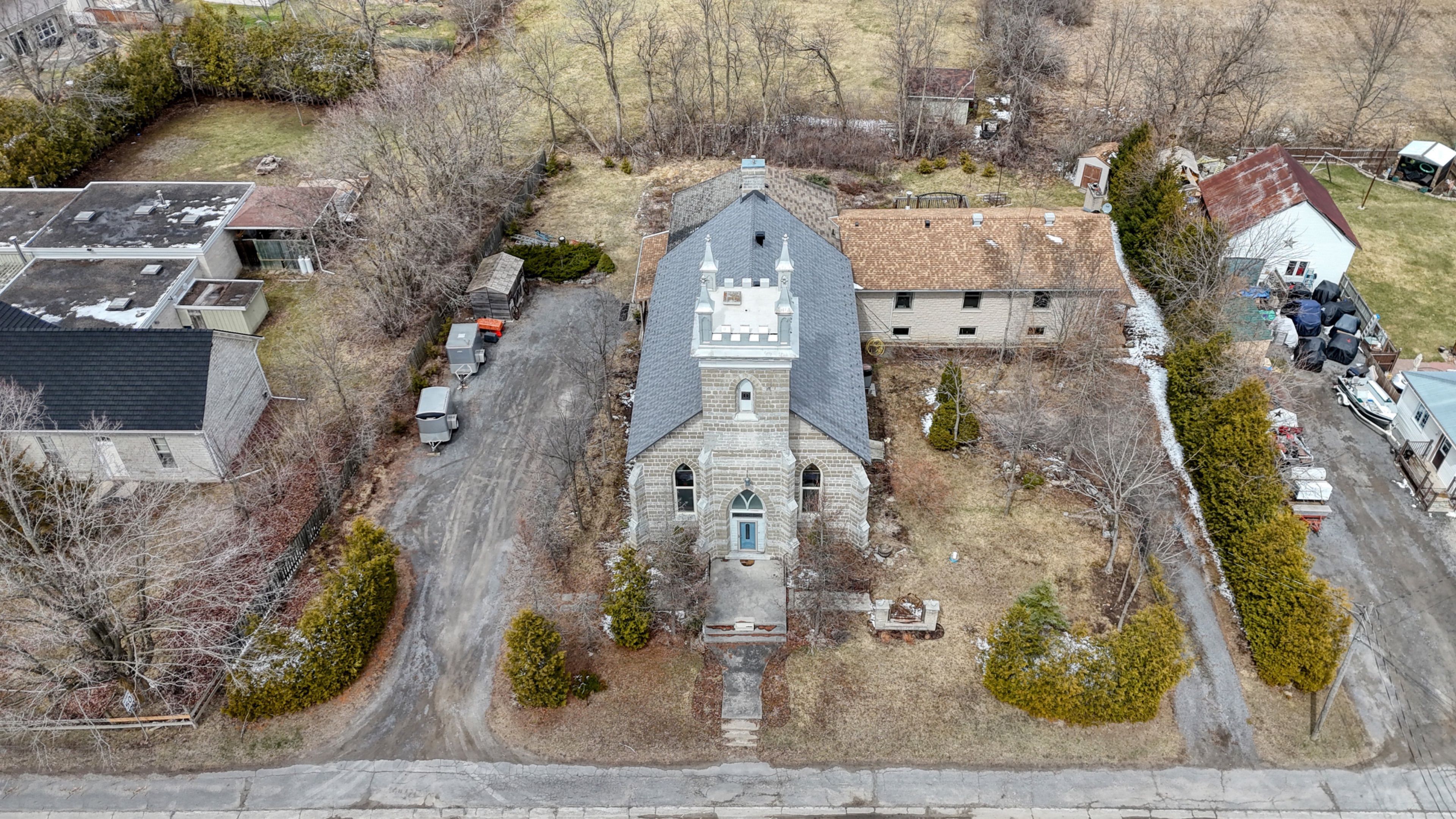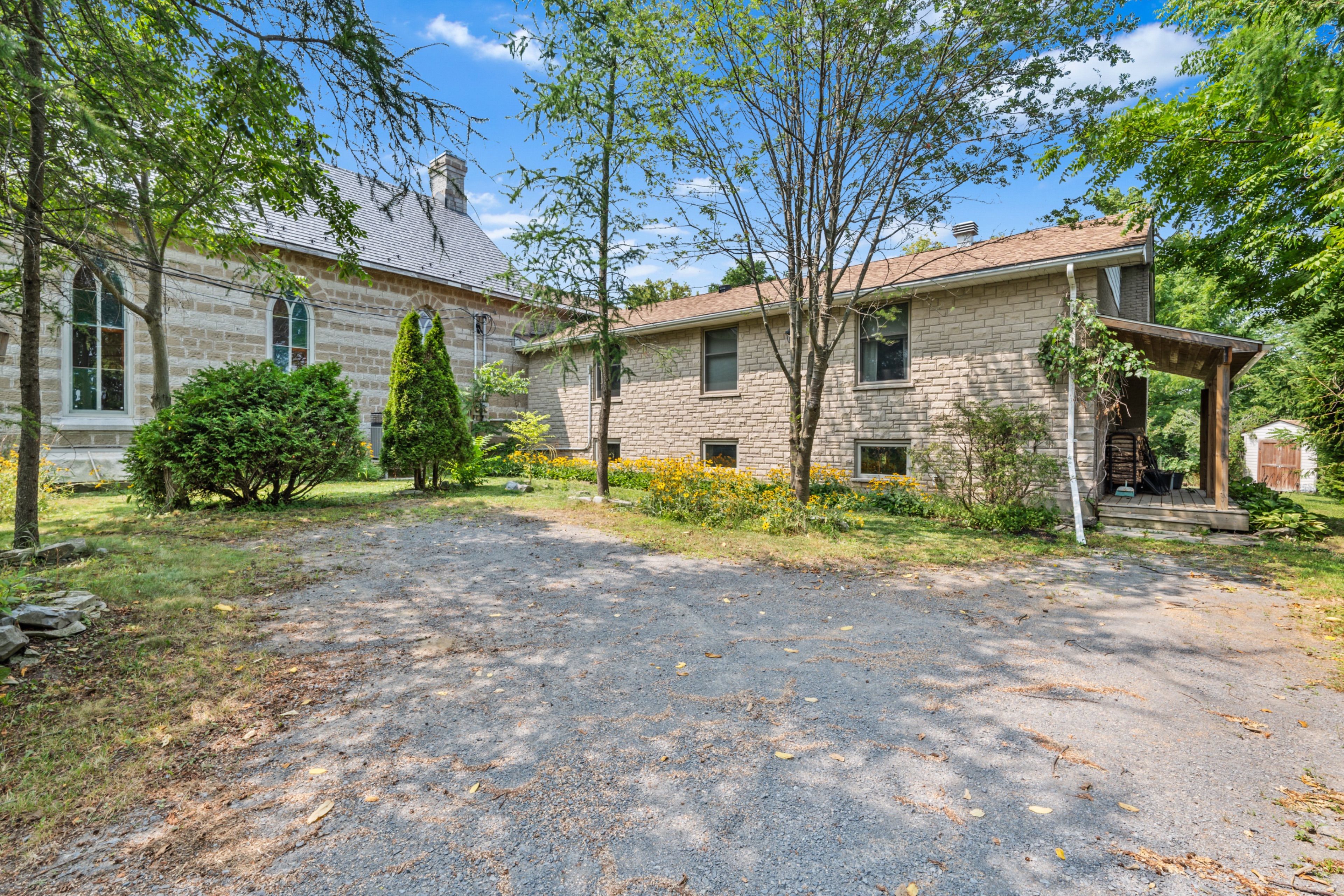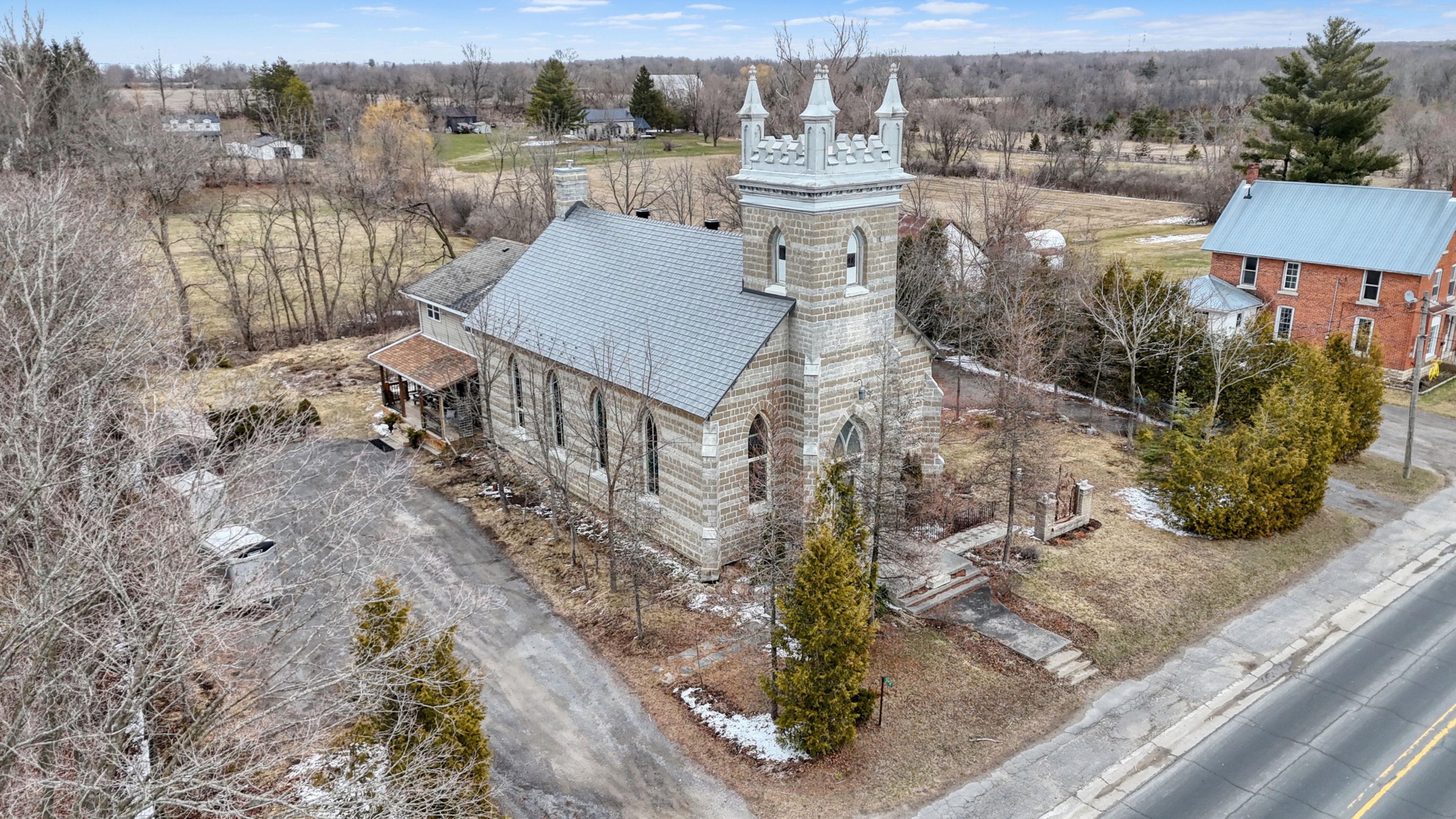 Welcome to 3958 harrowsmith road, where history and possibility meet. Once a place of gathering, this beautifully preserved former church now offers a rare opportunity to live, work, or create something entirely your own. Zoned uc-1 (commercial), it's perfectly suited for a home-based business, studio, or inspired retreat. The original limestone church is rich with character, featuring a breathtaking "nave" with soaring ceilings, sunlit stained glass, and an undeniable sense of space and light. The bell tower still stands, with stairs leading to the top and a bathroom rough-in already in place - ready for your vision. An upper gallery overlooks the main space, ideal for creative use or additional living. Seamlessly connected, the rear addition offers warm and comfortable living. A spacious foyer opens into the main living area, where a wood-burning fireplace adds a cozy touch and doors lead out to a generous deck. The kitchen's unique split design provides plenty of cabinetry and function. Two main floor bedrooms include a primary suite with a private 4-piece ensuite, along with a large 2-piece bath. Downstairs, you'll find two more bedrooms, a den or office, a full bath, and laundry - perfect for family living or in-law potential. Upstairs, a 600 sq. Ft. Loft currently serves as a workshop, offering even more flexibility. With separate servicing between the original church and the addition, ample parking, an ev charger, fibre internet, and trails just steps away, this is a property that blends character, versatility, and lifestyle in a way that's rarely offered.