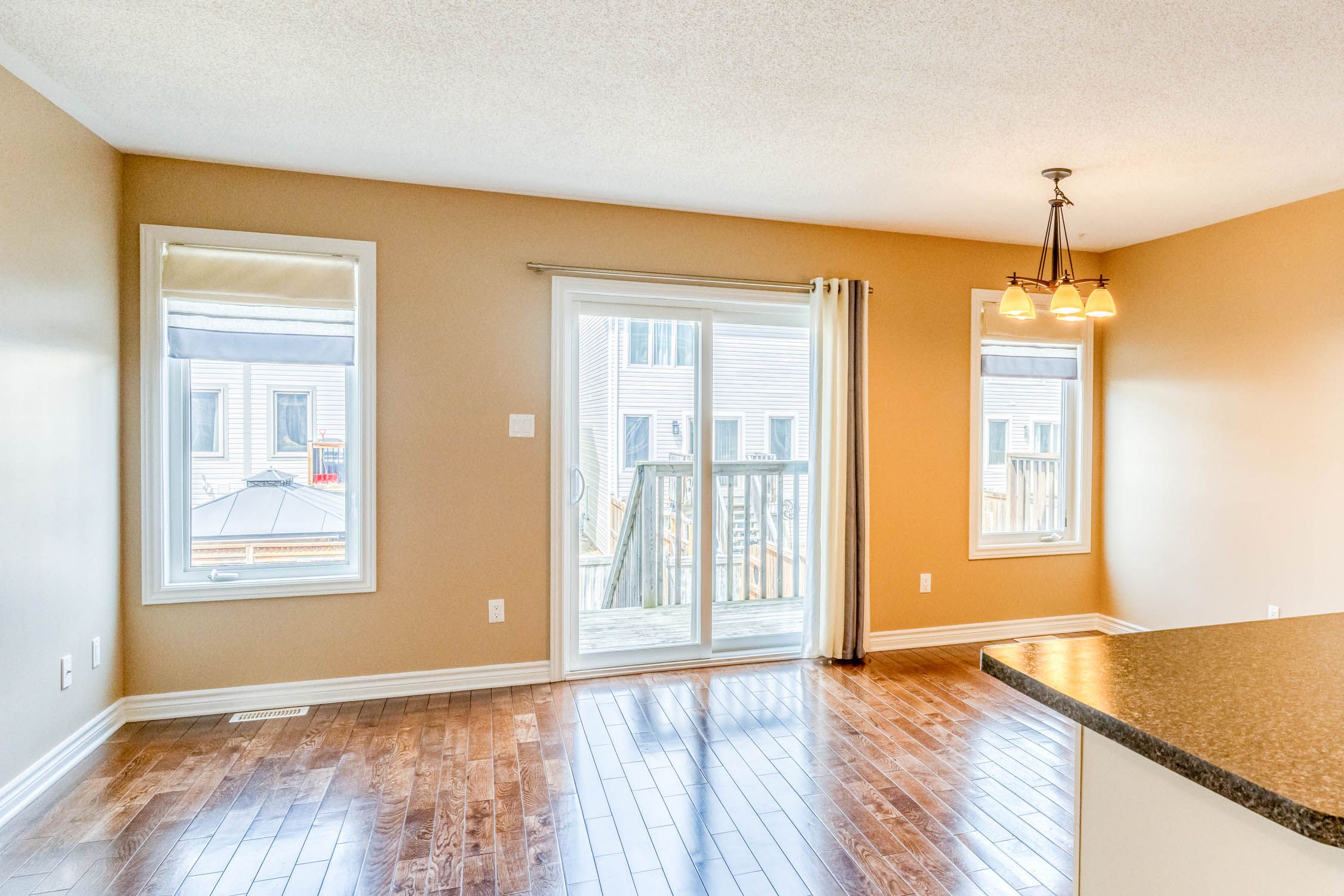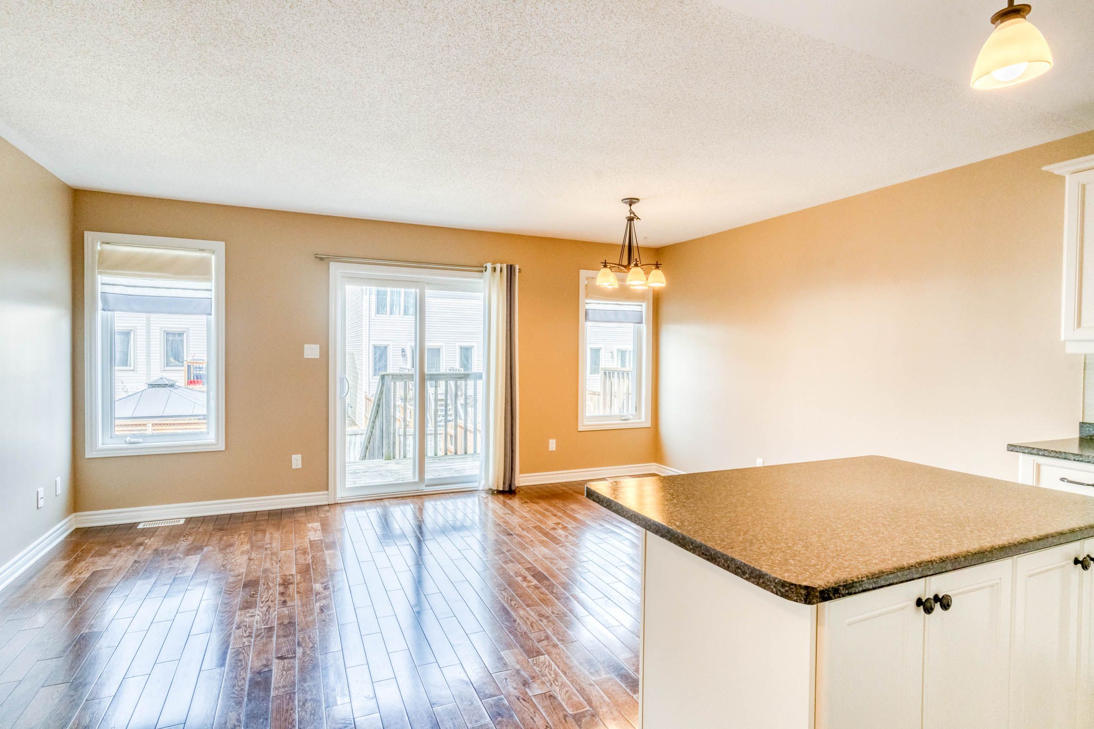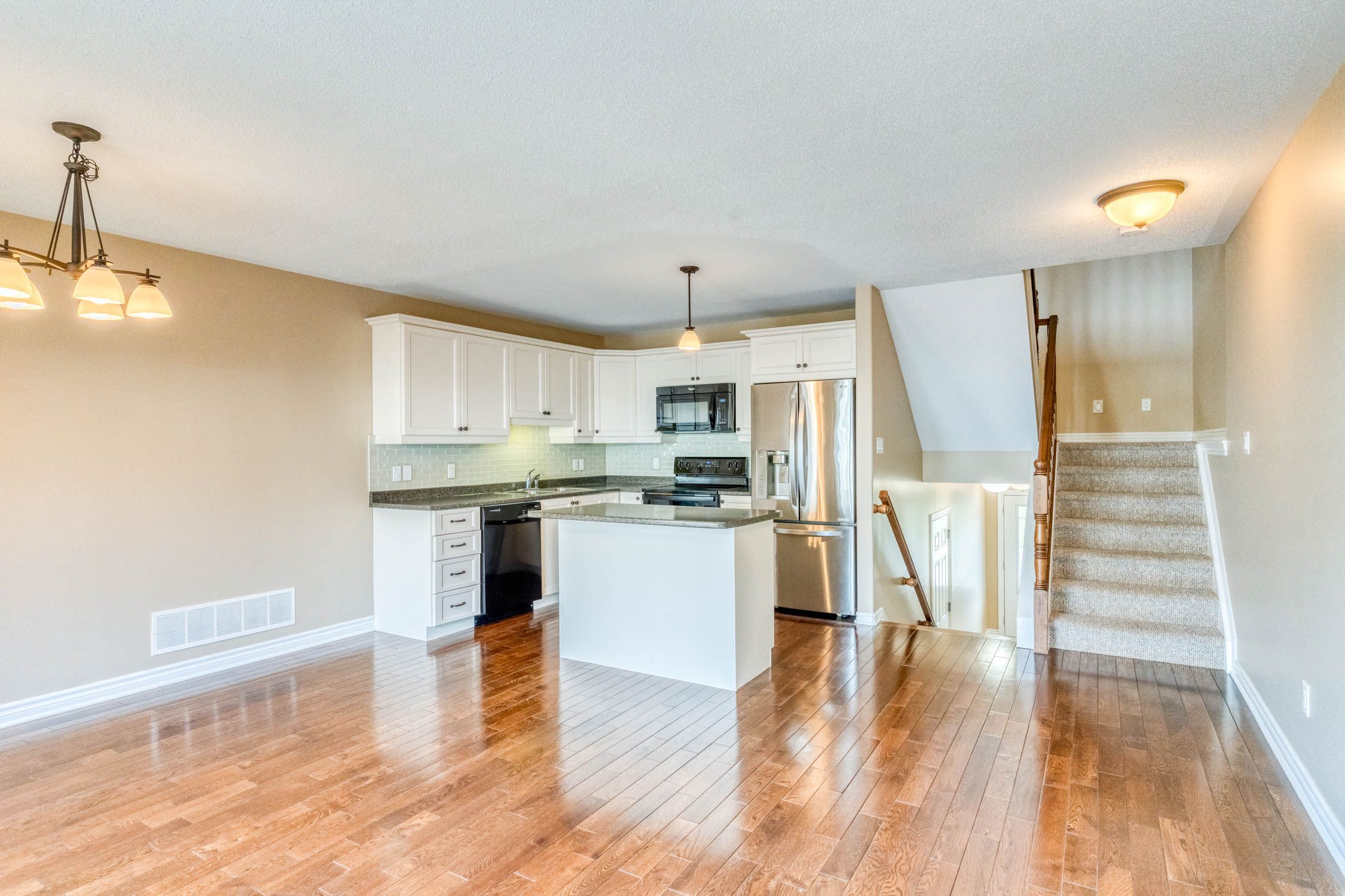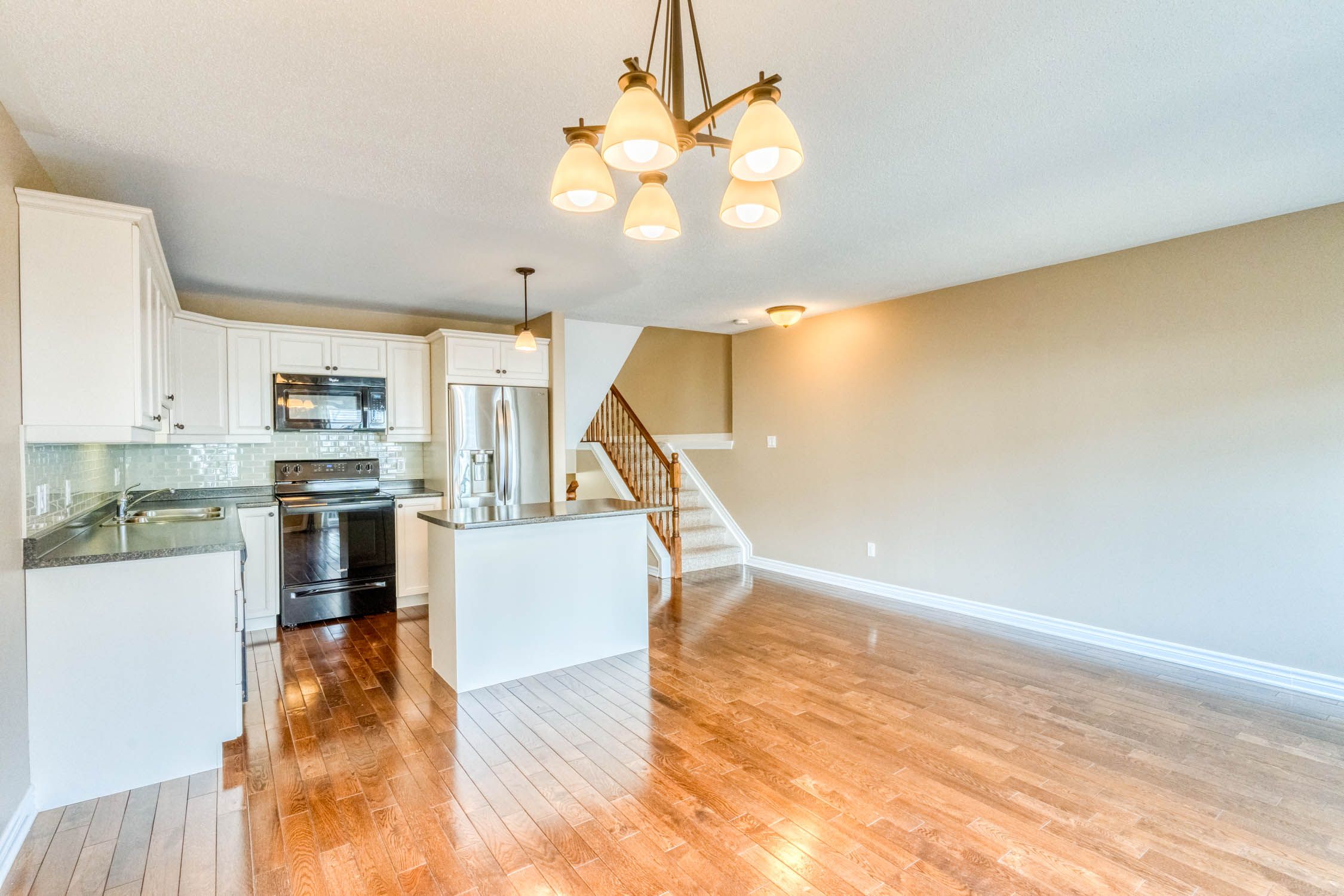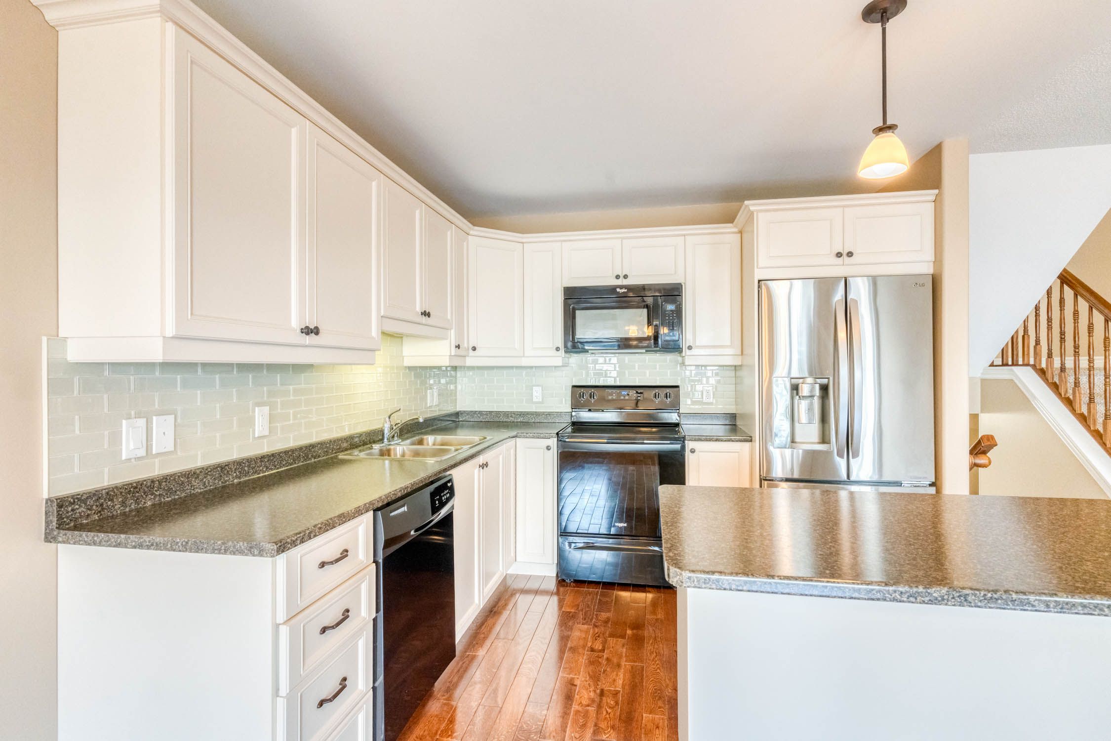 Beautifully maintained and in move in condition. This 3 bedroom 3 bathroom row house is loaded with sunshine and space!! Open concept floor plan. Well sized foyer with tile floors. A two piece powder room, also with tile floors is conveniently located on the main floor. The kitchen has a generous supply of cupboards and counter space with easy care back splash. The island provides even more counter space plus an excellent spot for quick snacks . The open dining room and living room makes it easy to place your furniture. The dining room has patio doors to your deck. The kitchen, living room and dining room have hard wood floors. On the second level you have two well sized bedrooms loaded with closet space + a full bathroom with a one piece tub/shower. The upper level provides a deluxe master suite with double doors, a huge walk in closet + a full 4 piece ensuite, again with one piece tub/shower for easy maintenance. . The laundry area which provides extra storage space is conveniently located close to the bedrooms. The lower level family room with easy care laminate flooring and has two massive windows to allow the sunshine to pour in. You will also find plenty of storage space in the lower level. Easy walking distance to naismith memorial public school and to down town. Located on a beautiful residential street fronting on green space. Early possession!!