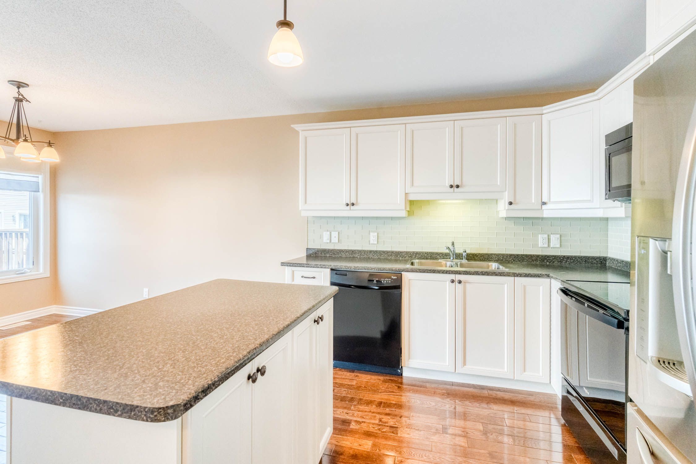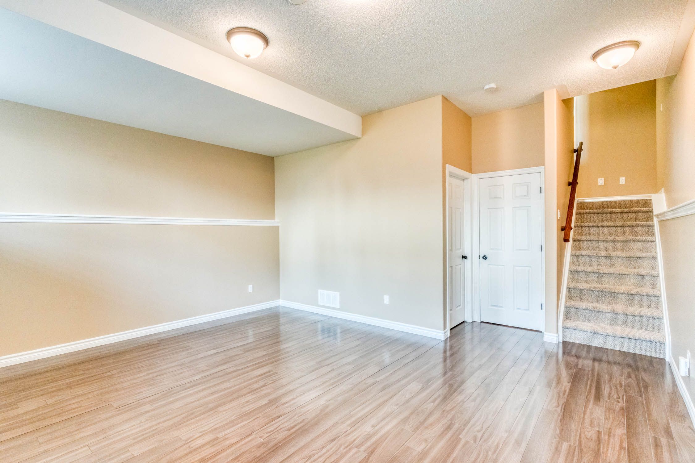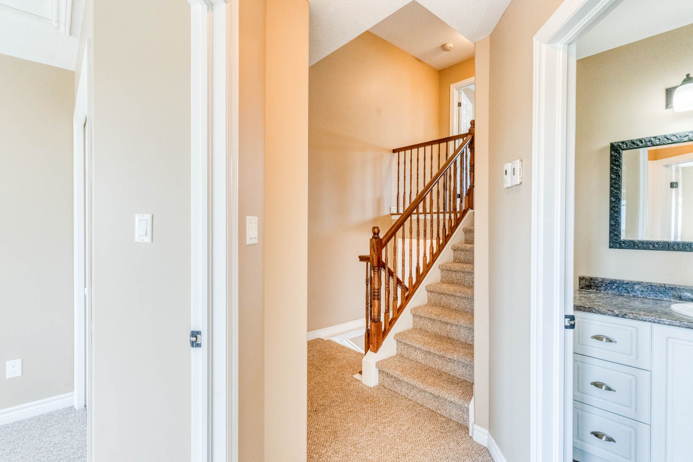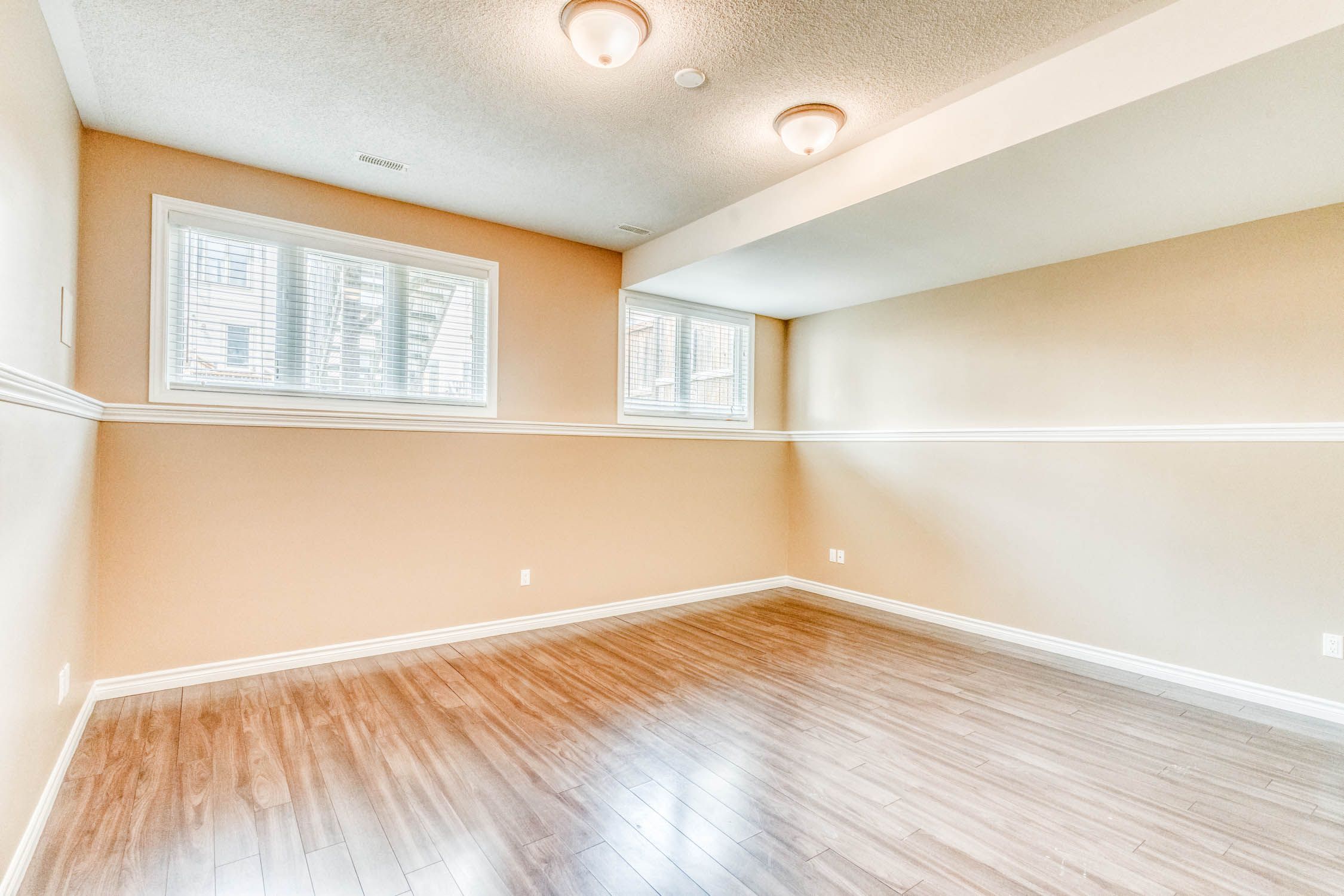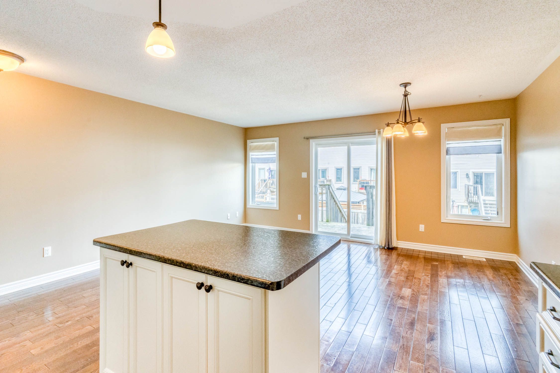 Beautifully maintained and in move in condition. This 3 bedroom 3 bathroom row house is loaded with sunshine and space!! Open concept floor plan. Well sized foyer with tile floors. A two piece powder room, also with tile floors is conveniently located on the main floor. The kitchen has a generous supply of cupboards and counter space with easy care back splash. The island provides even more counter space plus an excellent spot for quick snacks . The open dining room and living room makes it easy to place your furniture. The dining room has patio doors to your deck. The kitchen, living room and dining room have hard wood floors. On the second level you have two well sized bedrooms loaded with closet space + a full bathroom with a one piece tub/shower. The upper level provides a deluxe master suite with double doors, a huge walk in closet + a full 4 piece ensuite, again with one piece tub/shower for easy maintenance. . The laundry area which provides extra storage space is conveniently located close to the bedrooms. The lower level family room with easy care laminate flooring and has two massive windows to allow the sunshine to pour in. You will also find plenty of storage space in the lower level. Easy walking distance to naismith memorial public school and to down town. Located on a beautiful residential street fronting on green space. Early possession!!