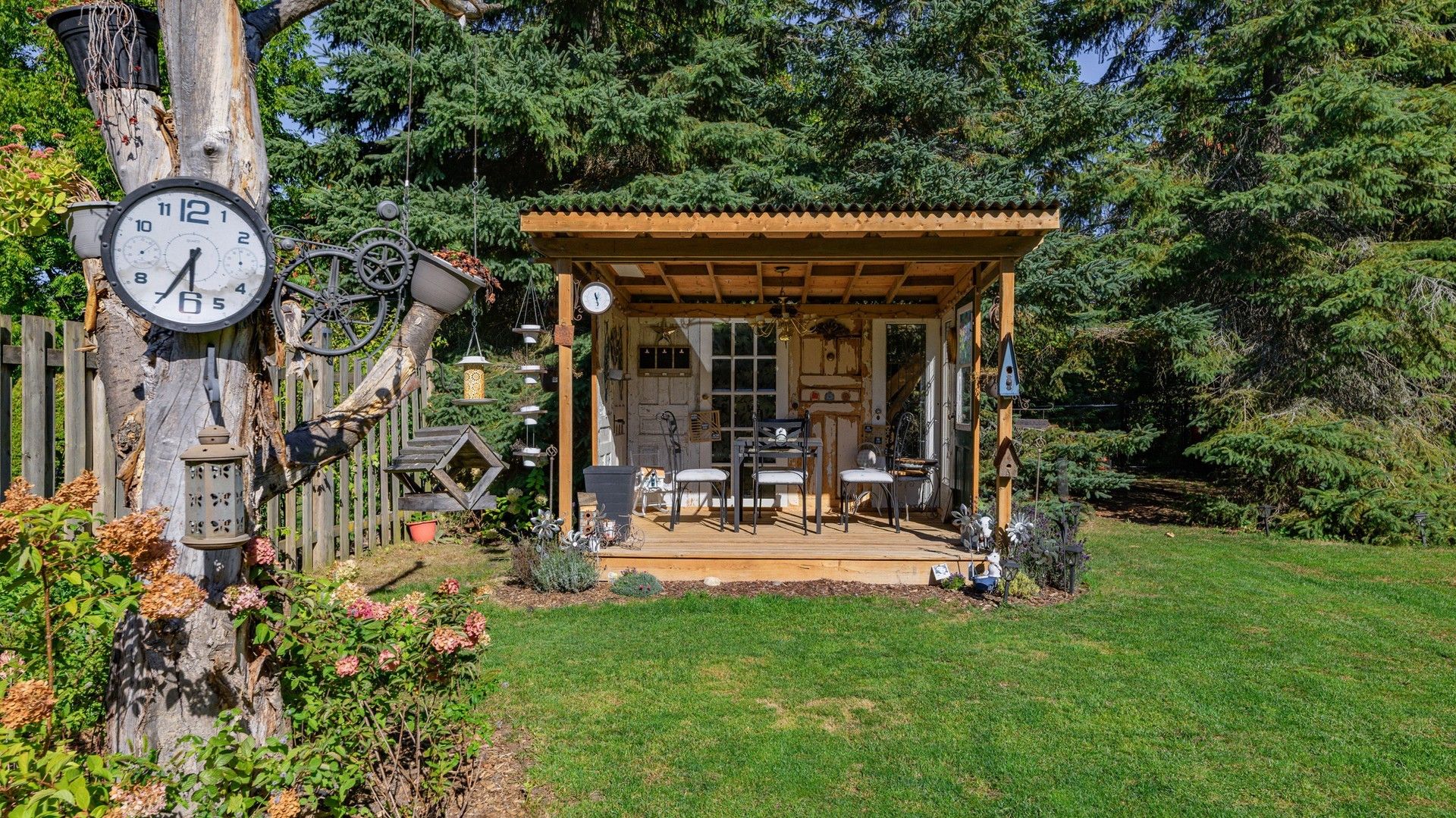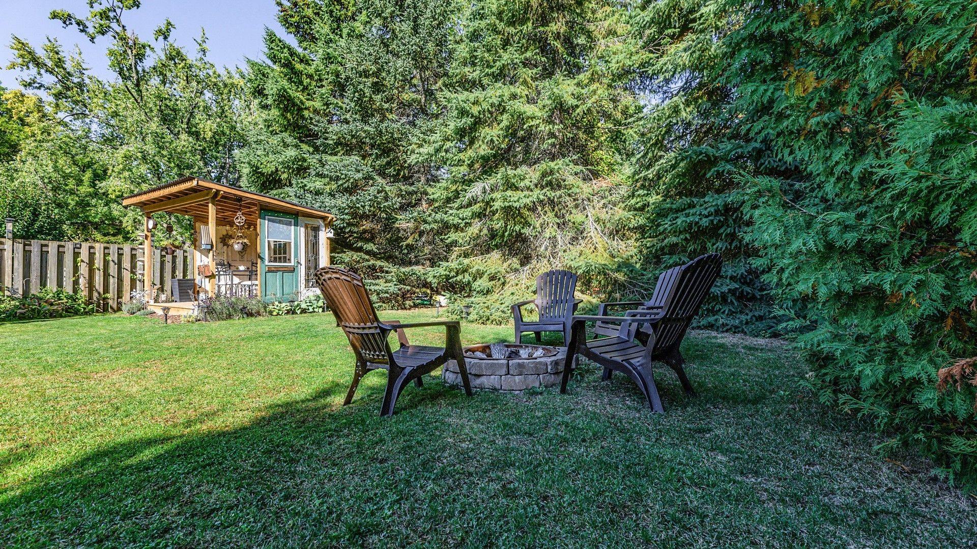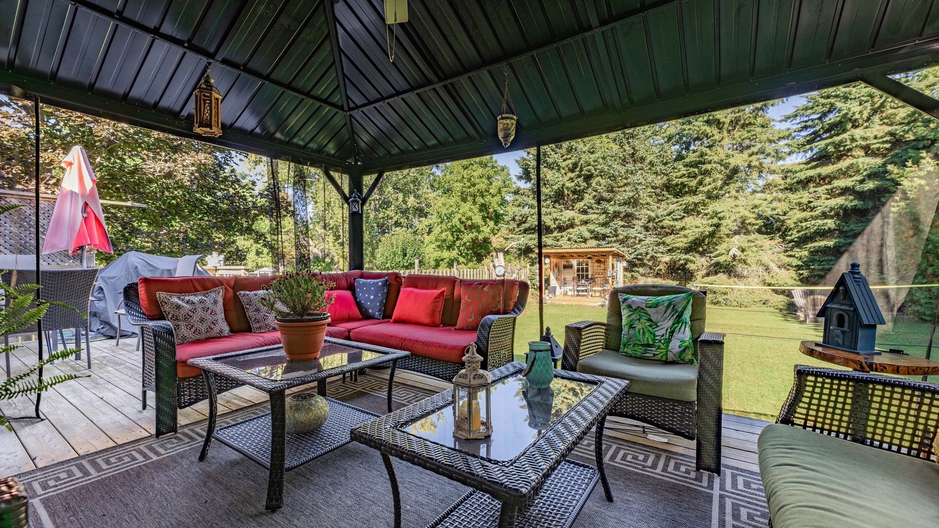 • Private landscaped backyard with gazebo and parking for six vehicles.