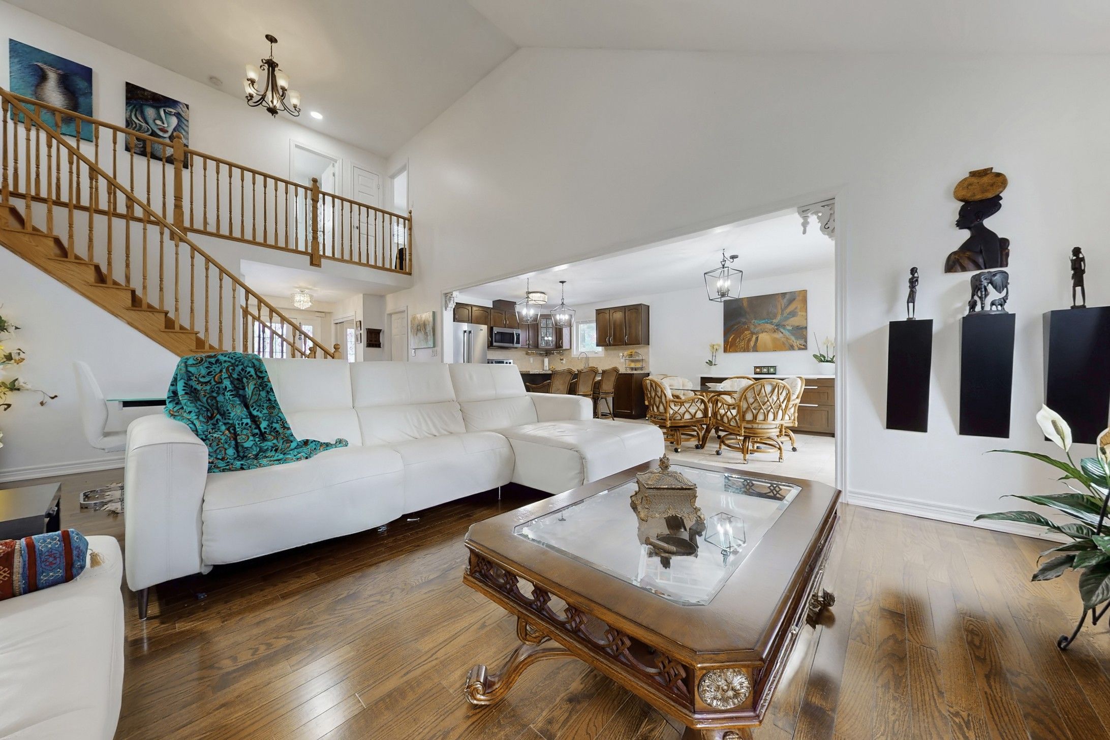 • Spacious main level with vaulted ceiling, gas fireplace, and open concept.