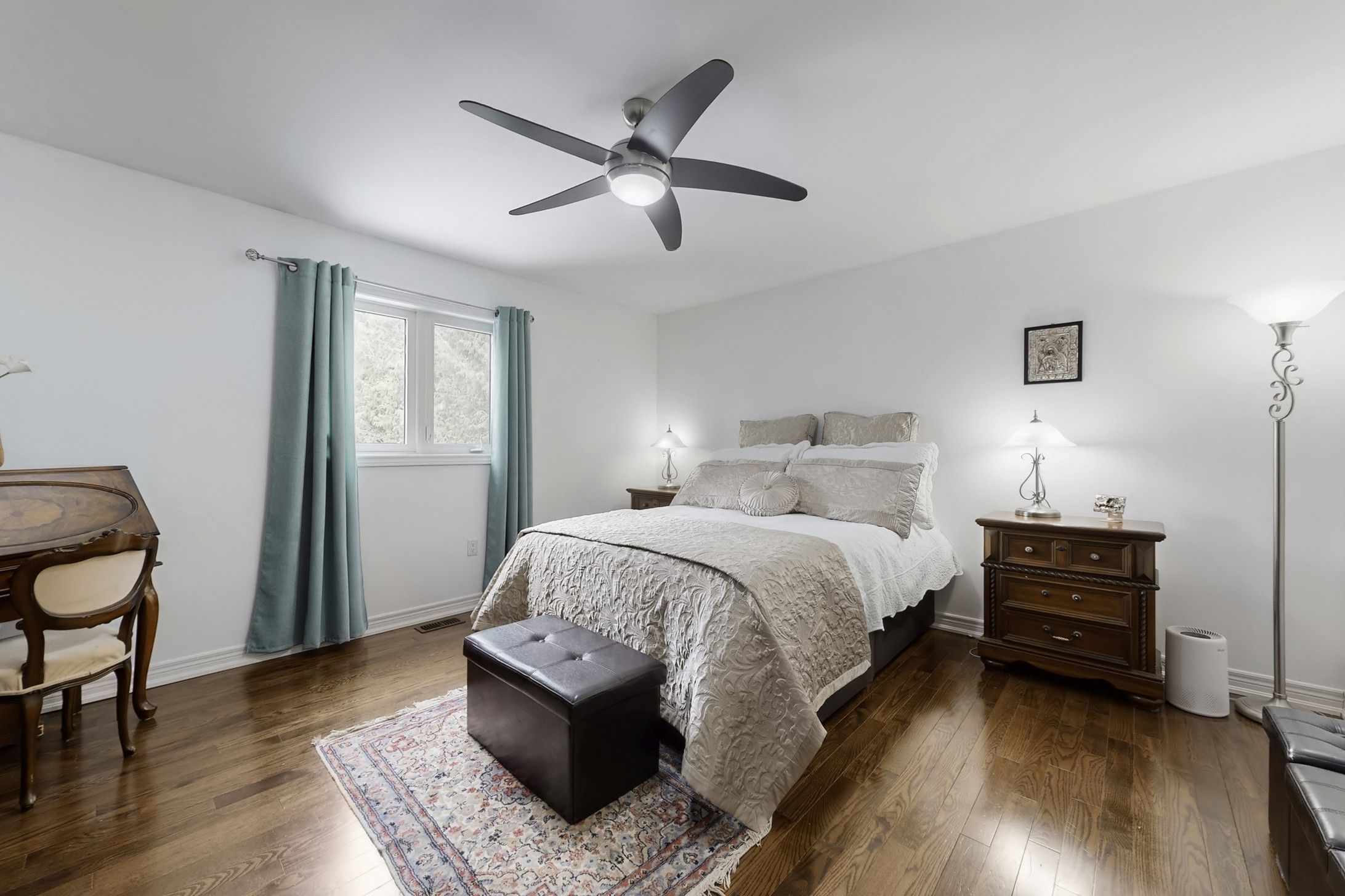 Custom-built home with 4+1 bedrooms, including a versatile main-floor room currently used as an office - ideal as a fourth bedroom, with 3. 5 bathrooms and over 3,600 sq ft of finished living space on a premium 183' deep lot with no rear neighbours in the highly sought-after roches point community. This location offers a rare combination of privacy, mature trees, and exclusive residents-only beach access, approximately a five-minute walk away, while being minutes from marinas, parks, trails, beaches, golf courses, schools, community centres, public transit, and hwy 404. The main level features a vaulted-ceiling living room with a gas fireplace, an open-concept kitchen, dining, and living areas with a walkout to the backyard deck, a main-floor primary bedroom with a walk-in closet and 5-piece ensuite, a south-facing room suitable as a bedroom or office, a spacious laundry room with built-in cabinetry and storage, and a 2-piece powder room. The upper level includes two bright bedrooms with a shared 4-piece bathroom and an open-to-below layout. The fully finished lower level offers a modern open-concept design with a kitchenette-sink/bar, family/tv lounge, recreation area, a generous guest bedroom, and a large, well-appointed 4-piece bathroom featuring double sinks and a shower with built-in seating. The basement benefits from large windows that provide excellent natural light, making the space comfortable for extended family or in-law use. Exterior features include a private landscaped backyard with a hardtop gazebo, a custom open-air shed for relaxation, a second garden shed, and mature gardens. Additional highlights include a double garage with inside entry, parking for six vehicles, and convenient access to north gwillimbury park, rayners park, deer park trail, willow beach, golf and country clubs, and local amenities. Toronto is approximately 45-50 minutes away, offering an ideal balance between lakeside living and urban convenience.