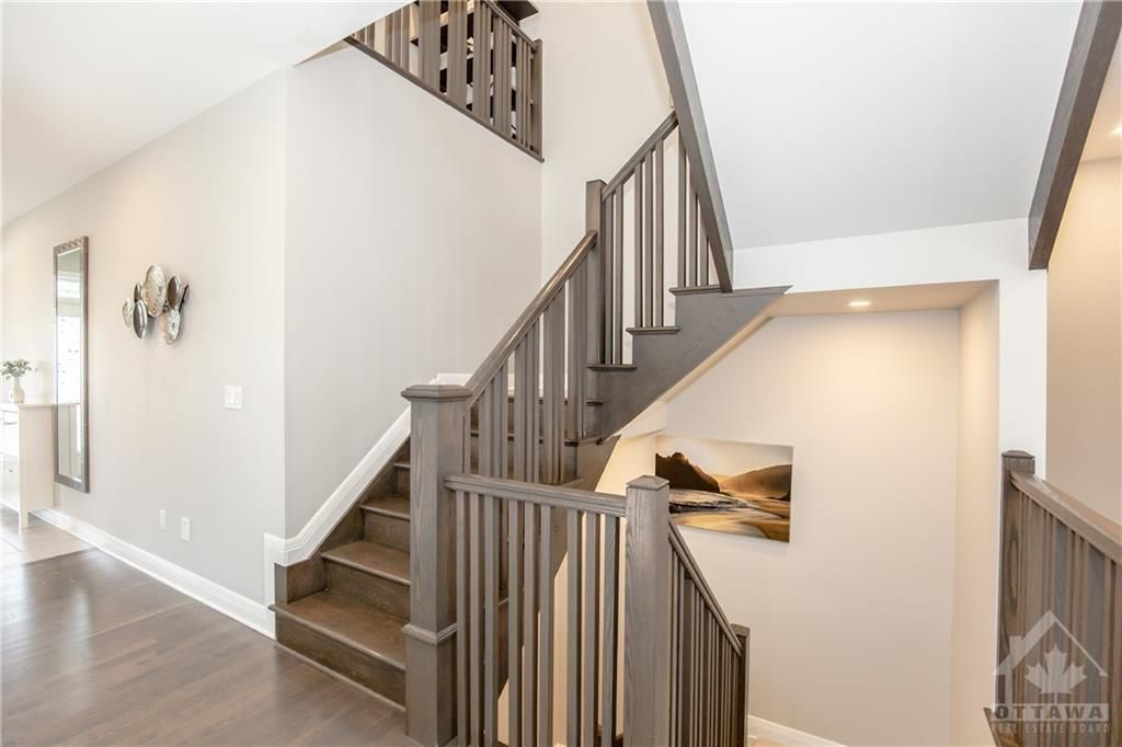 Stunning pond-view home in the highly sought-after richardson ridge community. This beautifully upgraded uniform-built double garage single-family home offers 4 spacious bedrooms and 3. 5 bathrooms, including 2 ensuites, along with a versatile main floor den, ideal for today's modern family lifestyle. The bright, sun-filled interior is enhanced by professionally landscaped front and backyard spaces. The main level features an impressive open-concept design with 9 ft smooth ceilings, elegant oak hardwood flooring, and pot lights throughout. A dramatic open-to-above dining room creates a grand first impression, while the inviting family room showcases oversized windows and a stylish fireplace. The chef-inspired kitchen is fully upgraded with quartz countertops, high-end cabinetry, pots and pans drawers, a walk-in pantry, stainless steel appliances, modern lighting, and a large island with a flush breakfast bar, perfect for entertaining. Hardwood stairs lead to the second level, featuring a luxurious primary retreat with coffered ceiling, a walk-in closet with pax shelving, and a spa-like 5-piece ensuite. Three additional generously sized bedrooms include a second ensuite and a full bathroom. The basement offers laundry and abundant storage space. Step outside to a professionally designed backyard oasis complete with an interlock patio, deck, and covered gazebo, ideal for relaxing or hosting gatherings. Located in a family-friendly neighborhood with top-rated schools including w. Erskine johnston public school, earl of march secondary school, st. Gabriel catholic elementary school, and all saints high school. Walking distance to parks and transit, and just minutes to kowloon market and all amenities. Photos were taken prior to current tenant occupancy. The house is in great conditions and well maintained . N11 signed and tenants will move out by the end of june.