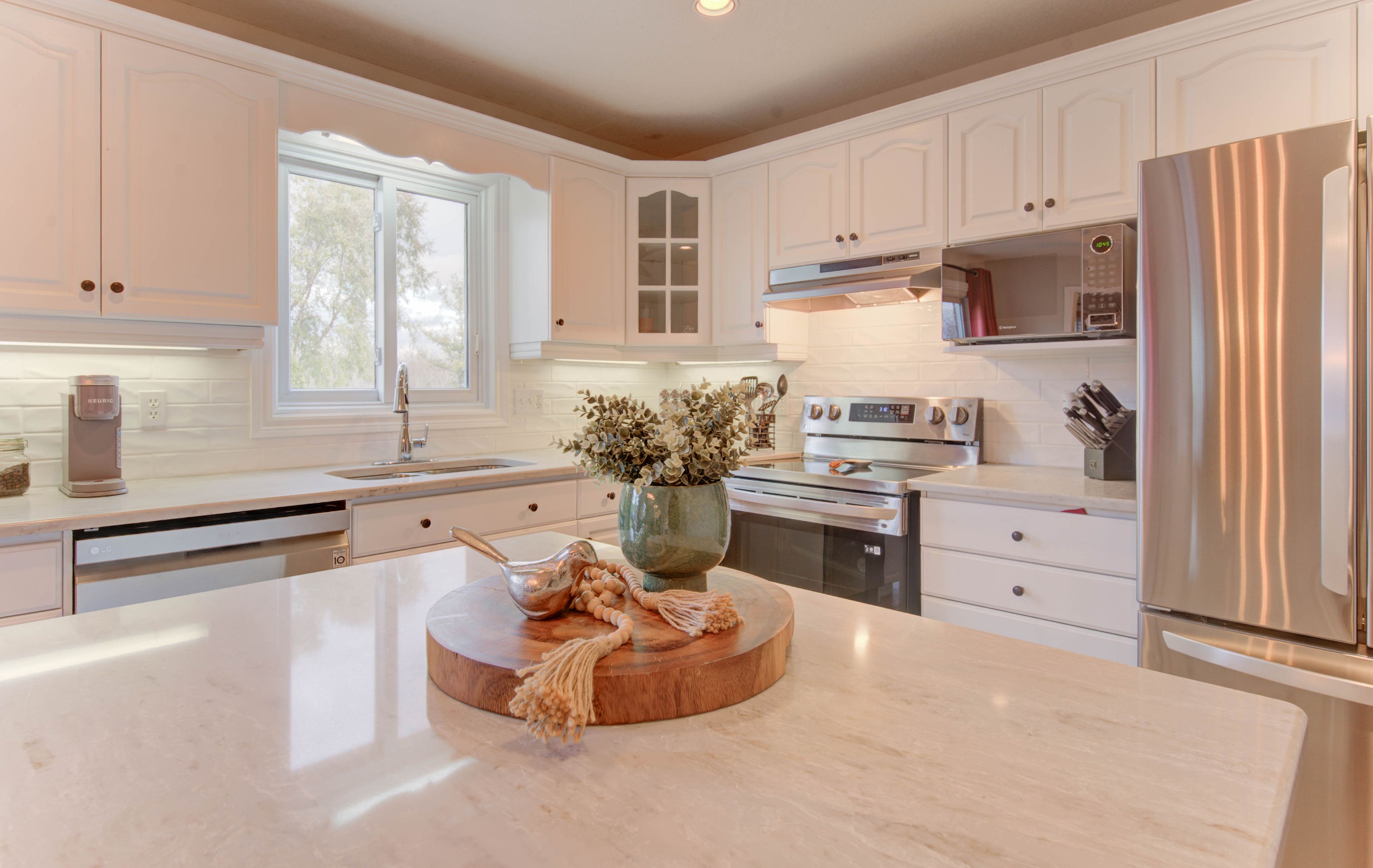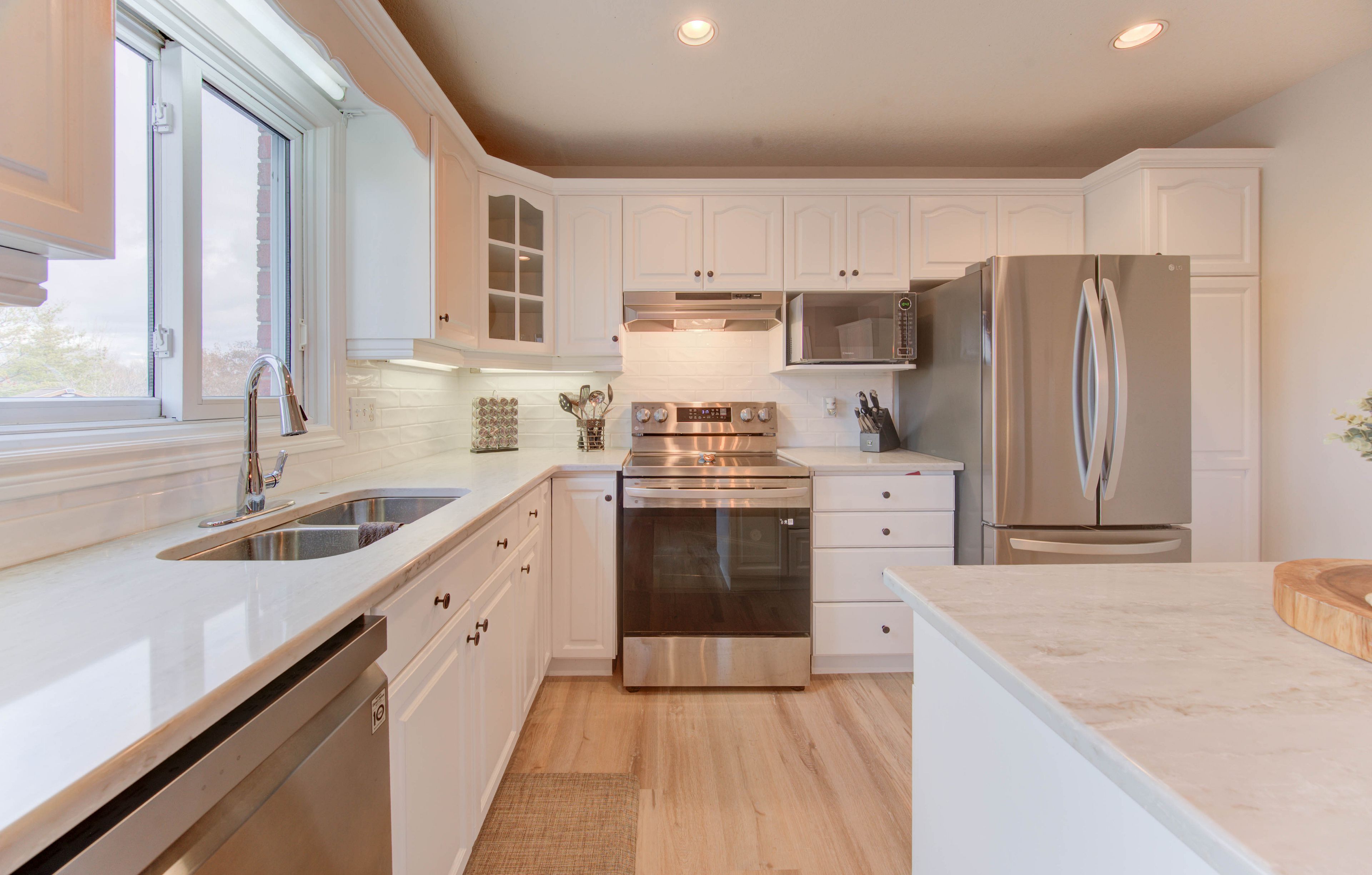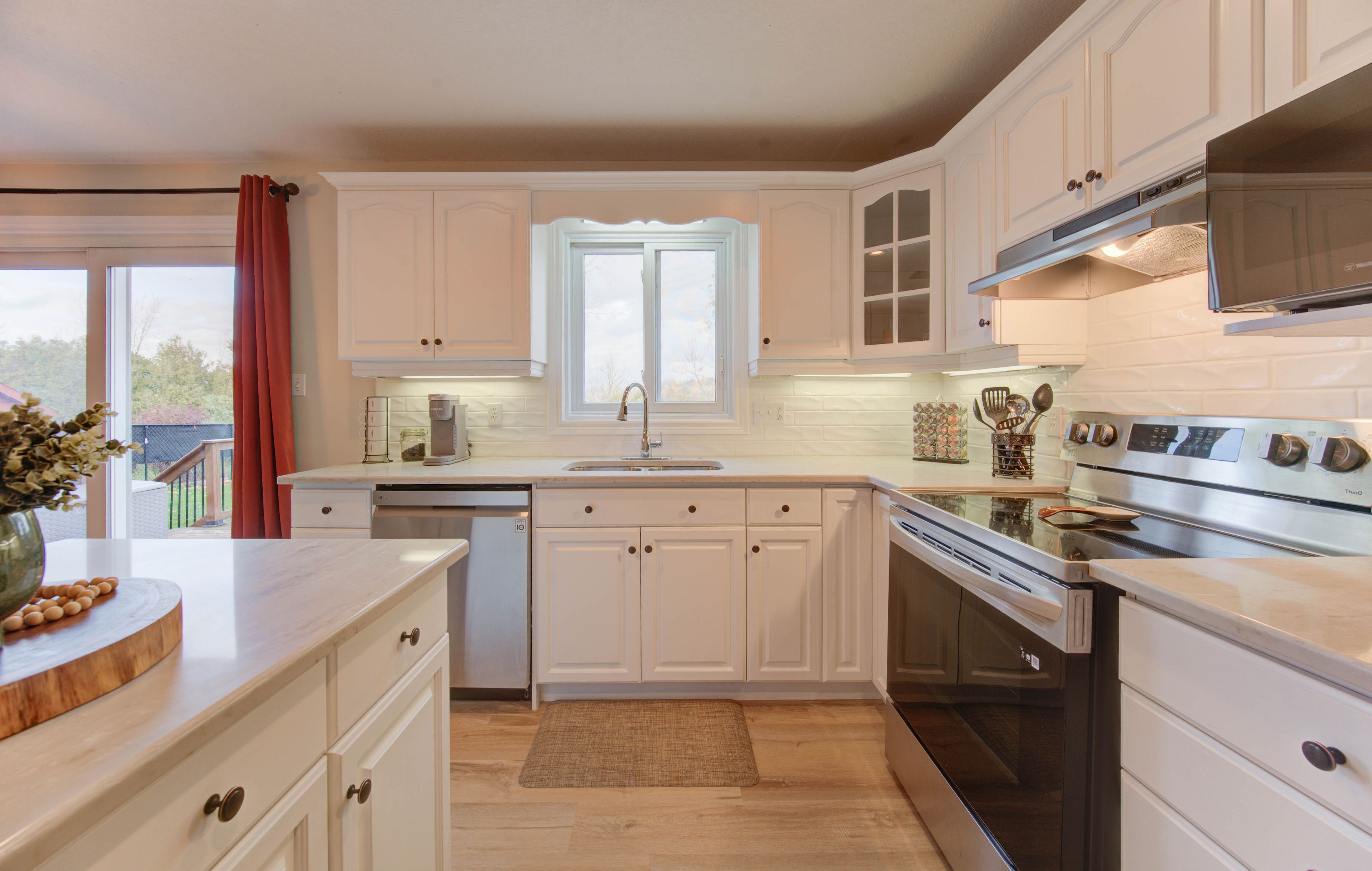 Welcome to 396 otterbein rd.- a spacious and beautifully updated 5-bedroom, 4-bathroom home perfect for families seeking comfort, style, and functionality. Step inside to a bright main floor featuring new luxury vinyl flooring throughout on the main level. The newly renovated kitchen shines with refreshed cabinetry, stainless steel appliances, quartz countertops and sliding doors that lead directly to the backyard that backs onto greenspace-ideal for indoor/outdoor entertaining. A front room offers flexibility as a main-floor office or formal dining room, depending on your lifestyle. The cozy living room features a gas fireplace, making it the perfect spot to unwind. This level also includes a convenient 2-piece bathroom and main-floor laundry. Upstairs, you'll find three generously sized bedrooms, including a spacious primary suite complete with a 3-piece ensuite. A second 4-piece bathroom serves the additional upper-level bedrooms. The finished basement adds exceptional living space with two additional bedrooms, a 2pc bathroom, a comfortable rec room, cold room, and abundant storage throughout-perfect for families needing extra room to grow, host guests, or work from home. Outside, enjoy a fully fenced backyard featuring a deck and an above-ground pool, creating your own private retreat for summer relaxation. The property also offers an attached double-car garage plus parking for two vehicles on the driveway. A well-maintained, move-in-ready home with modern updates, versatile spaces, and plenty of room for the whole family-don't miss your chance to make 396 otterbein rd. Yours!