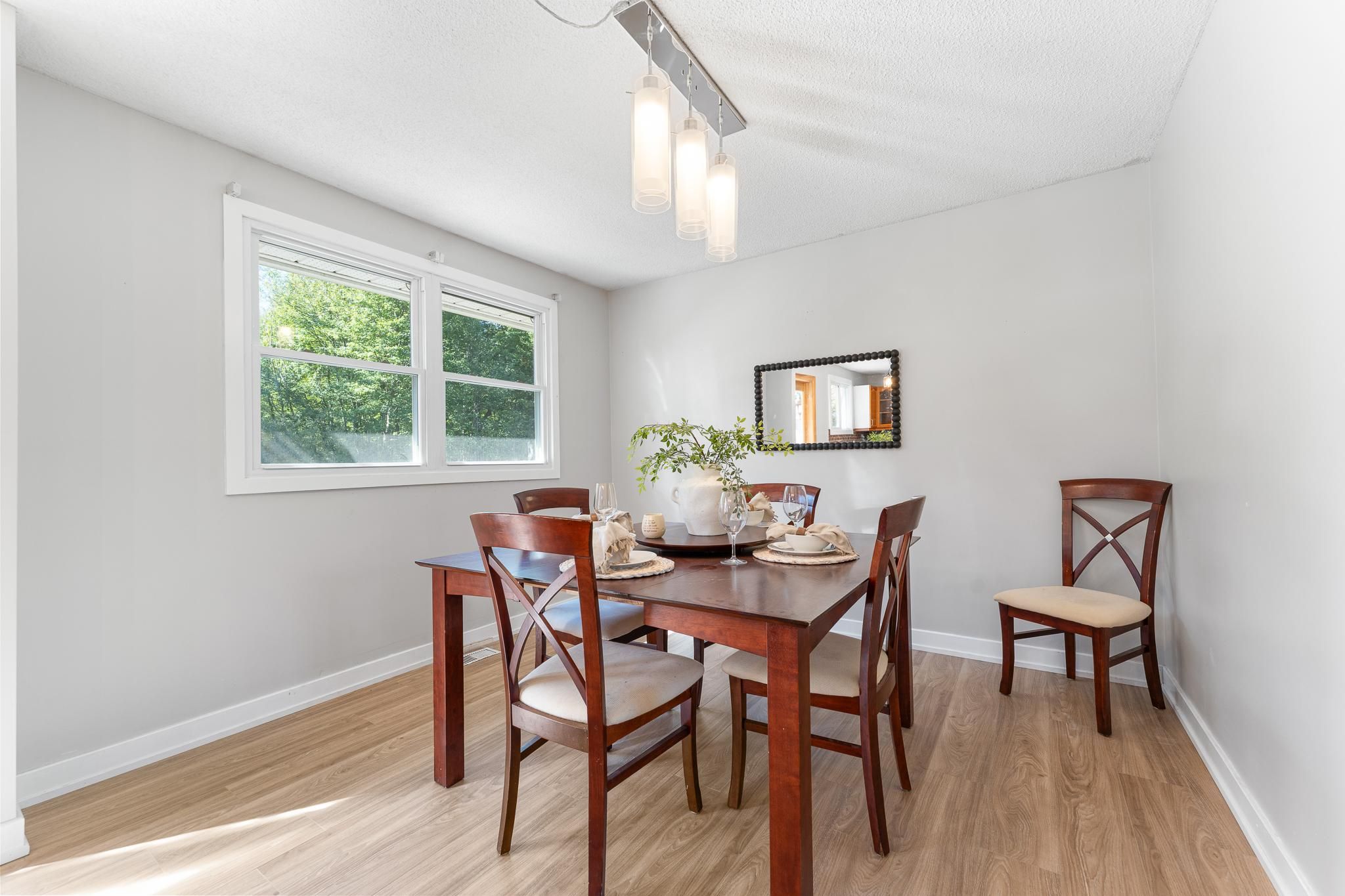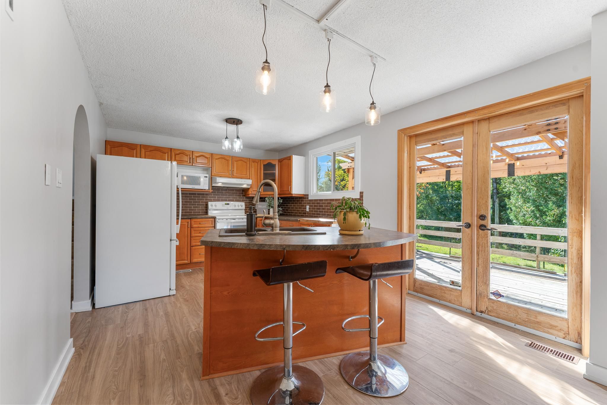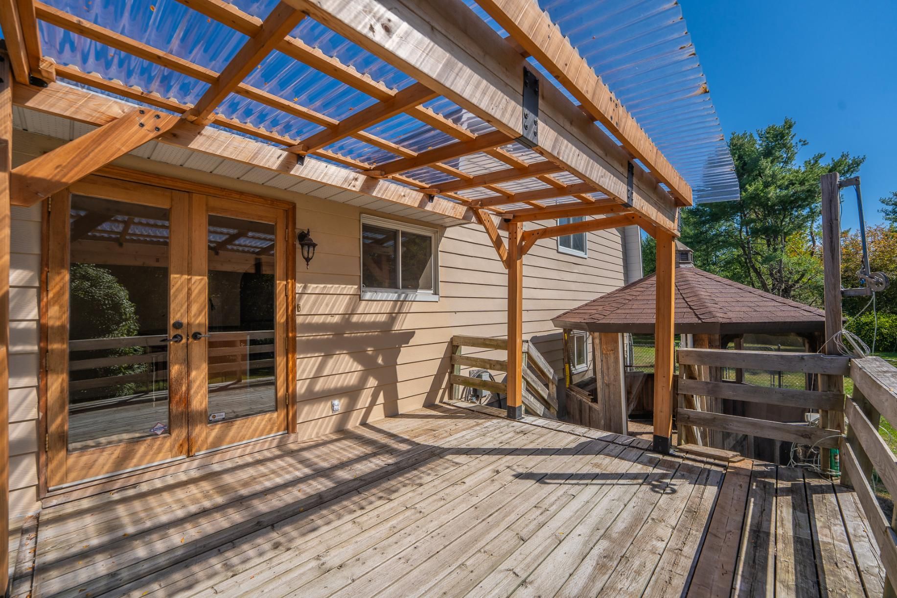 Welcome to carlsbad springs a family-oriented community nestled in a rural setting with urban conveniences within only 15 minutes - best of both worlds! This high-ranch style home boasts many recent upgrades, set on over half an acre and features a convenient in-law suite. Enjoy peaceful rural living and the privacy of no rear neighbours. Inside, you are welcomed by a spacious and inviting living room with large picture window, while the expansive sun-filled kitchen offers a generous dining area and beautiful views of the backyard. The upper level features three well-sized bedrooms and a renovated 4-piece bathroom. The finished lower level, brightened by the high-ranch design, features large windows, an entertainment-sized rec room with a wood-burning fireplace, a full bathroom, laundry, and plenty of storage. The versatile in-law suite provides endless possibilities - ideal for multigenerational living, hosting guests, or a private teenage retreat. The south-facing backyard surrounded by mature trees offers both beauty and function. A spacious deck with pergola and a gazebo provides spots to relax, while the fenced yard is perfect for pets. For hobbyists or those needing extra space, the oversized detached garage, hydro-connected c-can (great for a workshop, tools, or equipment), and additional reconstructed storage shed deliver plenty of options. Front roof re-shingled 2019, back roof re-shingled 2017, windows (except in-law space) 2009. Full list of upgrades available. Enjoy the tranquility of country-style living without sacrificing convenience, only minutes to shopping, dining, and everyday amenities!