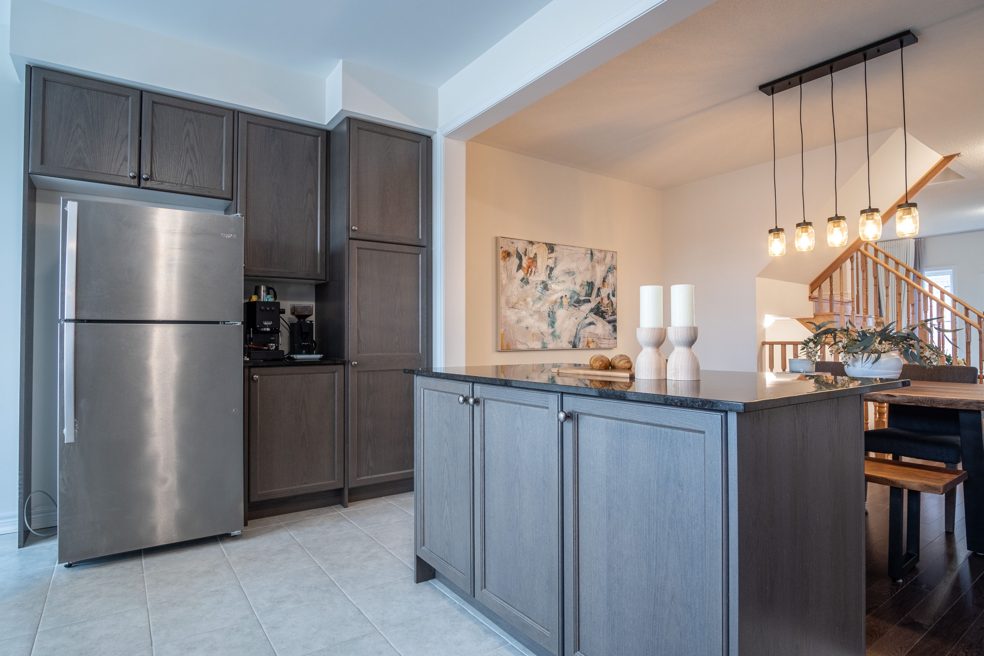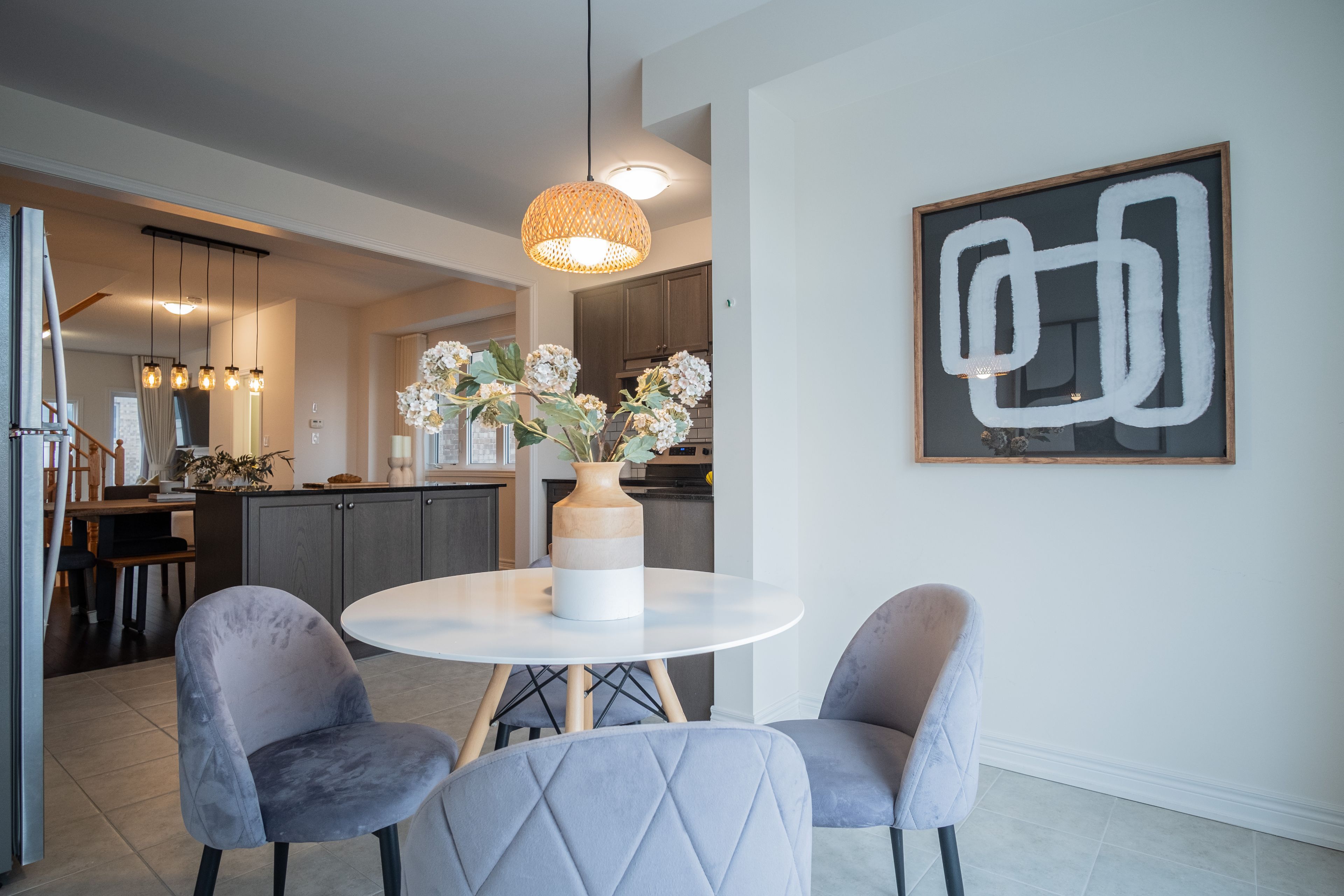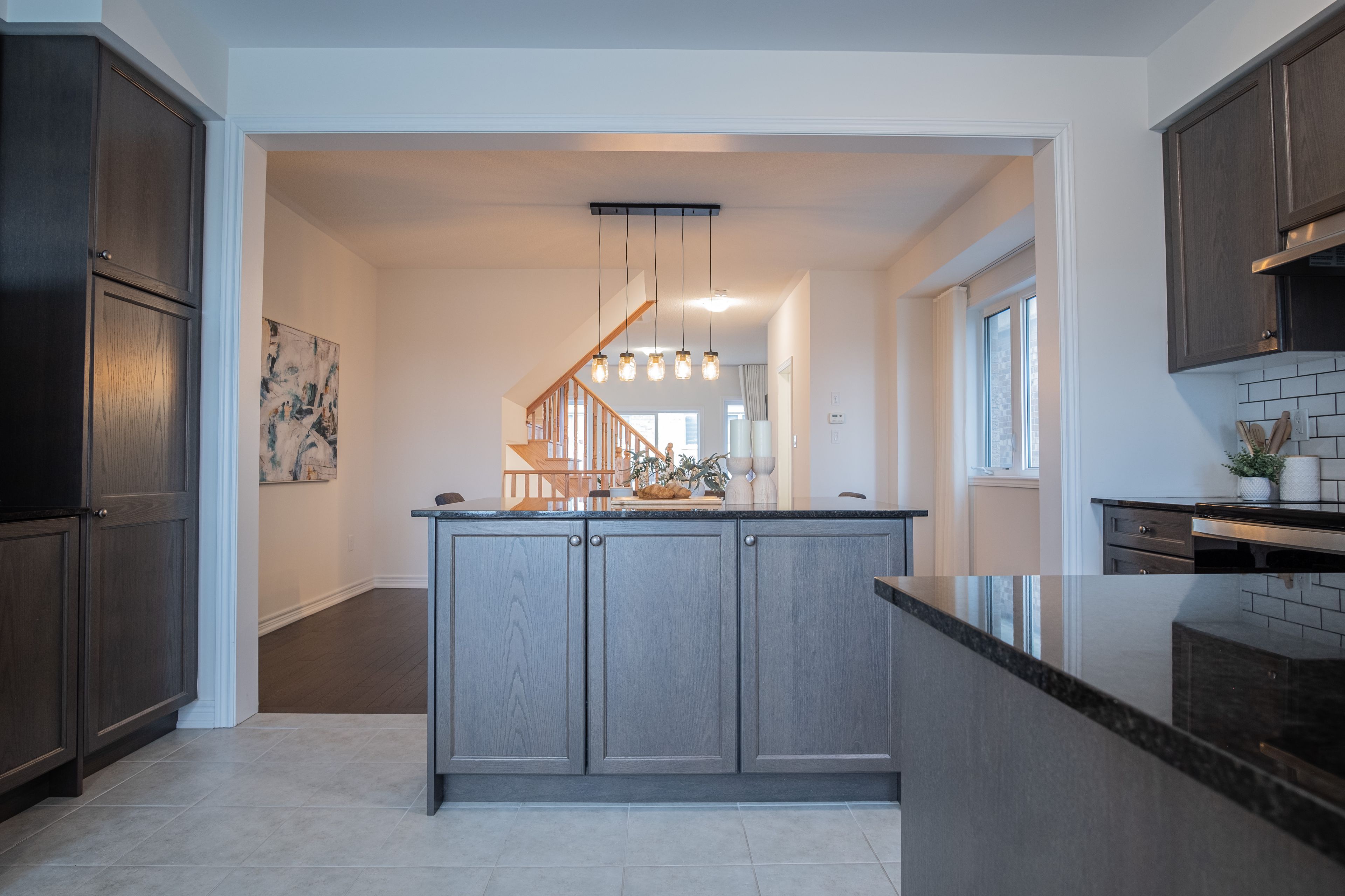 • Spacious kitchen seamlessly connects to living and dining areas.