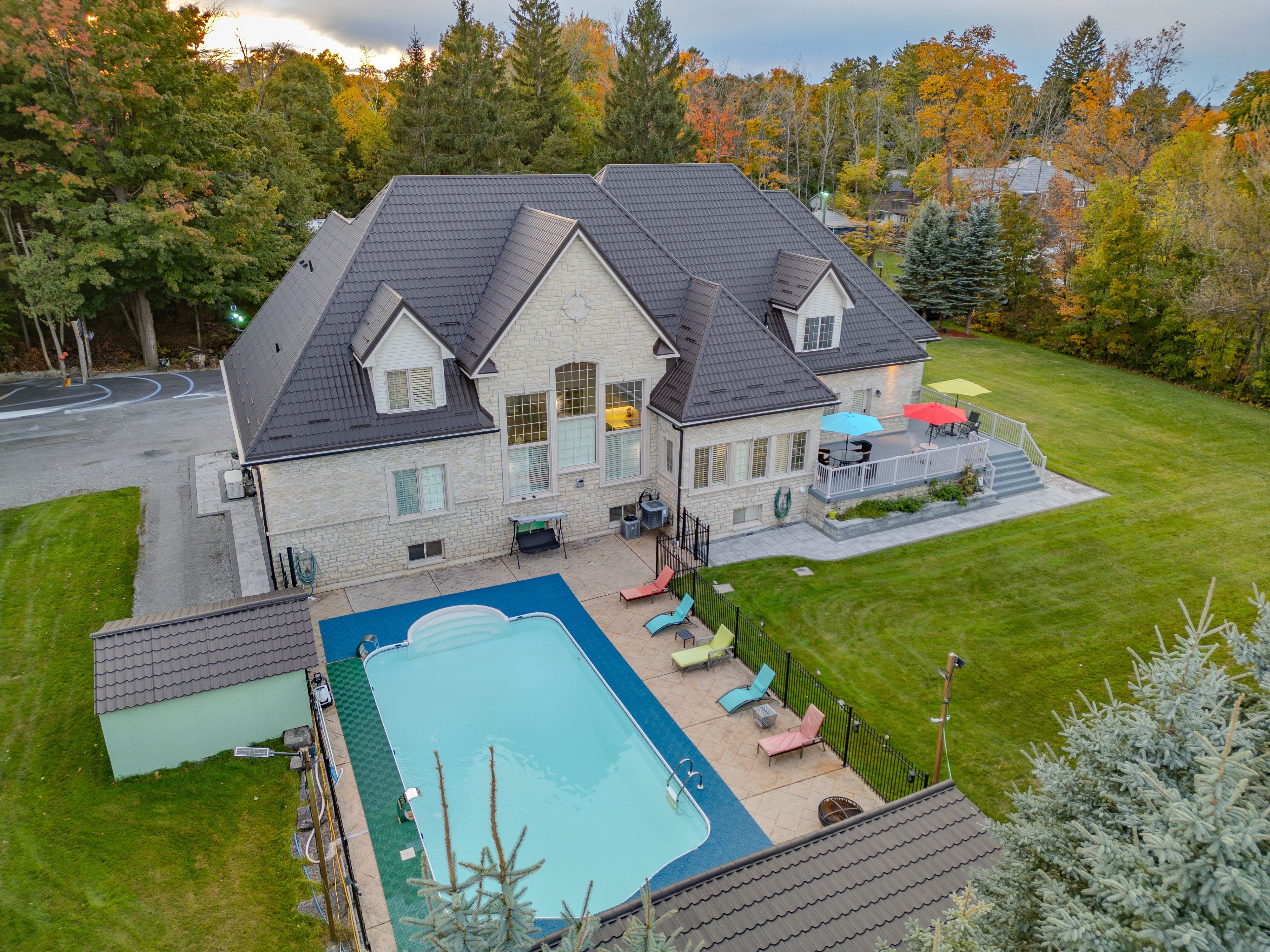 Luxury custom home big bay point, steps from lake simcoe! Welcome to this newly upgraded, move-in ready luxury bungaloft situated on a sprawling 200x150 ft lot surrounded by lush greenery in the sought-after big bay point community. Just steps from lake simcoe, enjoy convenient access to the boat launch and big bay point government dock, with friday harbor resort only minutes away. ***** over $1. 2 million has been invested in interior and exterior upgrades within the last two years. The property features a newly installed metal roof with a lifetime warranty, freshly paved driveway extended to the lot line for additional parking and circular driveway access, and professionally designed landscaping with an automated irrigation system. ***** relax and entertain in the enclosed, fully equipped in-ground heated swimming pool with fresh water (filled in july 2025), two elegant fountains, and solar lighting. Adjacent is a stunning 500+ sqft outdoor kitchen with metal roofing and extra storage perfect for summer gatherings. Kids will love the private playground complete with slide, swings, monkey bars, and soft sea sand. ***** this spacious 7-bedroom, 5-bath home boasts over 5,000 sq ft of living space including an attached heated 3-car garage with epoxy flooring and ample shelving. The bright interior features oversized windows, elegant wall moldings, coffered ceilings, and adjustable led pot lighting that enhances every room's ambiance. ***** the partially finished basement offers a bedroom, dining area, 3-piece bath, and a stylish metallic decorative marble epoxy floor. Whether hosting family or friends, this home provides the perfect resort-like atmosphere for indoor and outdoor living near the beach. ***** schedule a visit to experience this stunning home!