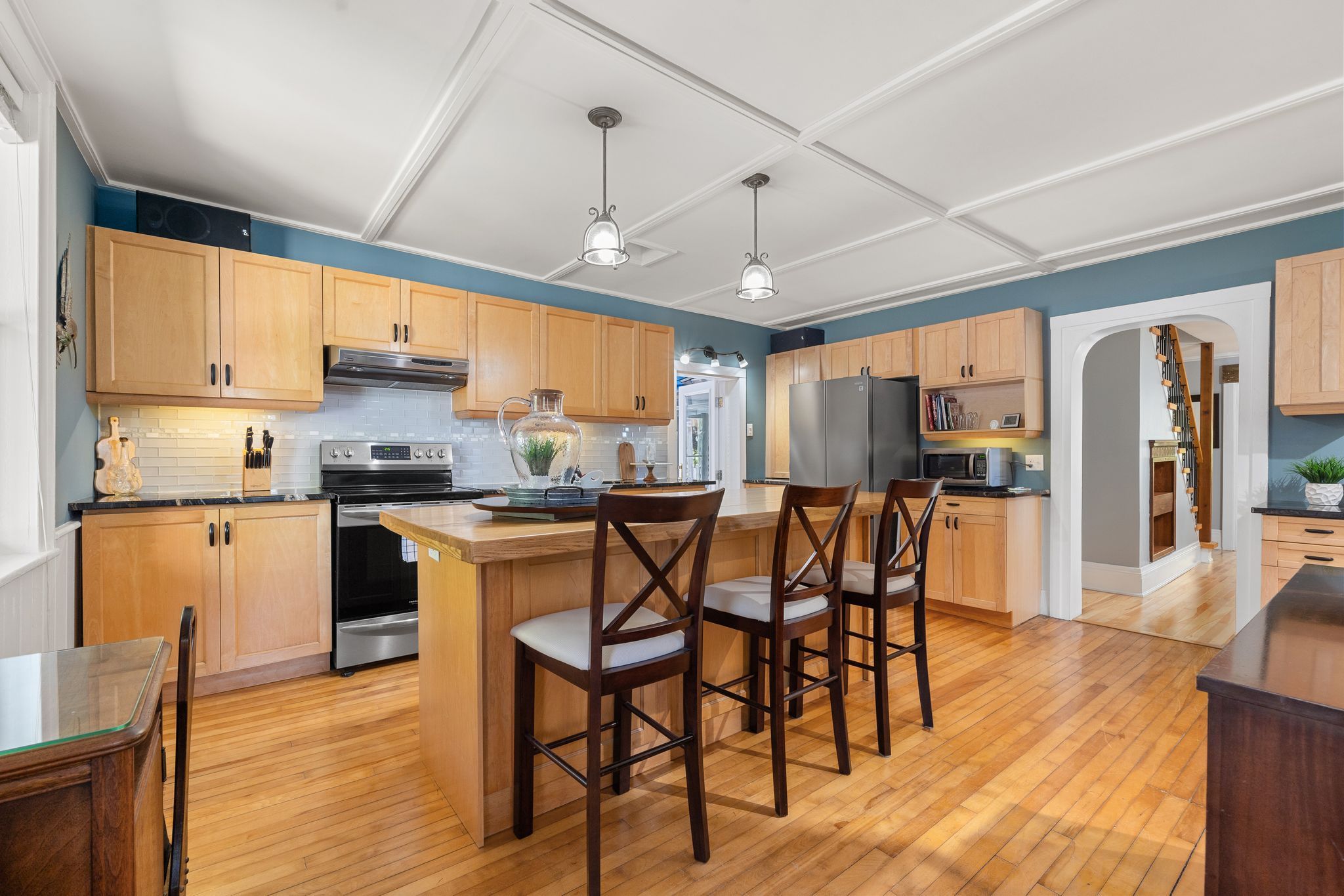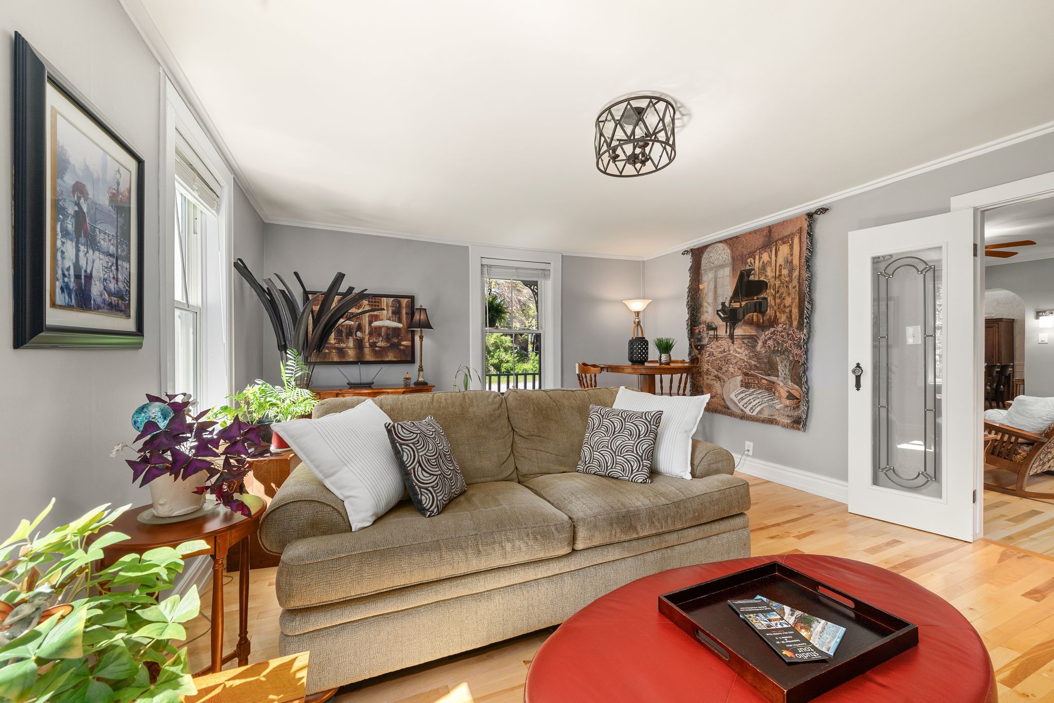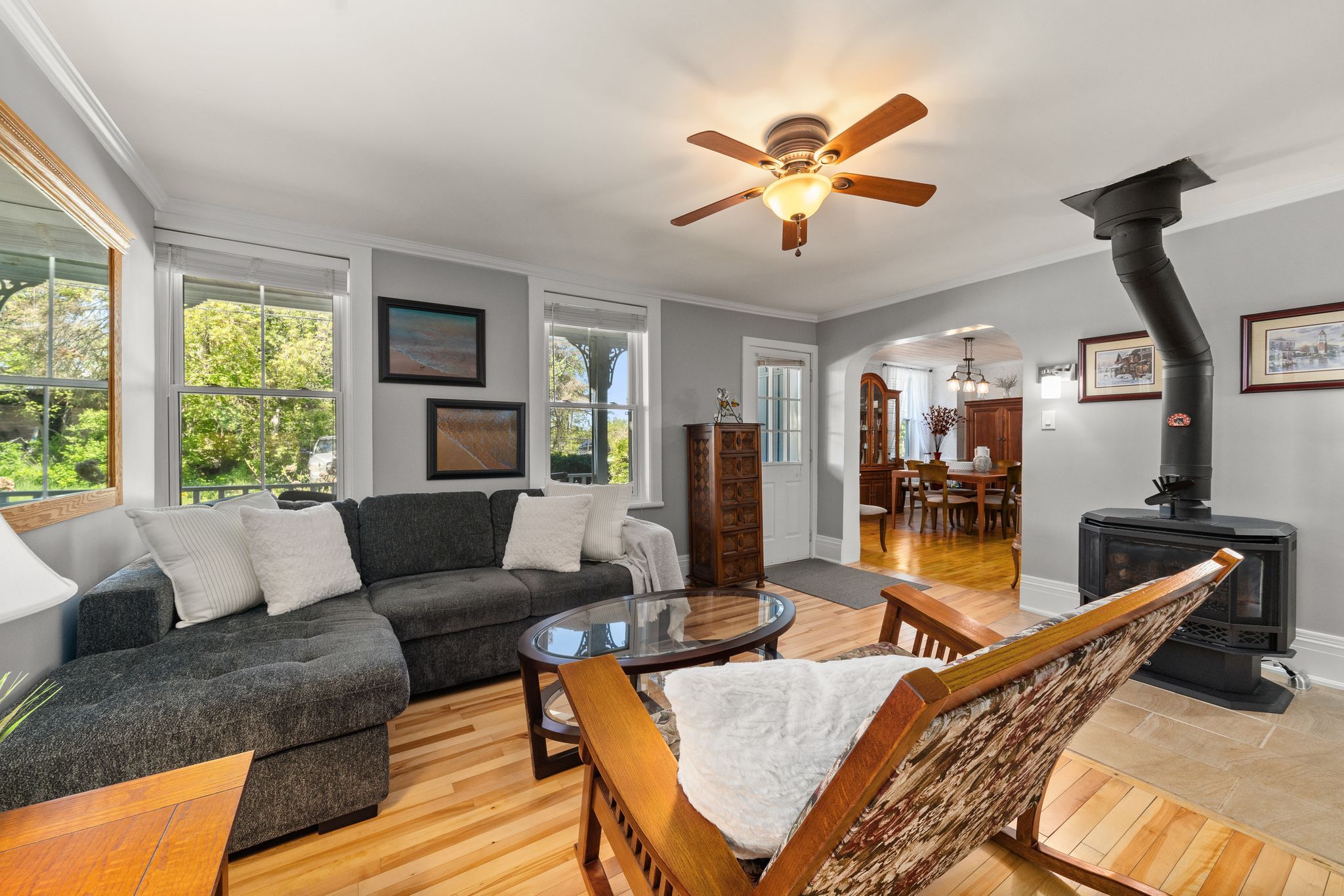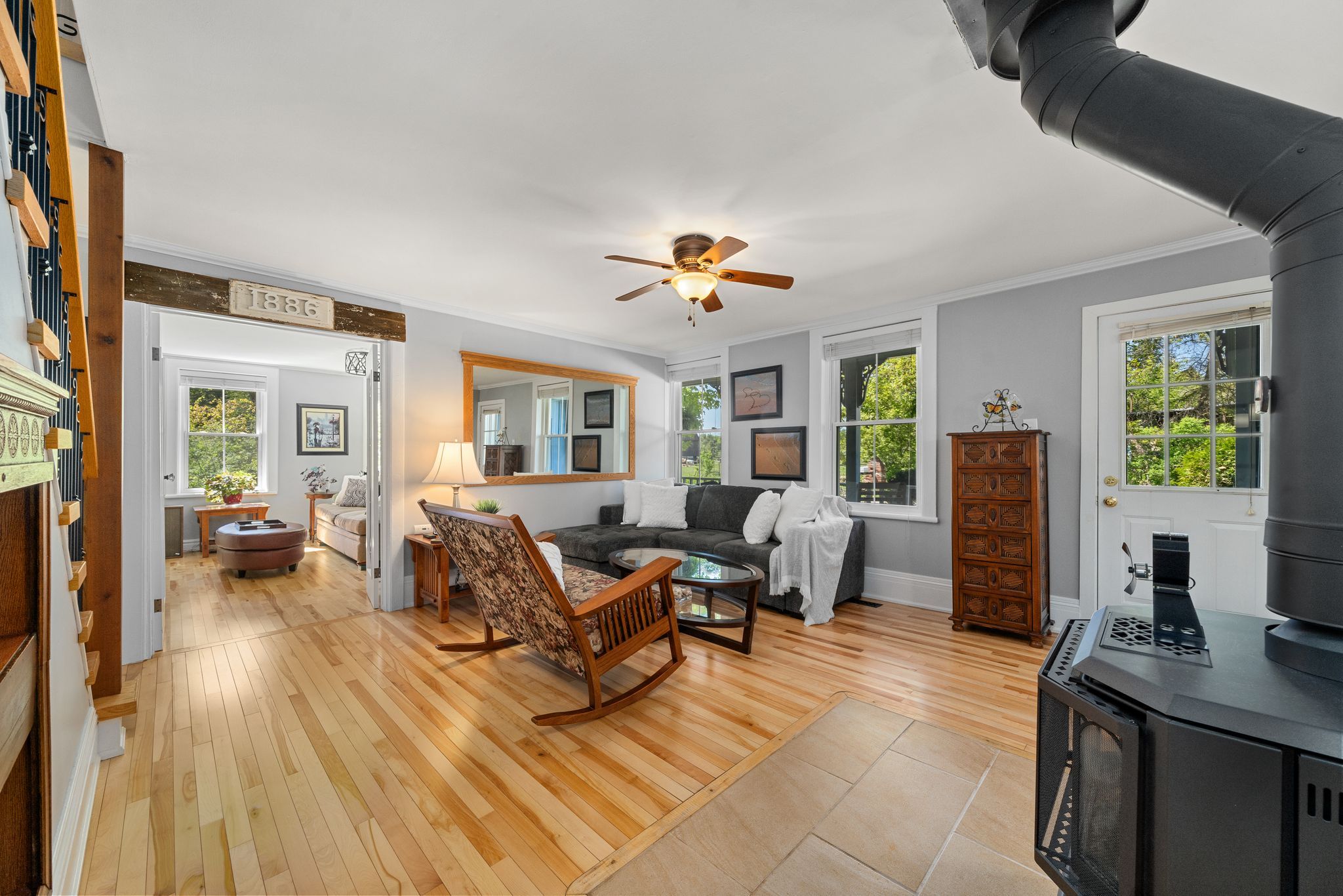 Discover the perfect blend of luxury and country living in this stunning century home located in the charming hamlet of bexley. Boasting nearly 2,600 sq ft of thoughtfully upgraded and meticulously maintained living space, this home is an absolute showstopper. Step inside to find a spacious main floor offering the ideal layout for modern living and entertaining. The large, beautifully appointed kitchen features a central island perfect for culinary creations and gathering with loved ones. Adjacent, the formal dining room and cozy living room with a propane stove provide spaces for both relaxation and hosting guests. A separate family room adds versatility, while the charming 3-season sunroom offers serene garden views, inviting you to unwind. Completing the main floor are a convenient laundry room and a practical mudroom. Upstairs, the second level continues to impress with four generously sized bedrooms, a versatile loft space perfect for a games room or additional family area, and a beautifully updated bathroom. Throughout the home, custom details such as wainscoting, crown moulding, built-in shelving, and elegant french doors create an unparalleled atmosphere of timeless elegance. Outside, enjoy the peaceful country ambiance from the verandas and patios at both the front and back of the house. The detached two-car garage, complete with a heated workshop, provides ample space for projects and storage. And don't forget the 14kw generac generator to keep you powered up when needed. Situated on a picturesque half-acre lot, the manicured gardens and lush surroundings make this property truly special. Experience luxurious country living at its finest in this remarkable home-you truly have to see it to believe it!