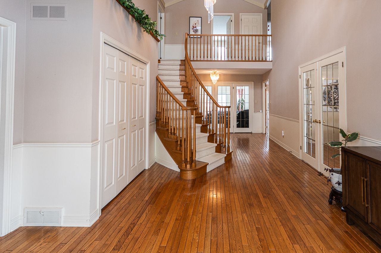 Prestige, scale, and opportunity converge in this stately all-brick harasym residence, privately tucked on a quiet cul-de-sac in sought-after windermere heights, north london, london. Offering approximately 7,400 square feet of finished living space, this grand estate is ideal for large or multi-generational families seeking exceptional space to live and entertain. A welcoming enclosed entry opens to a dramatic two-storey foyer with cathedral ceilings, hardwood floors, and a sweeping oak staircase with juliette balcony. The main floor blends elegance and function, featuring a private office with built-ins, formal dining with butler access, oversized eat-in kitchen, sun-filled family room with fireplace, spacious living room, bright sunroom with california shutters, and mudroom with main-floor laundry. Upstairs offers five generous bedrooms. The primary retreat includes a walk-in closet, private ensuite, and sunlit sitting area ideal for reading or office use. The finished walk-up lower level, with direct access from the triple-car garage, adds exceptional versatility with a massive recreation area, additional living space, den, full bath, second laundry rough-in, extensive storage, and a large sixth bedroom with in-law potential. The fully fenced backyard is a private oasis featuring mature landscaping, deck, interlock patio, two sheds, and a heated saltwater in-ground pool with new heater, pump, and equipment (2024). Additional features include ev charger (2024), central vacuum, skylights, and quality craftsmanship throughout. Minutes to western university, university hospital, masonville shopping, top schools, trails, and parks. A rare opportunity to secure estate-scale living in one of north london's most prestigious neighbourhoods.