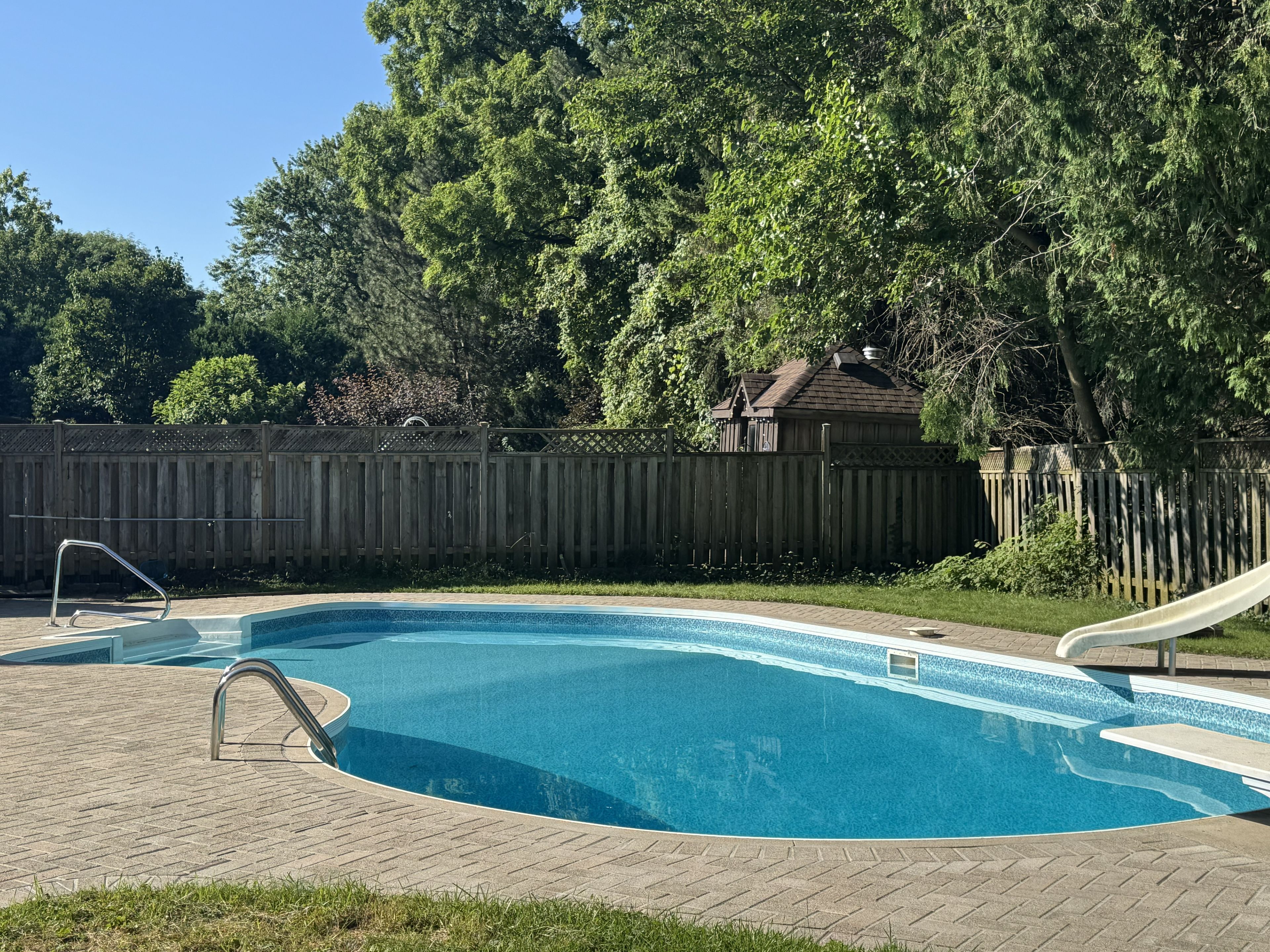 • Private backyard oasis with a heated saltwater pool and mature landscaping.