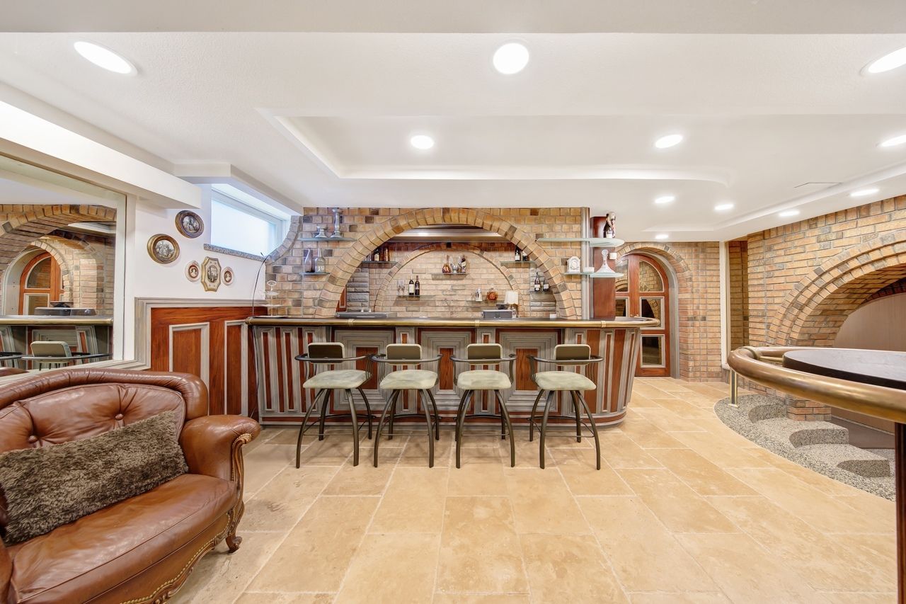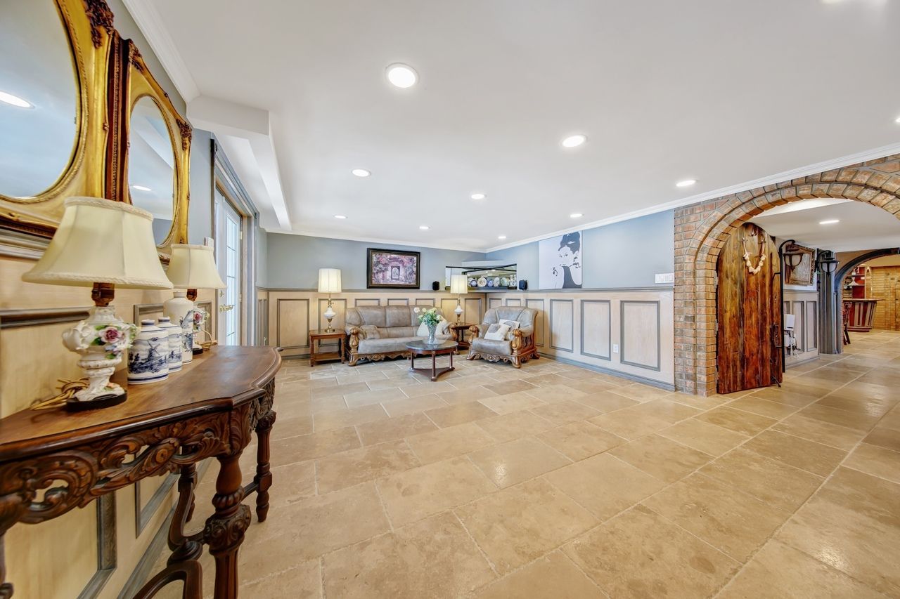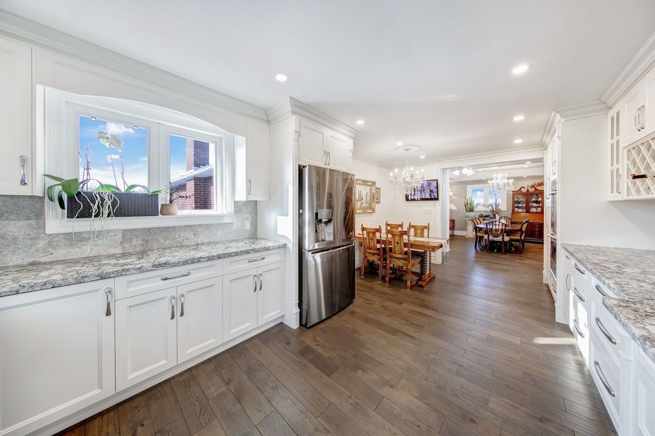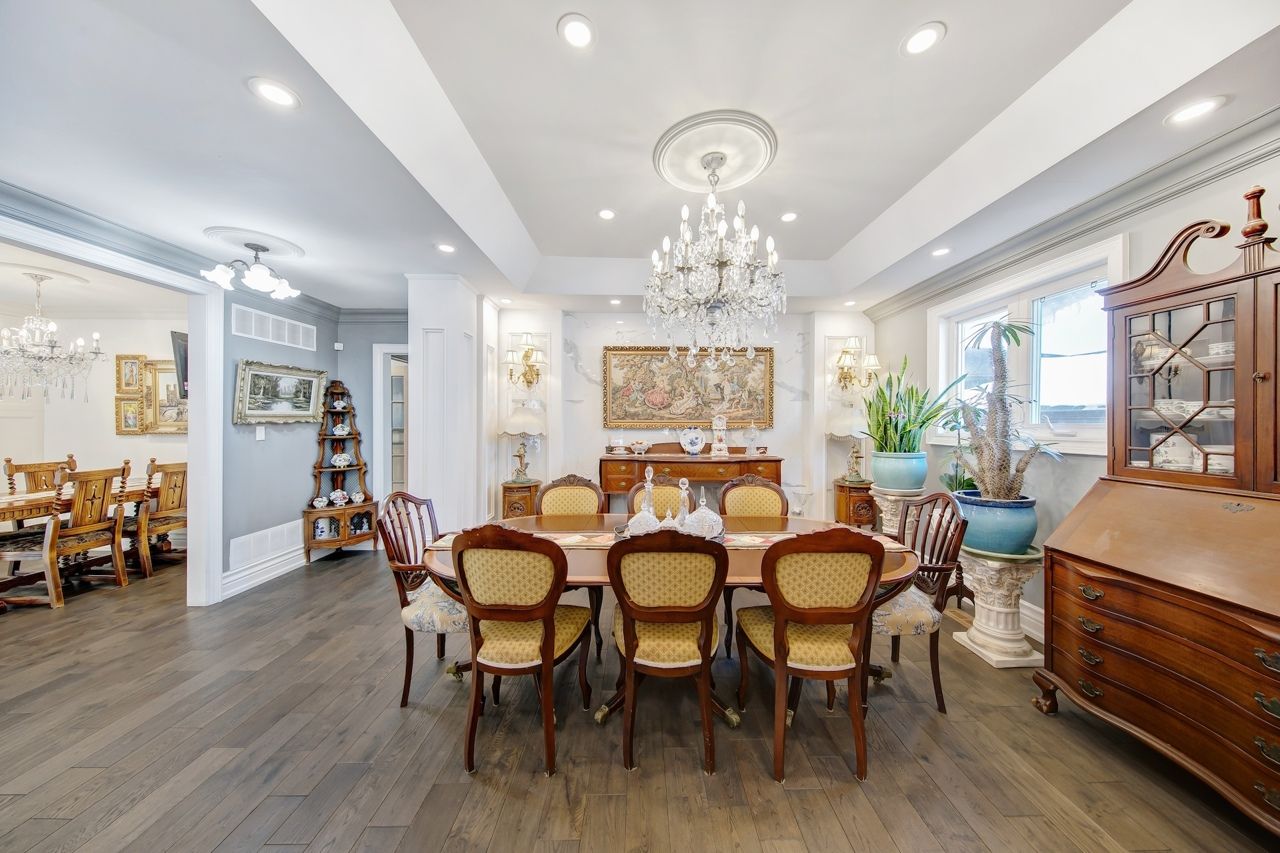 Spectacular fully renovated ravine-lot residence! 4105 sqf of luxury living+267 solarium. This exceptional home has undergone $$$in renovations, showcase timeless elegance, thoughtful design&superior craftsmanship throughout. The main level features walnut hardwood floor, marble foyer, abundant interior & exterior pot lights, crown moulding, millwork, coffered ceiling, solid interior doors, operable skylights, wraparound balconies shared by the primary & 2nd bedroom. The primary retreat offers two walk-in closets and a spa-like ensuite. Additional conveniences include security cameras, sprinkler systems, electrical sub-panel, direct garage access, and an extra-long driveway for up to 10 vehicles. The main floor offers 3 generously sized bedrooms and 3 luxury finished washrooms. The lower level mirrors the scale of the main floor and is flooded with natural light. Finished with stone tiling, extensive cedar accents, and dramatic white oak open-riser stairs with matching wood paneling throughout, this level delivers warmth and architectural character. Antique solid wood doors lead to a private bedroom (or family rm)with a fireplace and direct walk-out access showcasing breathtaking ravine views. Ideal for entertaining or extended family living, the space includes a wet bar, full 2nd kitchen with sub-zero refrigerator, dry sauna, and an elegant seven-piece washroom featuring a jacuzzi and extensive use of the cedar ceiling. A separate side entrance adds flexibility and privacy. A standout feature is the custom-built solarium (around 267 sq ft, over $$$in construction) engineered with a steel-beam structure. Hardwood flooring with rough-in water supply and drainage already in place, it offers future potential for an additional washroom. This bright, versatile space is perfect for relaxing, working, or gathering while enjoying tranquil ravine views. A rare offering combining luxury, space, privacy, nature, and exceptional location in one remarkable home.