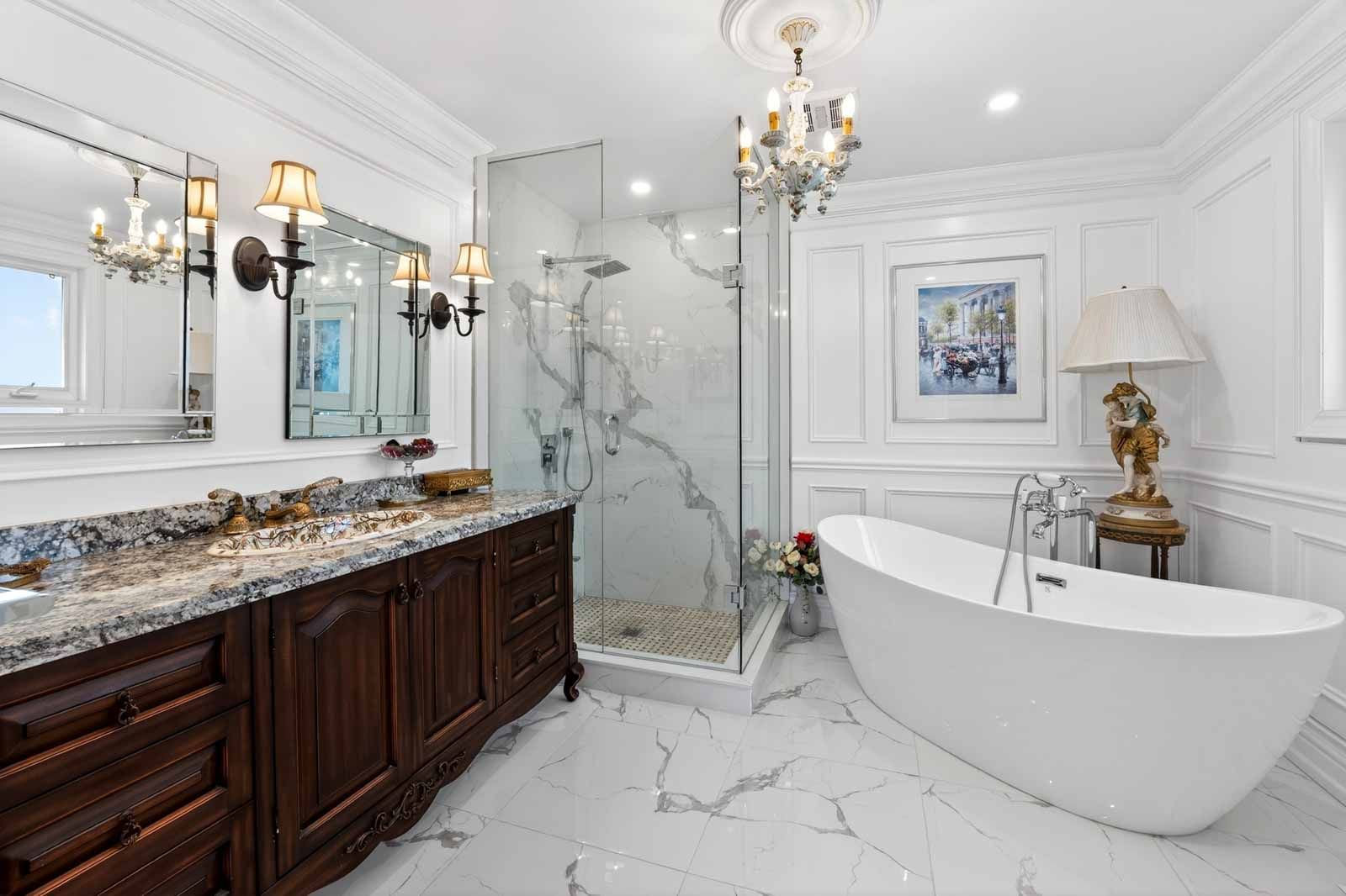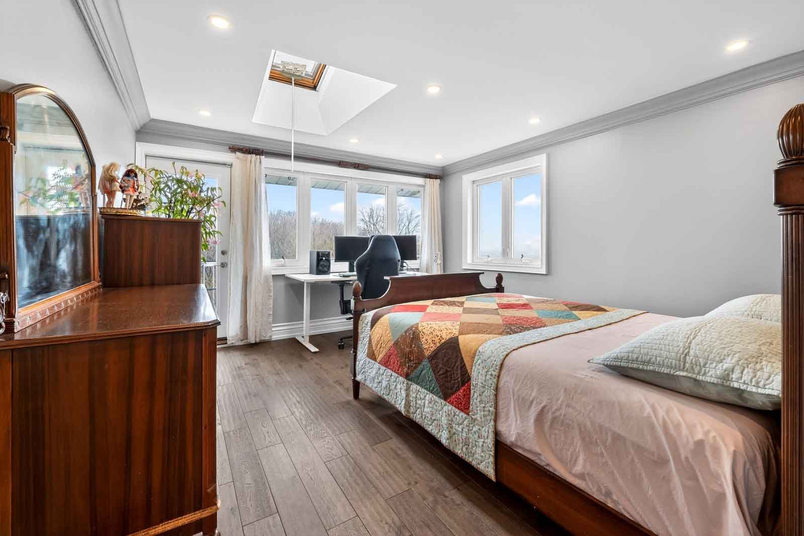 Spectacular fully renovated ravine-lot residence! 4105 sqf of luxury living+267 solarium. This exceptional home has undergone $$$in renovations, showcase timeless elegance, thoughtful design&superior craftsmanship throughout. The main level features hardwood floor, marble foyer, abundant interior & exterior pot lights, crown moulding, millwork, coffered ceiling, solid interior doors, operable skylights, wraparound balconies shared by the primary & 2nd bedroom. The primary retreat offers two walk-in closets and a spa-like ensuite. Additional conveniences include security cameras, sprinkler systems, electrical sub-panel, direct garage access, and an extra-long driveway for up to 10 vehicles. The main floor offers 3 generously sized bedrooms and 3 luxury finished washrooms. The lower level mirrors the scale of the main floor and is flooded with natural light. Finished with stone tiling, extensive cedar accents, and dramatic white oak open-riser stairs with matching wood paneling throughout, this level delivers warmth and architectural character. Antique solid wood doors lead to a private bedroom (or family rm)with a fireplace and direct walk-out access showcasing breathtaking ravine views. Ideal for entertaining or extended family living, the space includes a wet bar, full 2nd kitchen with sub-zero refrigerator, dry sauna, and an elegant seven-piece washroom featuring a jacuzzi and extensive use of the cedar ceiling. A separate side entrance adds flexibility and privacy. A standout feature is the custom-built solarium (around 267 sq ft, over $$$in construction) engineered with a steel-beam structure. Hardwood flooring with rough-in water supply and drainage already in place, it offers future potential for an additional washroom. This bright, versatile space is perfect for relaxing, working, or gathering while enjoying tranquil ravine views. A rare offering combining luxury, space, privacy, nature, and exceptional location in one remarkable home.