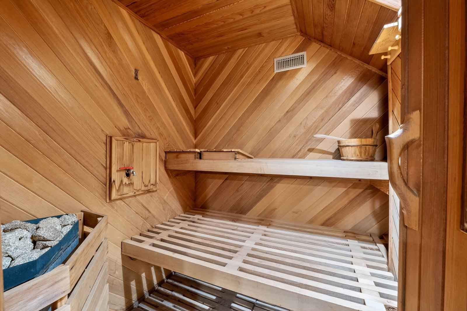 • Amenities include security, ample parking, and a sauna for relaxation.