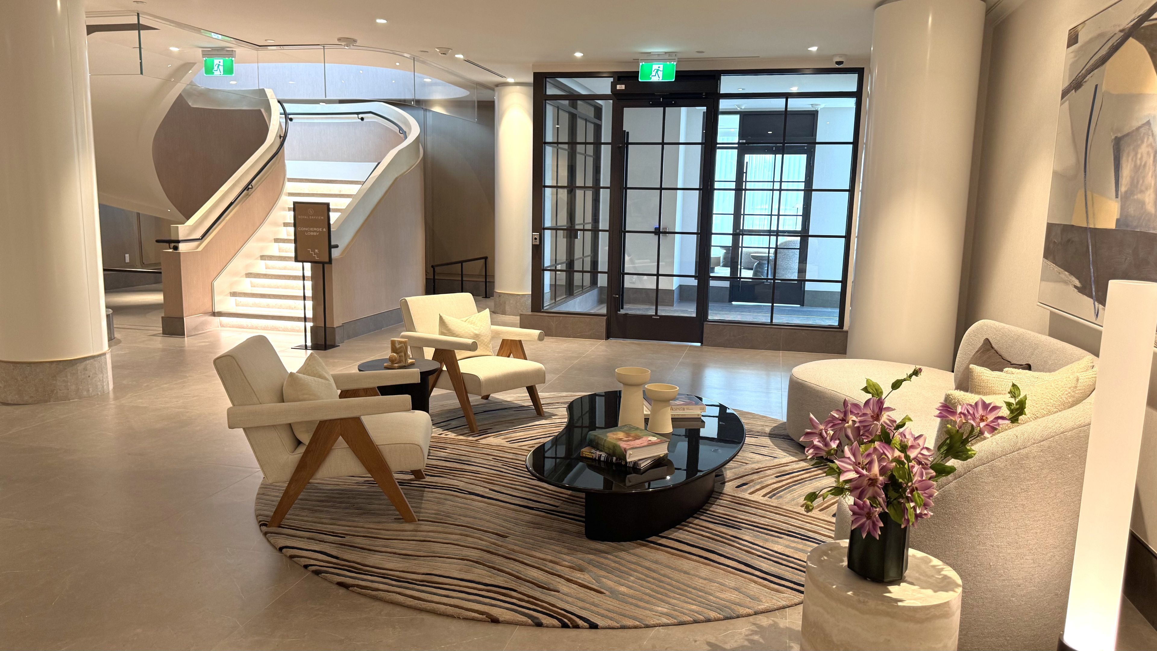 • Luxury amenities include a concierge, indoor pool, fitness centre, and more.