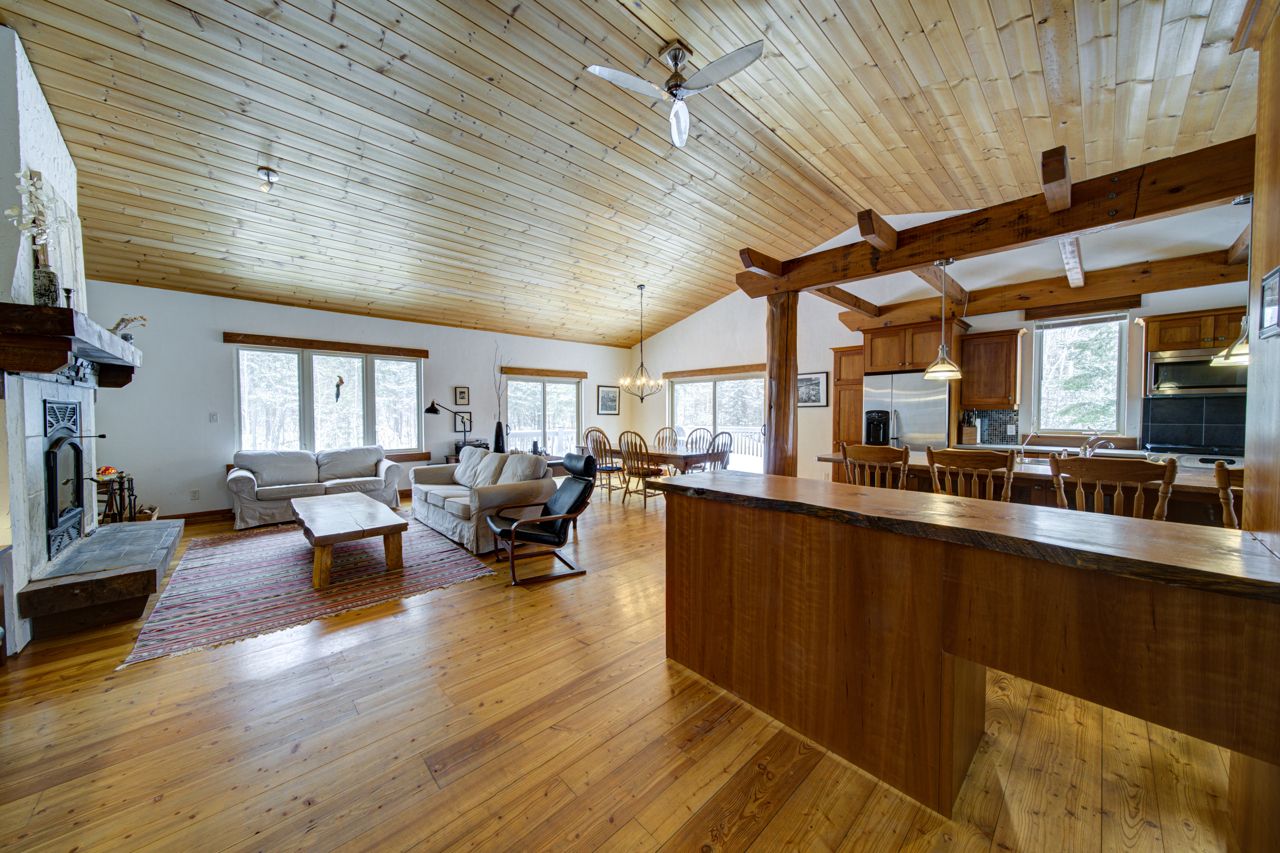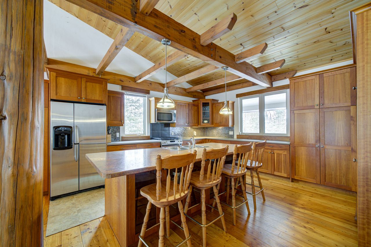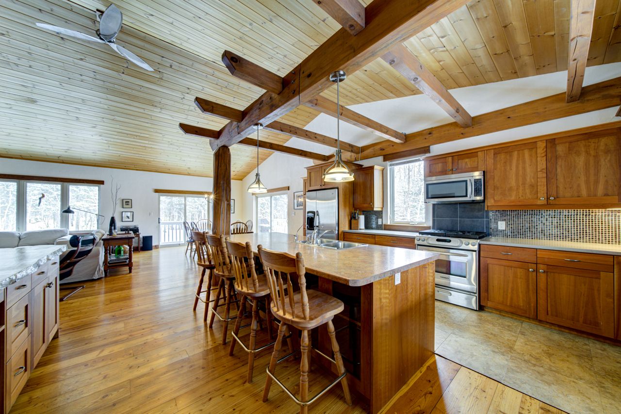 Welcome to your luxurious country retreat in the prestigious silver birch beach area near thunder beach. This stunning 2-story home, custom built in 2005, boasts approximately 3000 sq. Ft. Of finished living space and sits on an acre of forested land. The home features 3 bedrooms, 3 bathrooms, and a spacious attached garage with plenty of storage and onsight parking. Step inside and be greeted by the warmth of tamarak wood flooring and vaulted wood beam ceilings in the great room, complete with a cozy wood-burning fireplace. The expansive custom kitchen features cherry wood cabinetry, an eat-in center island, and stainless steel appliances. The dining area has both a side and rear walkout, excellent for bbqing on warm summer nights. The primary bedroom offers a tranquil escape with vaulted ceiling, ensuite bathroom complete with glass & tile shower, walk-in closet, and additional storage room. Downstairs, you'll find two large bedrooms, a versatile rec room, a full 4-pc bathroom, as well as a laundry/utility room. Step outside and enjoy the beauty of nature from the covered front porch, and wrap around deck, overlooking more than a half an acre of private forested rear yard. With access to the lake, sandy beach, and breathtaking sunsets just a short stroll away, this property is truly a slice of paradise. Don't miss your chance to make this dream home your own in this sought after community!