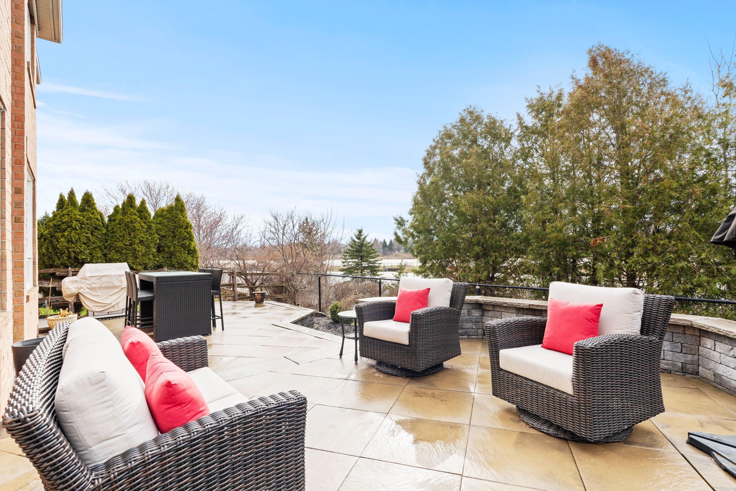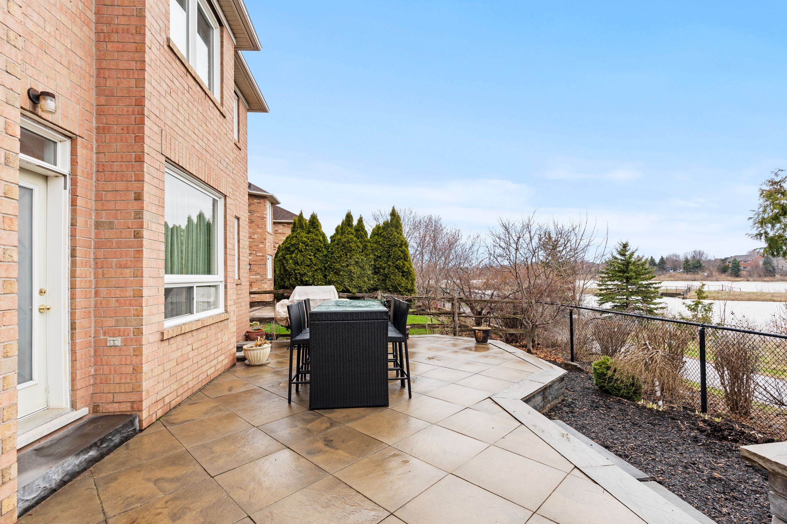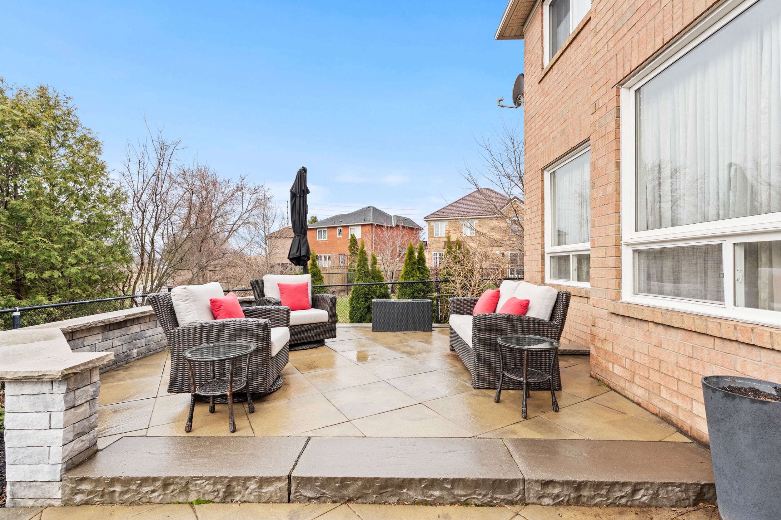 • Backyard features a large stone patio for outdoor entertaining.
