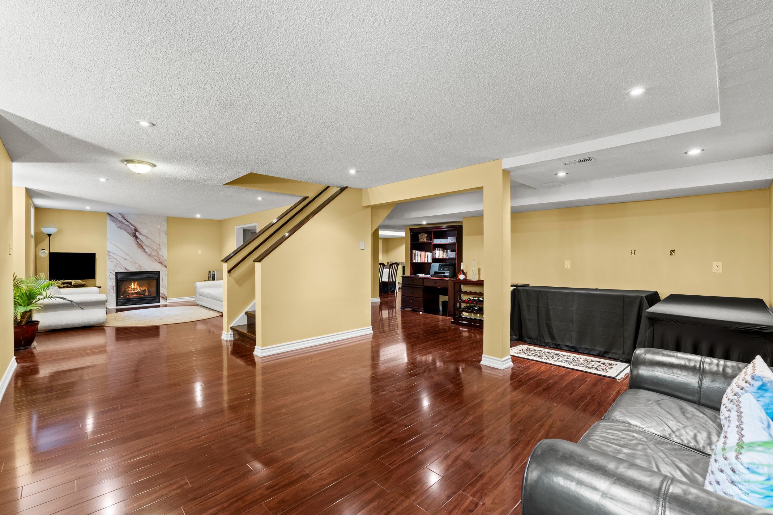 • Spacious layout with an open-concept kitchen and main floor office.