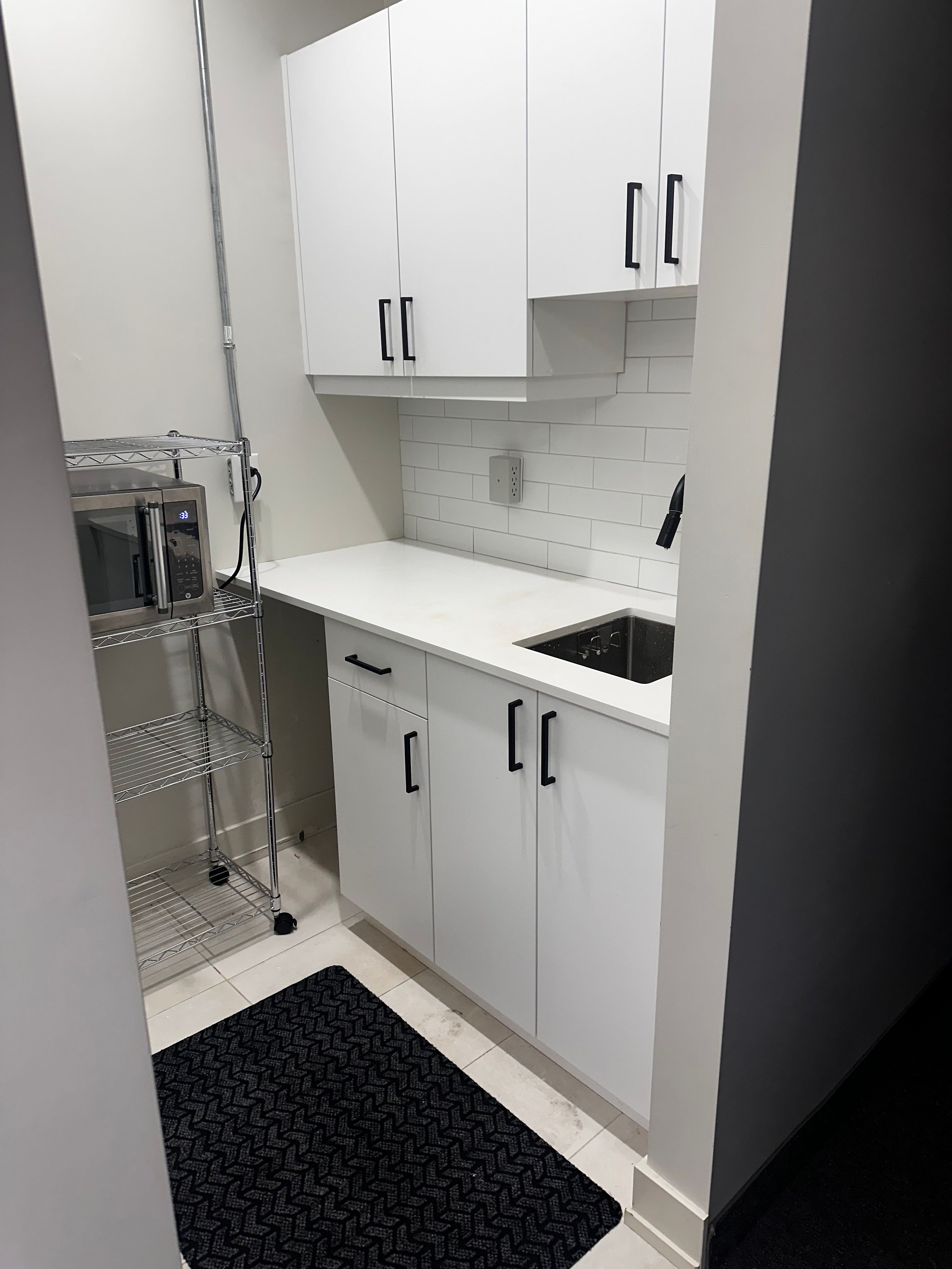 • Includes two offices, three workstations, kitchenette, and washroom.