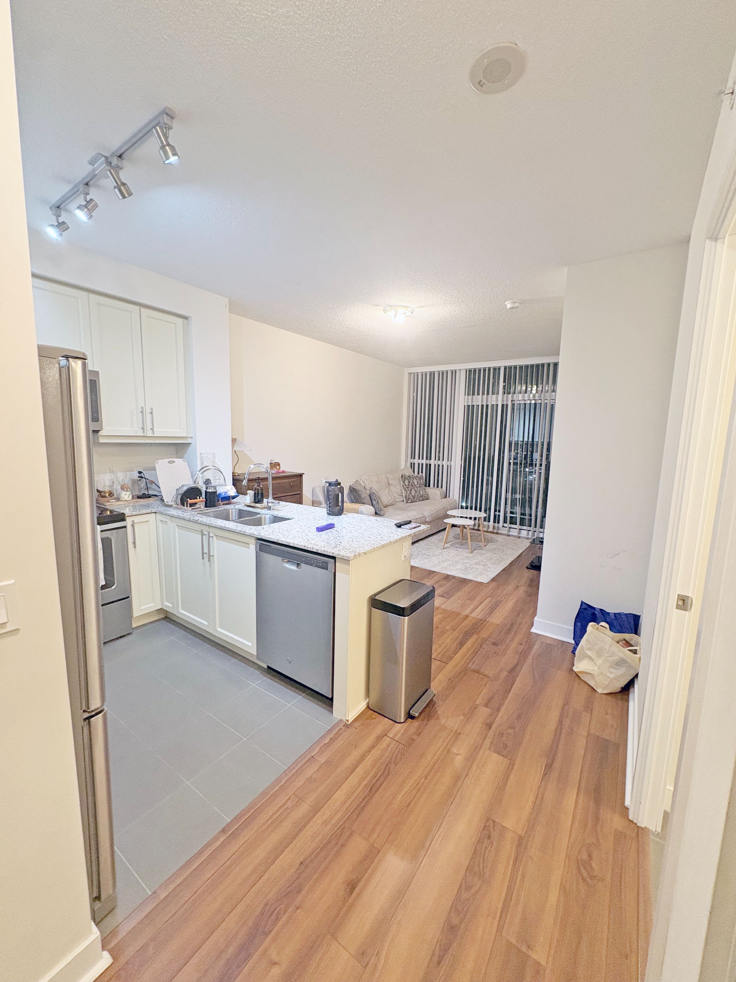 • Bright 1 + den unit with floor-to-ceiling windows and northeast views.