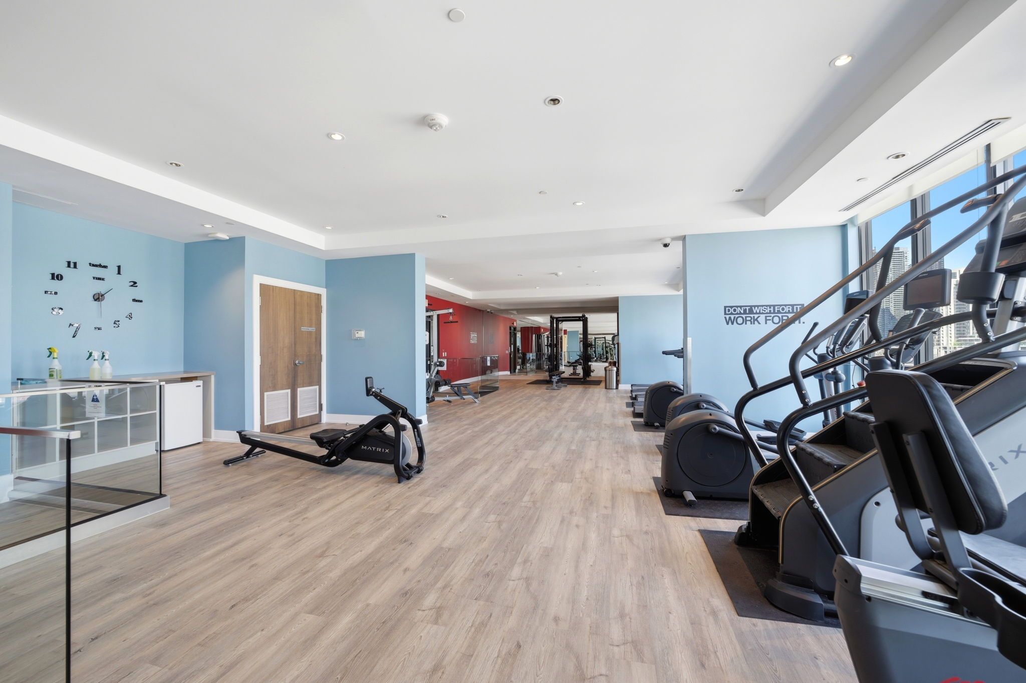 • Access to fantastic building amenities like a gym, pool, and party room.