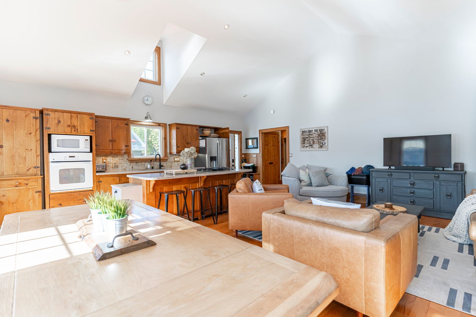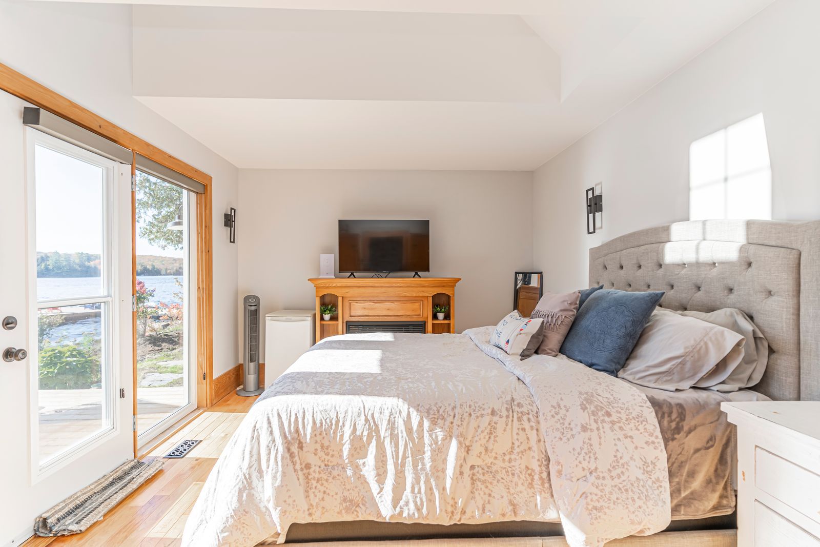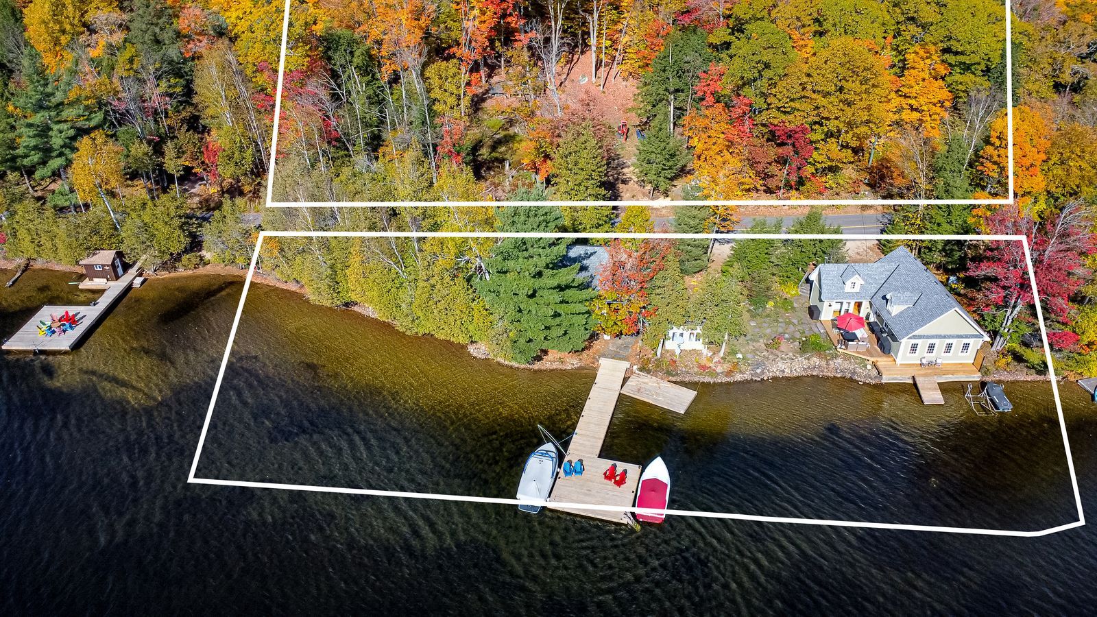 Luxurious lakefront retreat with 200 ft of shoreline, prime sw exposure, bunkie & heated/insulated guest cottage! On a coveted stretch of lake of bays, this waterfront property is set on 0. 86 acres with 200 ft of southwest-facing crystal clear shoreline, a flat lot, hard-packed sandy waterfront, no stairs to the shoreline, and the rare advantage of both walk-in entry and deeper water off the dock. Set on a year-round municipal road near dorset, huntsville, gravenhurst, bracebridge, and baysville, enjoy miles of boating with access to restaurants, grocery stores, the lcbo, robinson's hardware, ice cream, lake of bays brewery, and bigwin island. Substantially rebuilt in 2007, the main residence features an open-concept layout with cathedral ceilings, oak hardwood floors, and large windows framing panoramic lake views, along with a charming kitchen showcasing warm wood cabinetry, granite countertops, tile flooring, and a large island with seating. The primary bedroom offers separate deck access and a full wall of windows overlooking the water. Landscaped grounds present perennial gardens, granite stone steps, a crushed granite driveway with parking for 6-8 vehicles, and a cleared area for games or future landscaping. Outdoor living continues with updated two-tier decks and an oversized 500 sq ft l-shaped floating dock. Additional space includes a heated/insulated guest cottage with a living room, 2 bedrooms, and a bathroom, plus a bunkie. Modern systems include a propane high-efficiency furnace, on-demand hot water systems, a uv & filtered lake water system, heated water lines, an over-capacity septic system, foamed-in-place insulation, a bbq gas hookup, and updated drainage. An additional cleared lot across the road offers potential for a garage, future outbuilding, or extra parking. A distinctive lake of bays offering where exceptional shoreline, thoughtful design, and guest space come together in all the right ways!