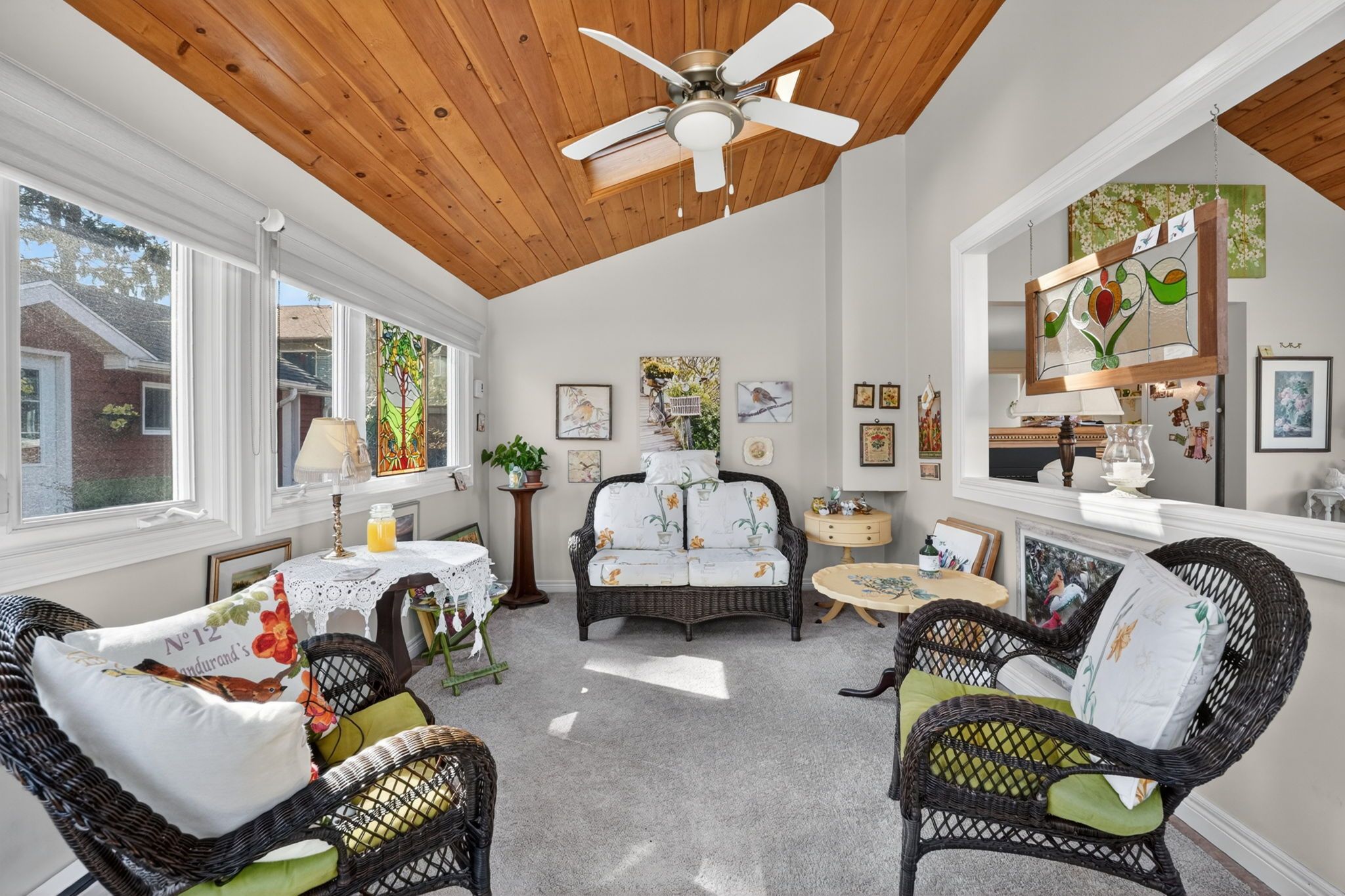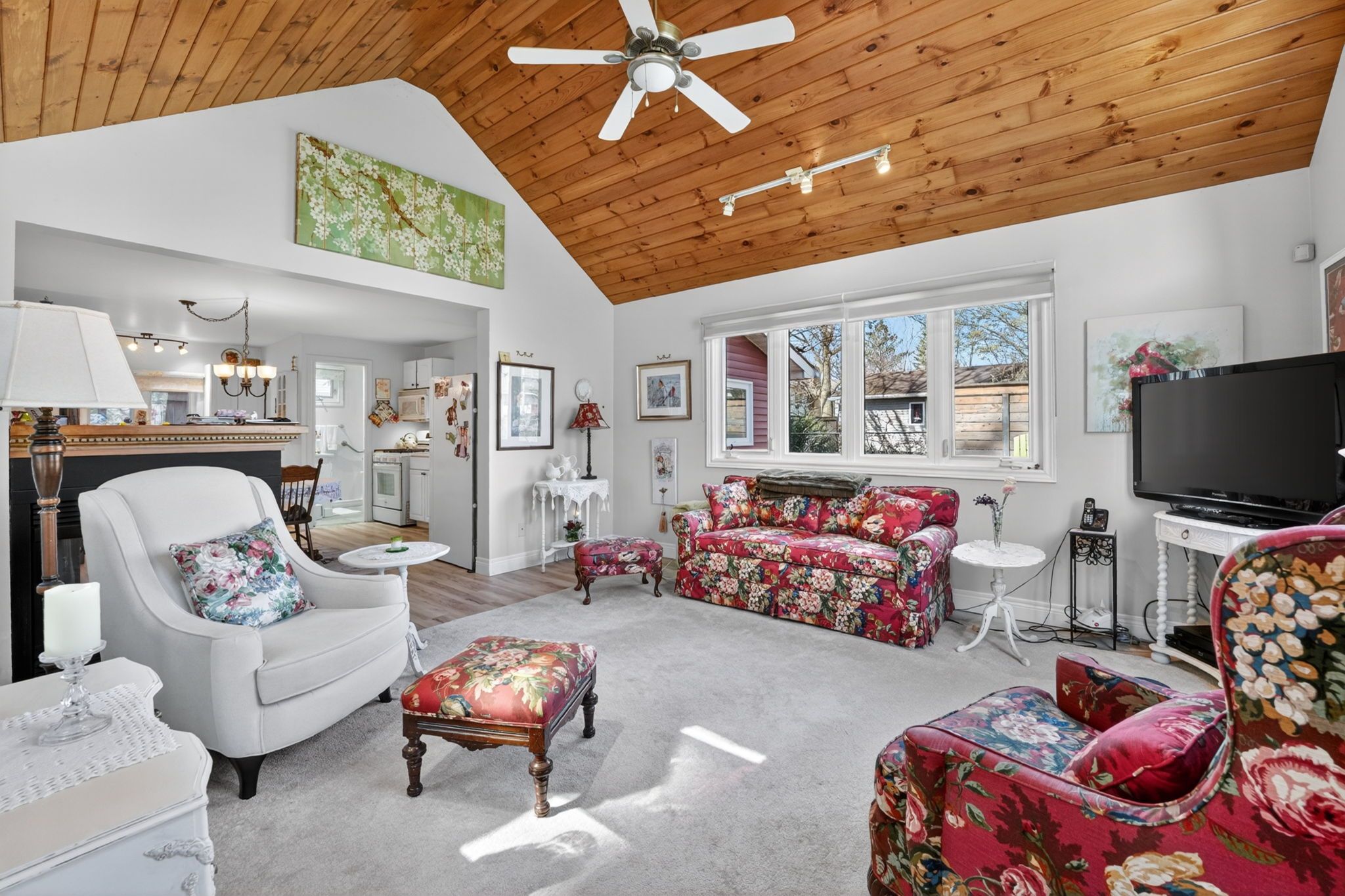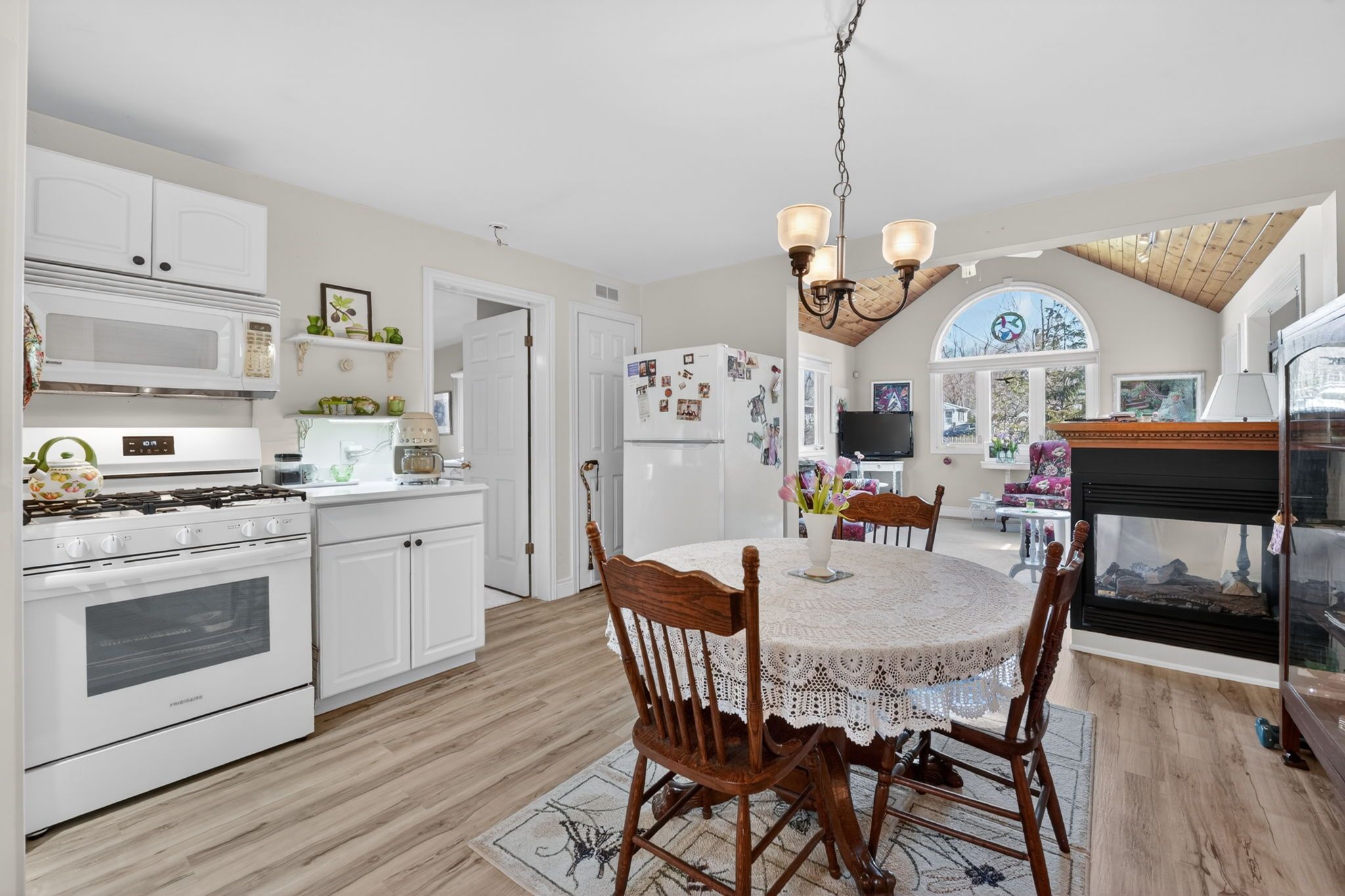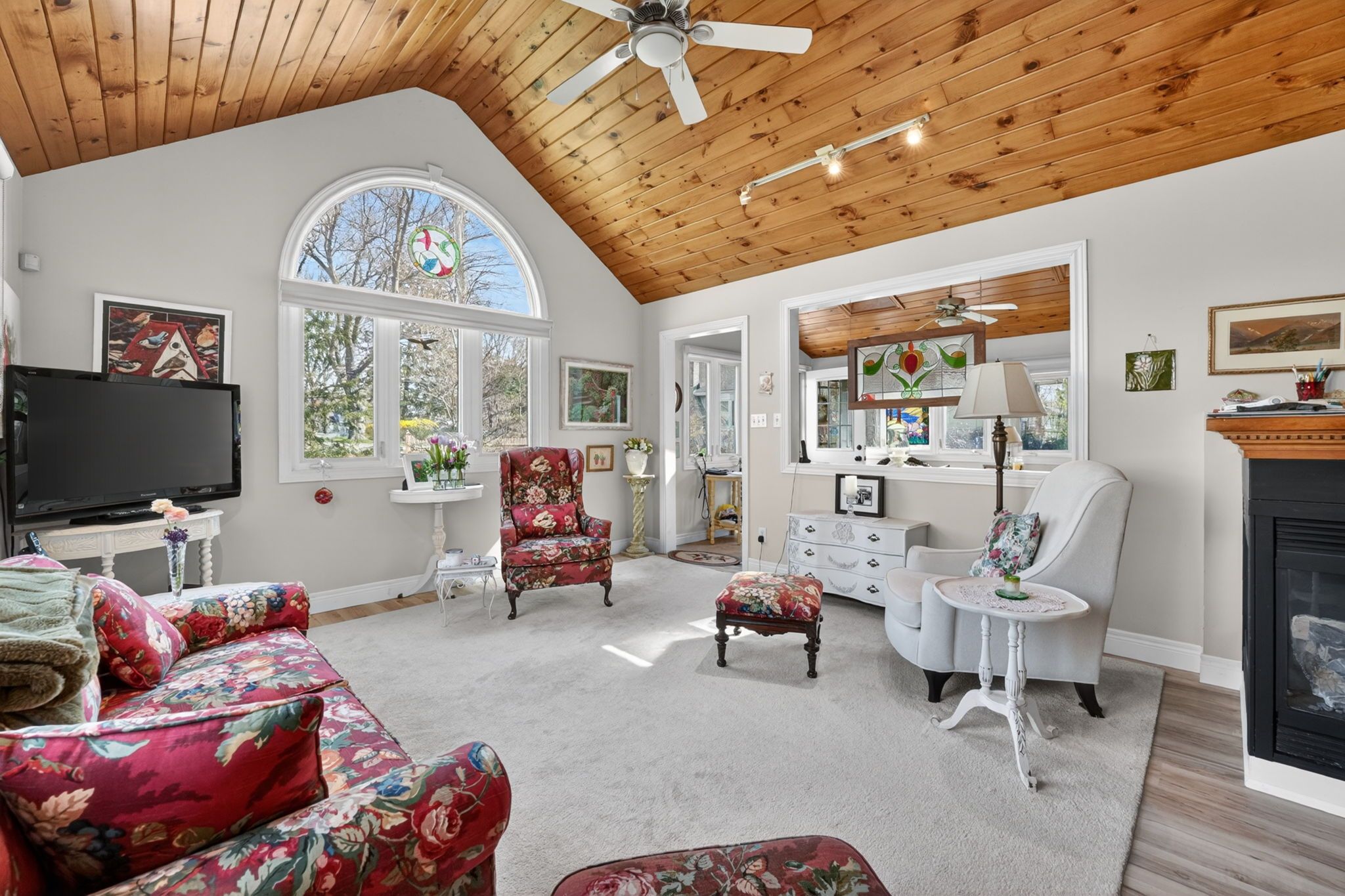 • Updated interiors with vaulted ceilings and a cozy three-sided gas fireplace.