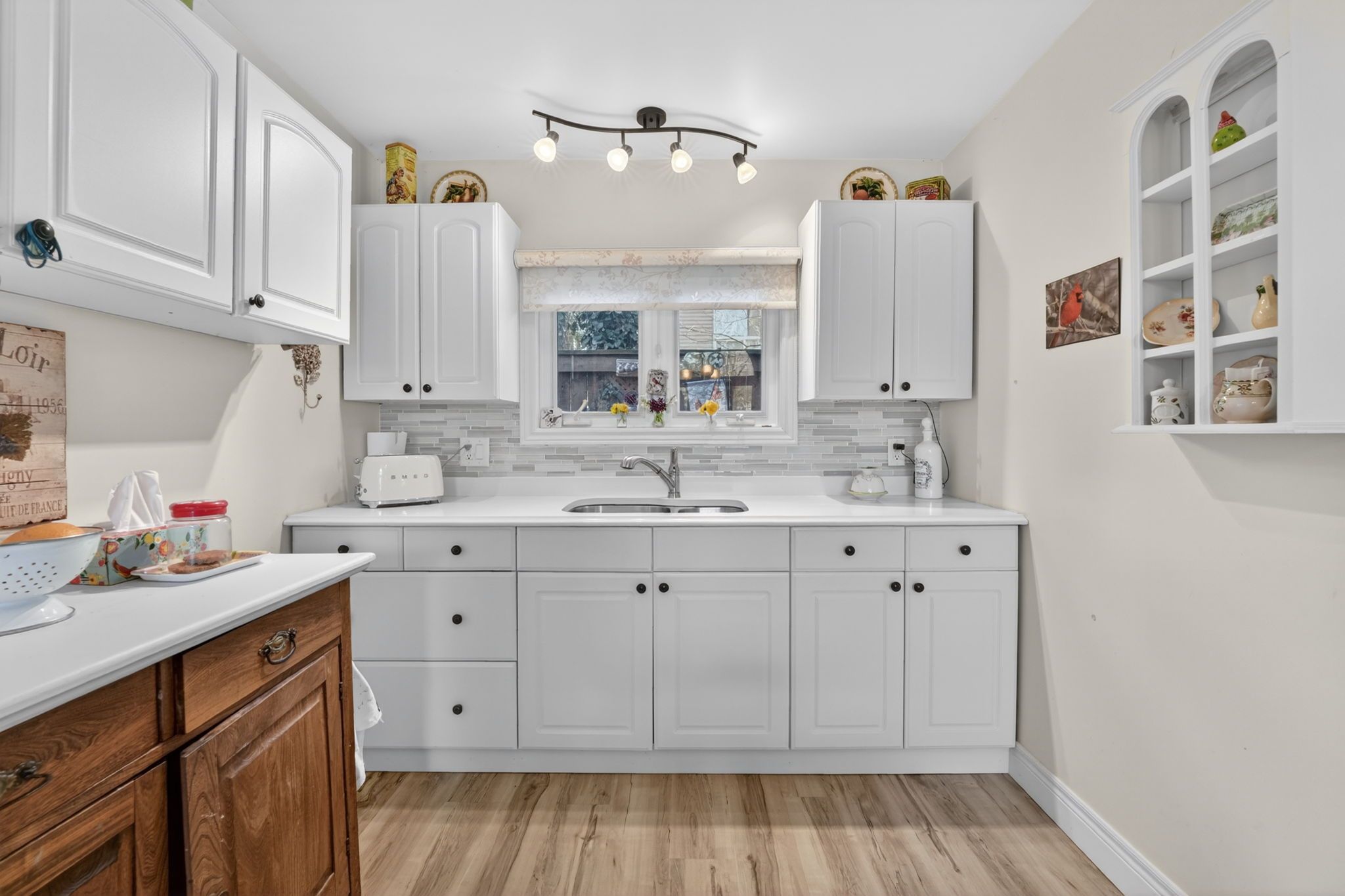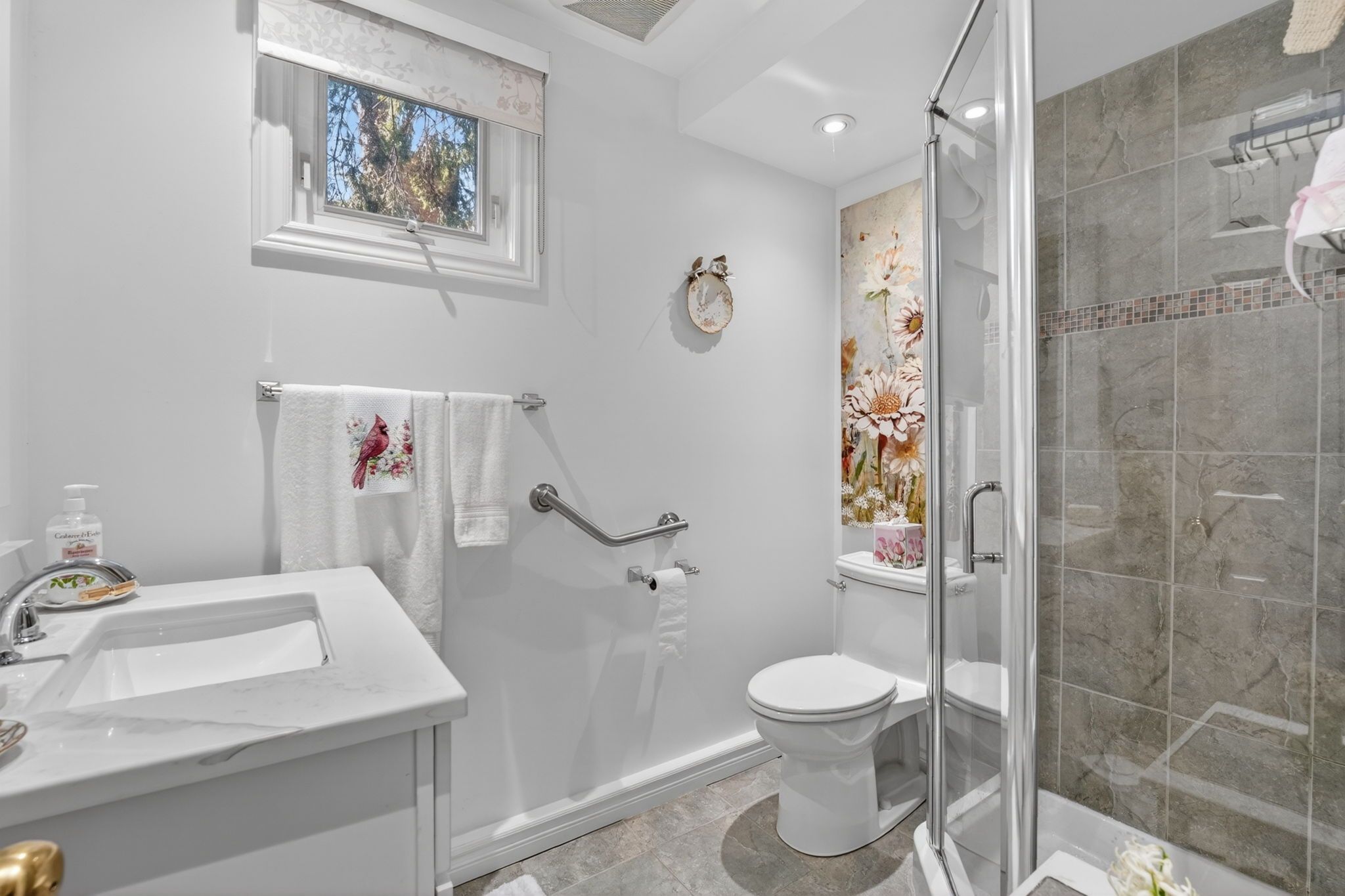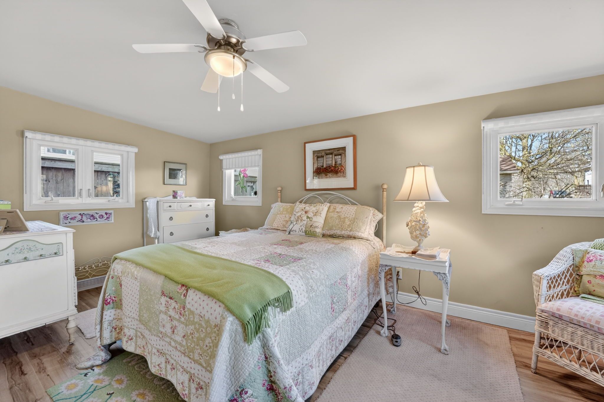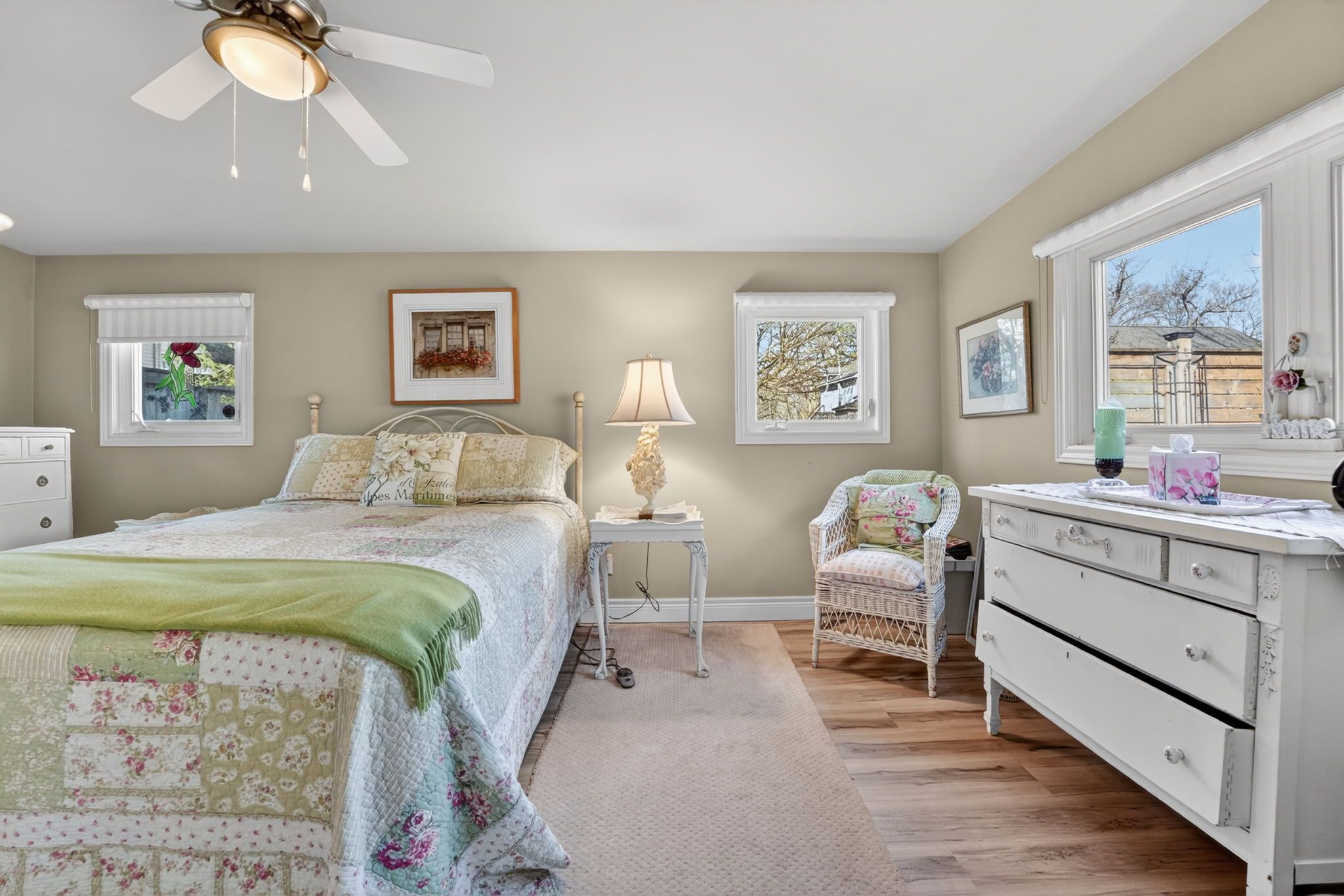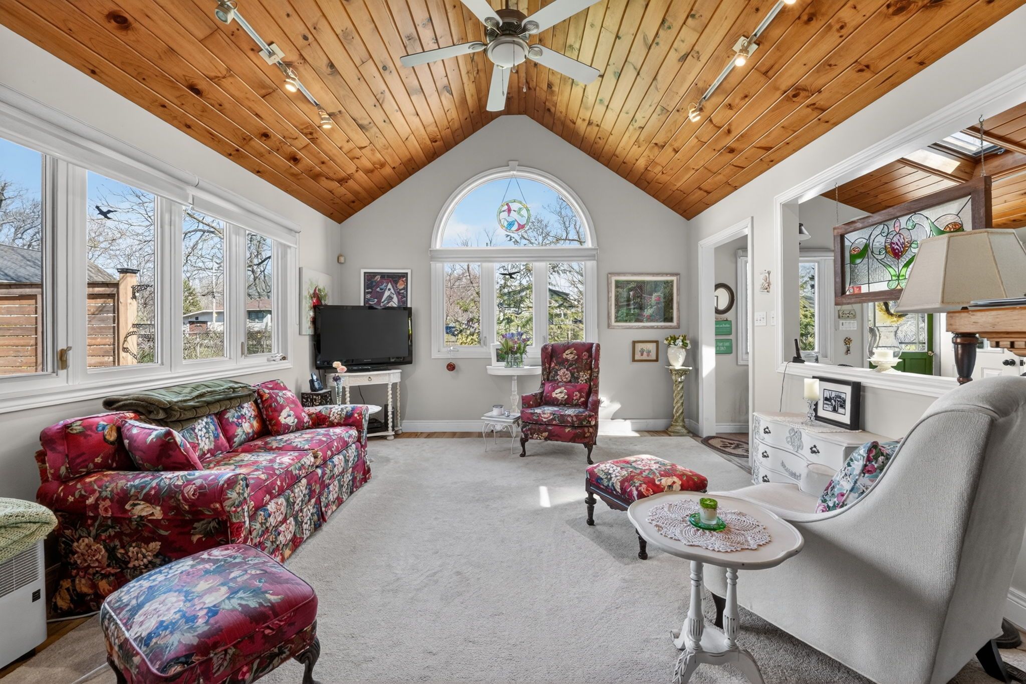 • Updated interiors with vaulted ceilings and a cozy three-sided gas fireplace.
