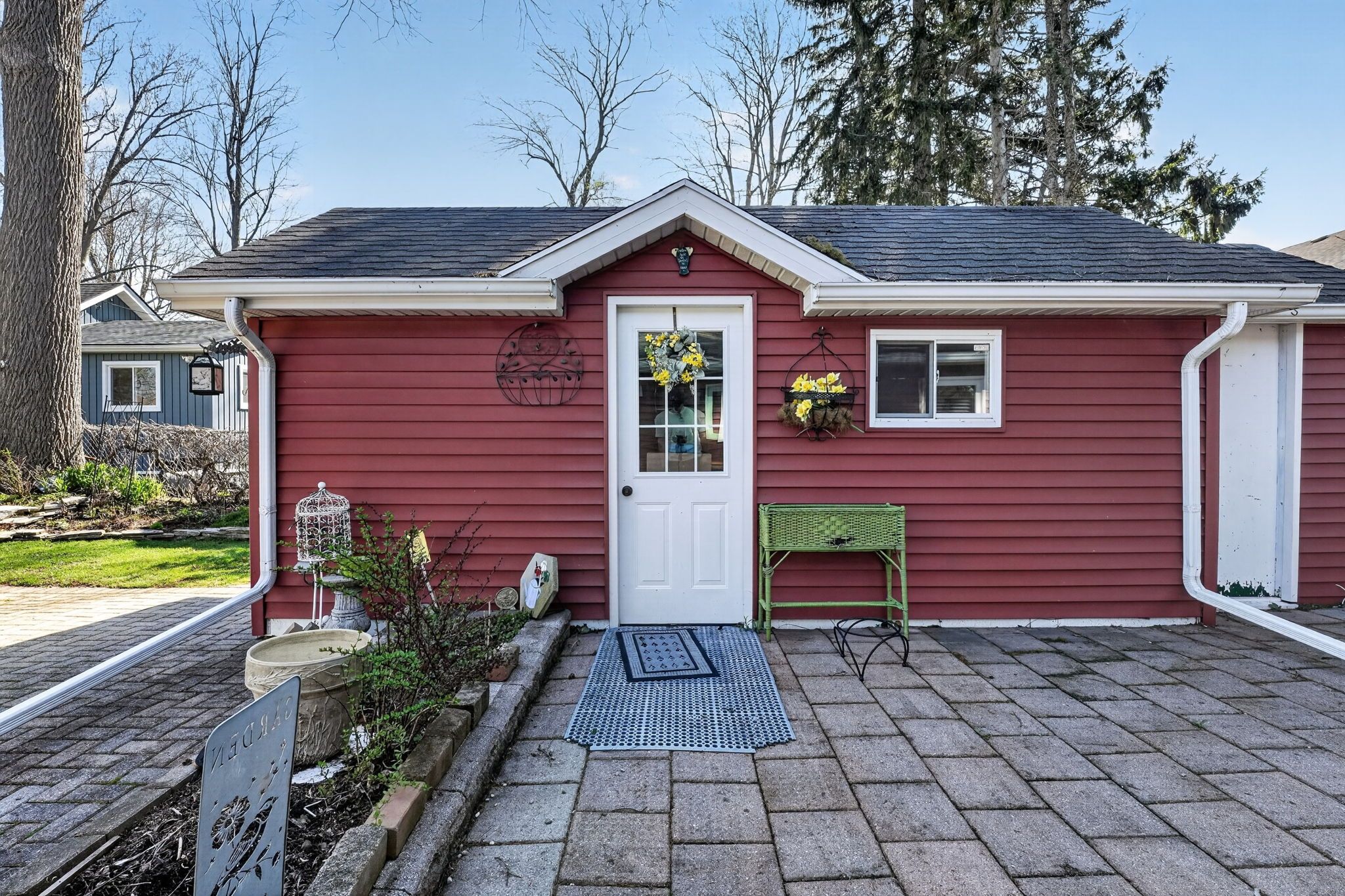 This is a well-cared-for, 1,066-square-foot bungalow located on a quiet street on the edge of crystal beach and ridgeway. Situated on a generous 78-foot by 123-foot lot, the property feels like a private park. The grounds have been thoughtfully landscaped for those who enjoy gardening, featuring a large flagstone patio for outdoor seating and a clean, interlocking brick driveway. The house itself has been entirely redone over the last 15 years, so the major maintenance is already addressed. Improvements include newer siding, windows, and updated insulation. Inside, the main living room features vaulted ceilings and a three-sided gas fireplace that adds both warmth and character. There is also a separate sitting room with 2 skylights, adding warmth and natural light, which functions well as a family room or office. Most of the flooring has been updated to modern vinyl plank, which is durable and easy to maintain. The layout is completed by two bedrooms and a clean 3-piece bathroom. In the backyard, there is a 10'x20 'detached workshop that offers more utility than a standard shed. It is fully insulated and drywalled, and currently serves as the laundry room with the washer and dryer located there. This extra space is versatile and would work well for a hobbyist, a small music studio, or a private home office. The location offers a nice balance of privacy and convenience. You are tucked away in a serene setting, yet still very close to the shops and restaurants in the village of ridgeway and the beach at crystal beach. It is a straightforward, solid home that has been lovingly maintained and is ready for its next owner.