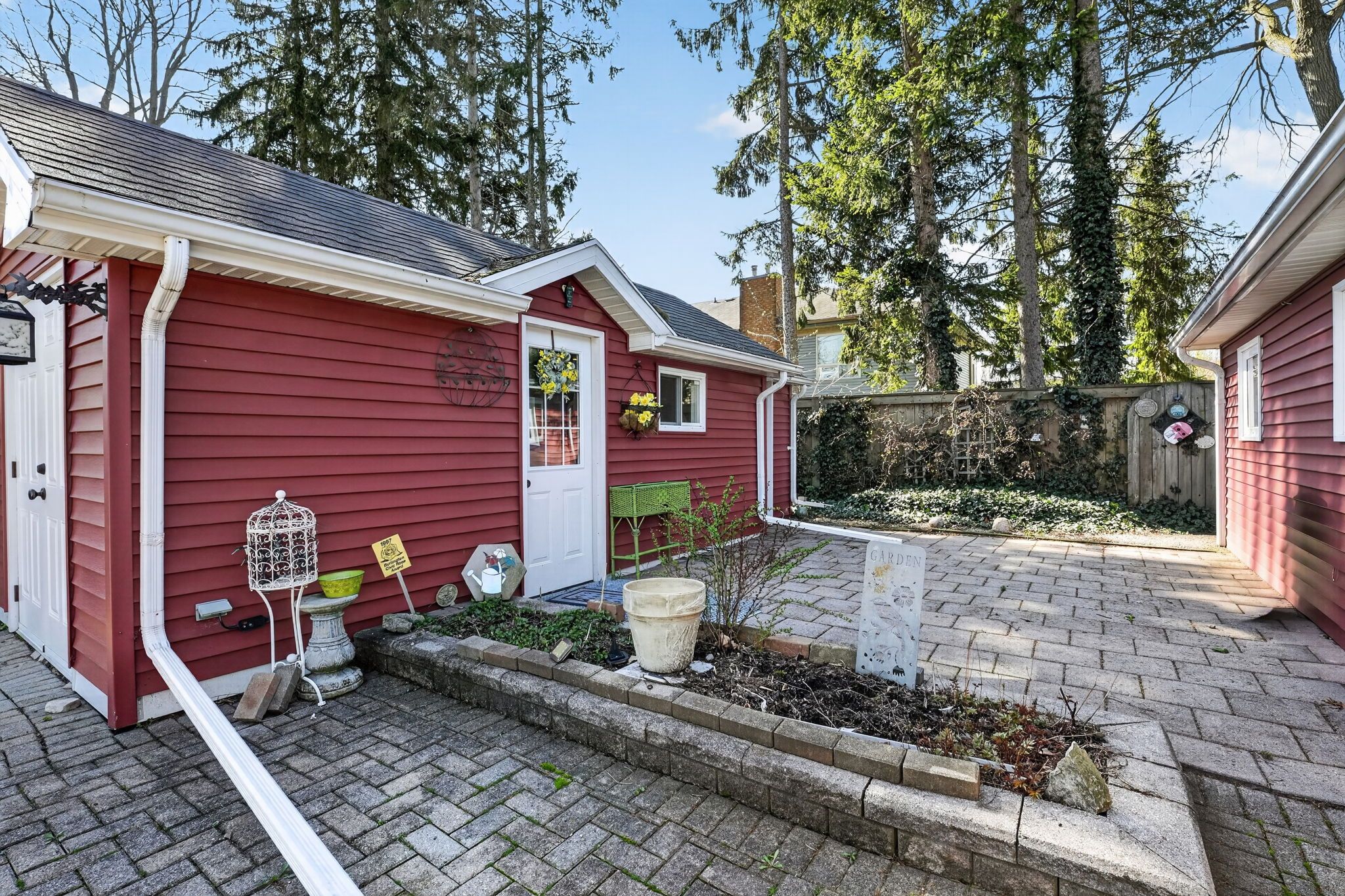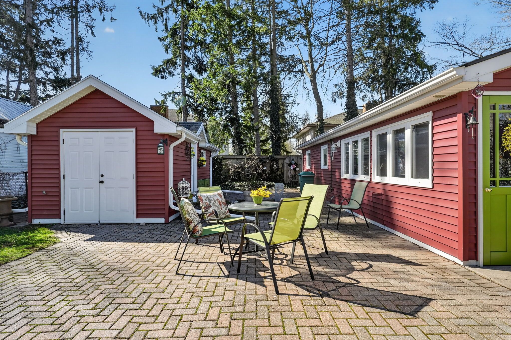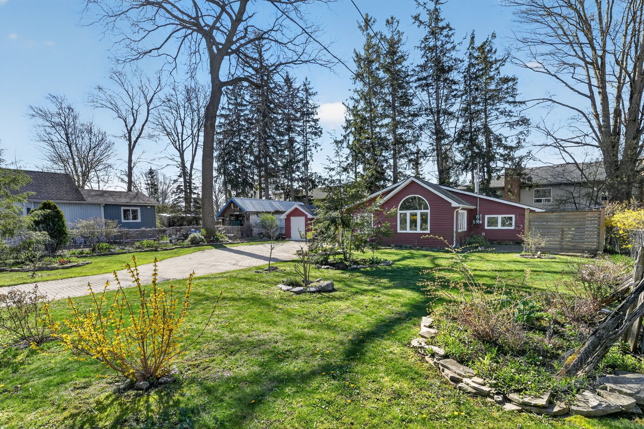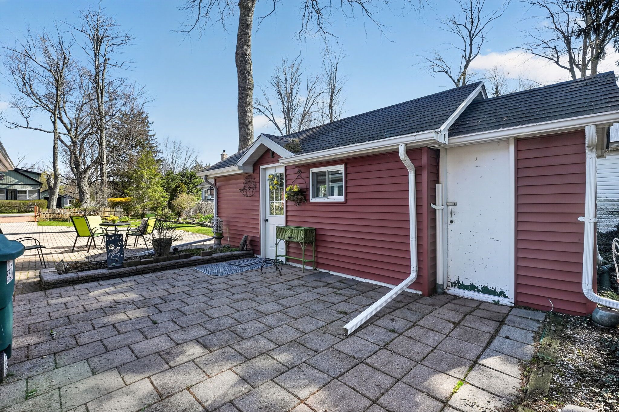 • Spacious 78x123 ft lot with landscaped grounds and a flagstone patio.