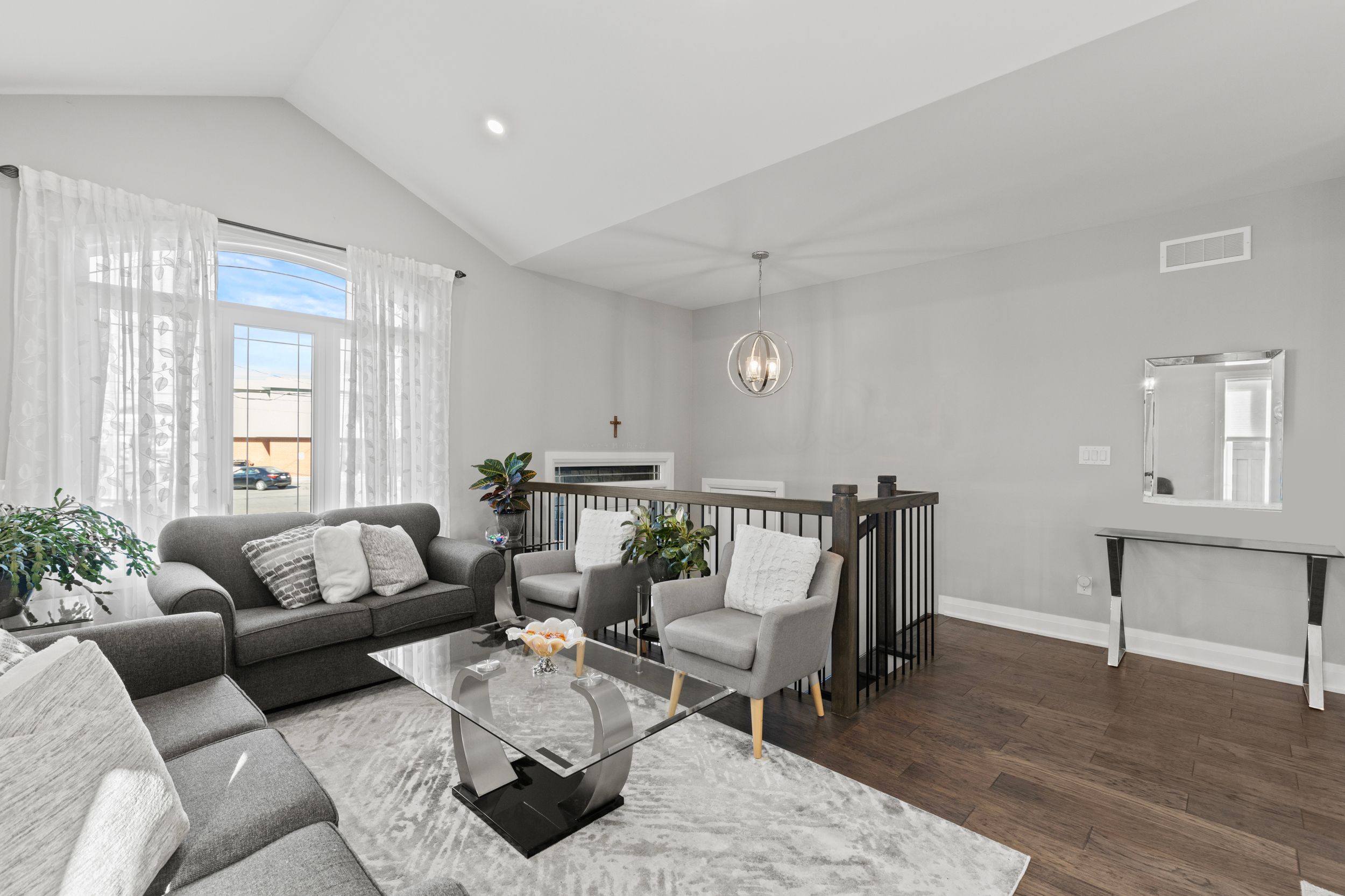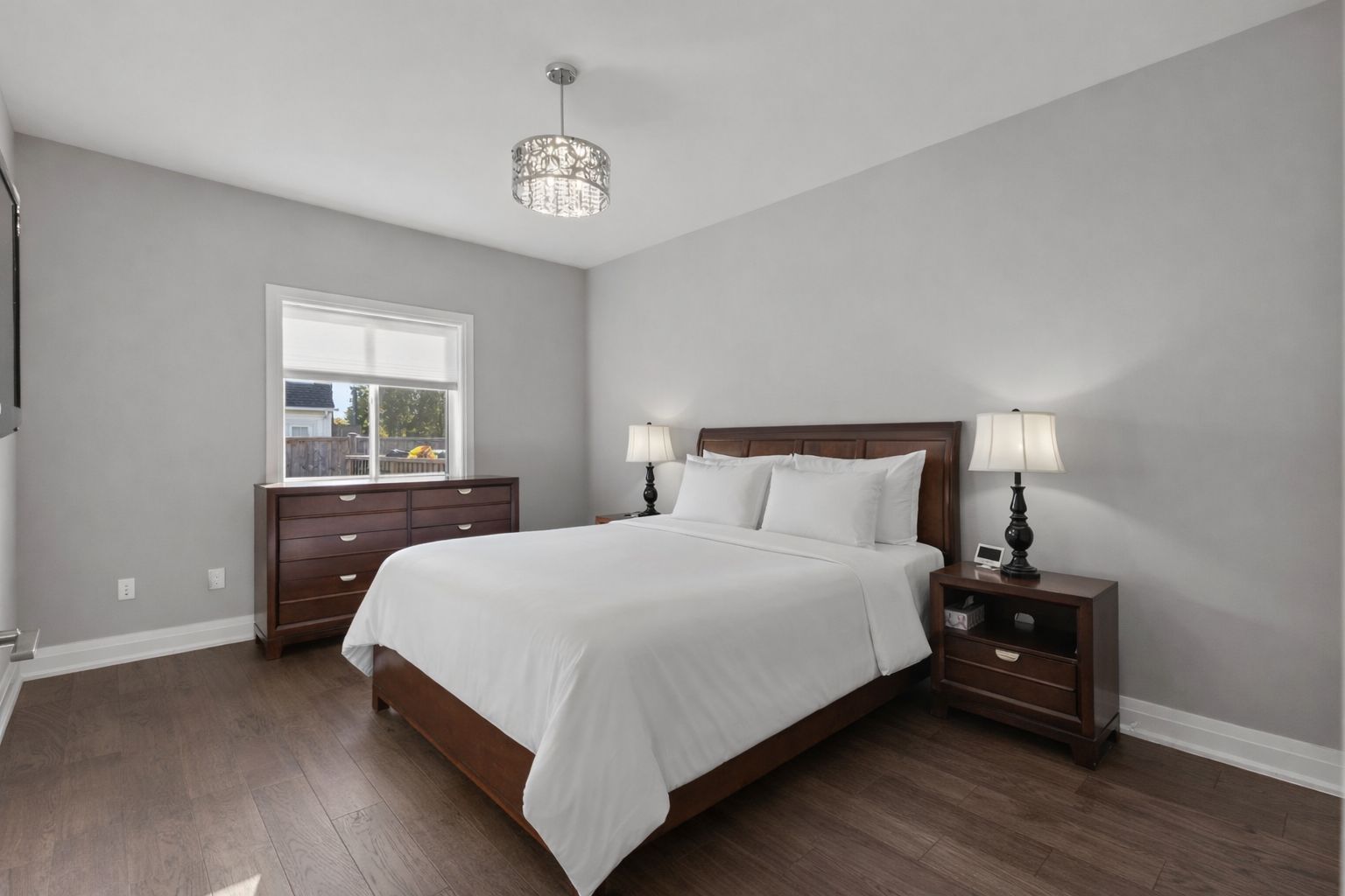 Welcome to the raised bungalow you've been waiting for! Built in 2019 this home comes equipped with 5 bedrooms, 3 bathrooms and over 2600 square feet of living space. Situated in one of north welland's most desirable neighbourhoods, you're just seconds from niagara street adding the convenience of nearby grocery stores, banks, restaurants, pharmacies, shopping, schools, parks, walking trails, and quick highway access to the entire niagara region. From the moment you arrive, pride of ownership is unmistakable. A manicured lawn, landscaped gardens, concrete driveway, and a striking stone-and-siding façade create an inviting first impression. The 1. 5 garage includes a side entrance and direct walk-in access to the basement an ideal setup for those seeking in-law potential, rental income, or investment opportunities. Step inside to an open-concept main floor filled with natural light. Cathedral ceilings in the living and dining areas create a bright, spacious feel, while the modern kitchen shines with quartz countertops, a matching backsplash, stainless-steel vent hood, and a walkout to the backyard deck perfect for outdoor cooking and entertaining. The main level features three generously sized bedrooms, each with large closets, including a primary suite complete with a private 4-piece ensuite. Quality finishes are evident throughout: engineered hardwood flooring, pot lights, upgraded trim and hardware, double-pane pollard windows, and an elegant oak staircase with steel spindles. The fully finished basement is an entertainers dream, offering 9-foot ceilings, oversized windows, a large recreation room, two additional bedrooms, a 3-piece bathroom with a tiled glass shower, plus storage, laundry, and utility space. This move-in ready home combines location, style, and functionality an incredible opportunity in north welland!