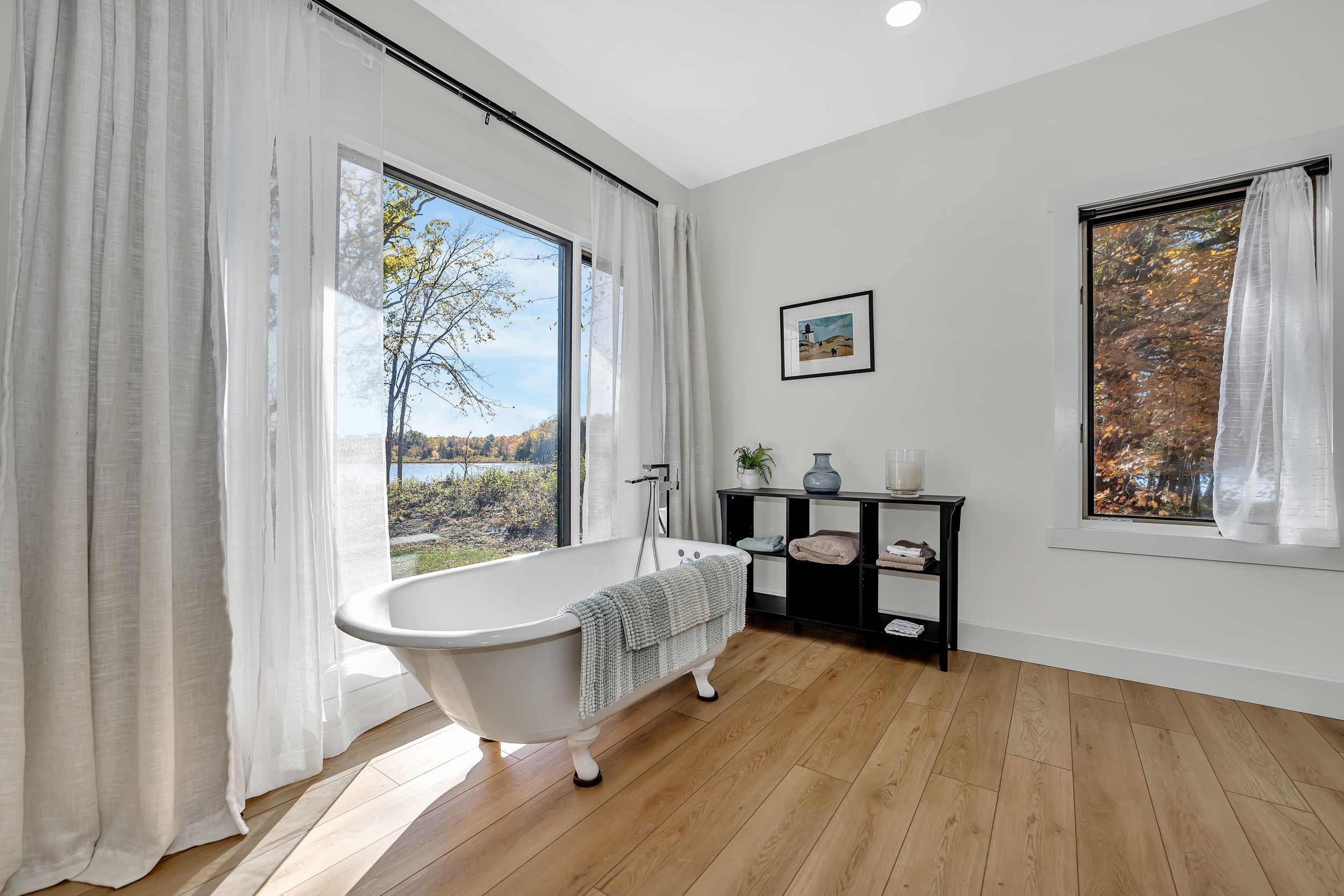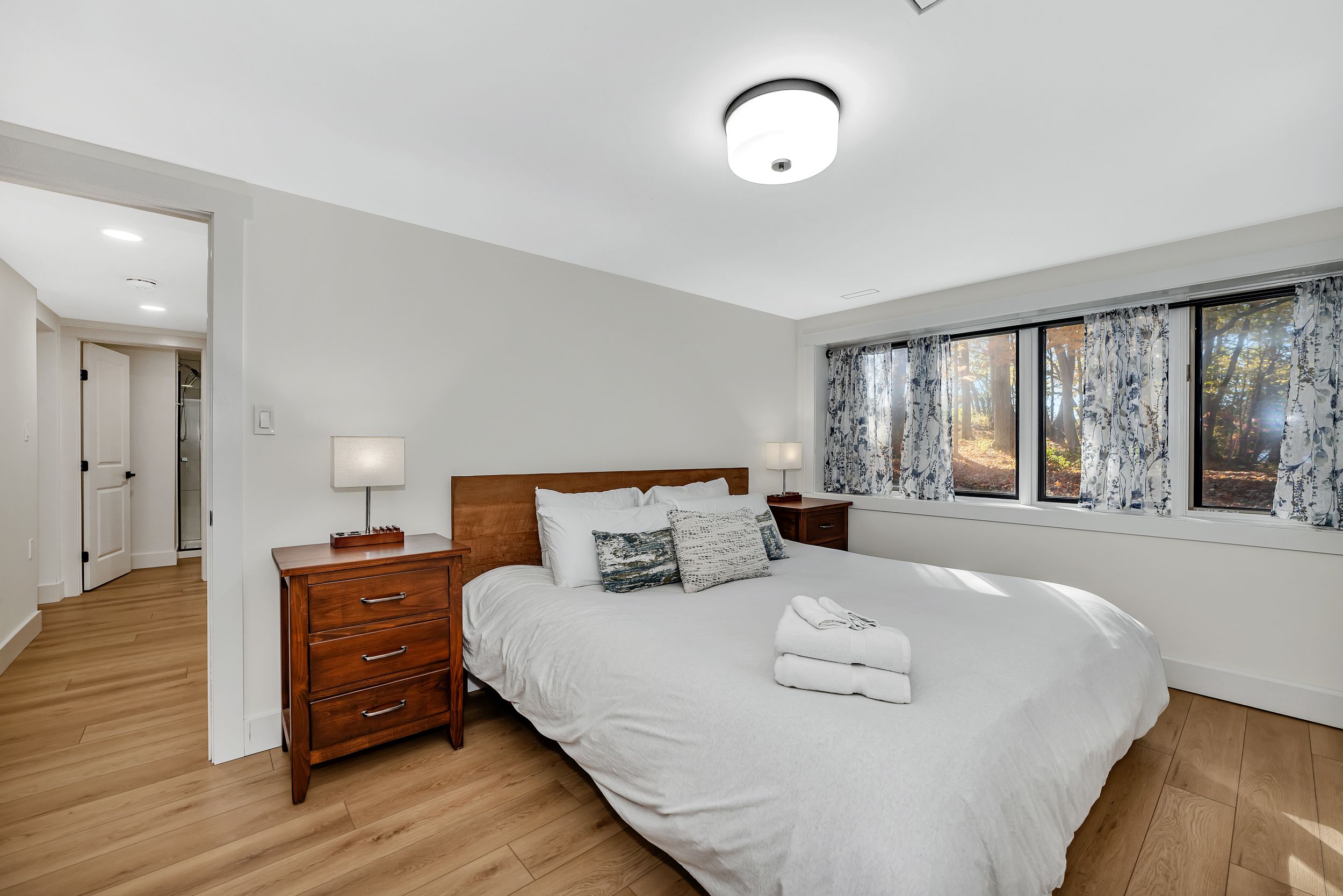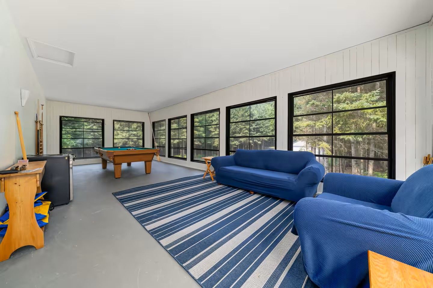 • Surrounded by trails for hiking, sledding, and skiing in a private forest setting.