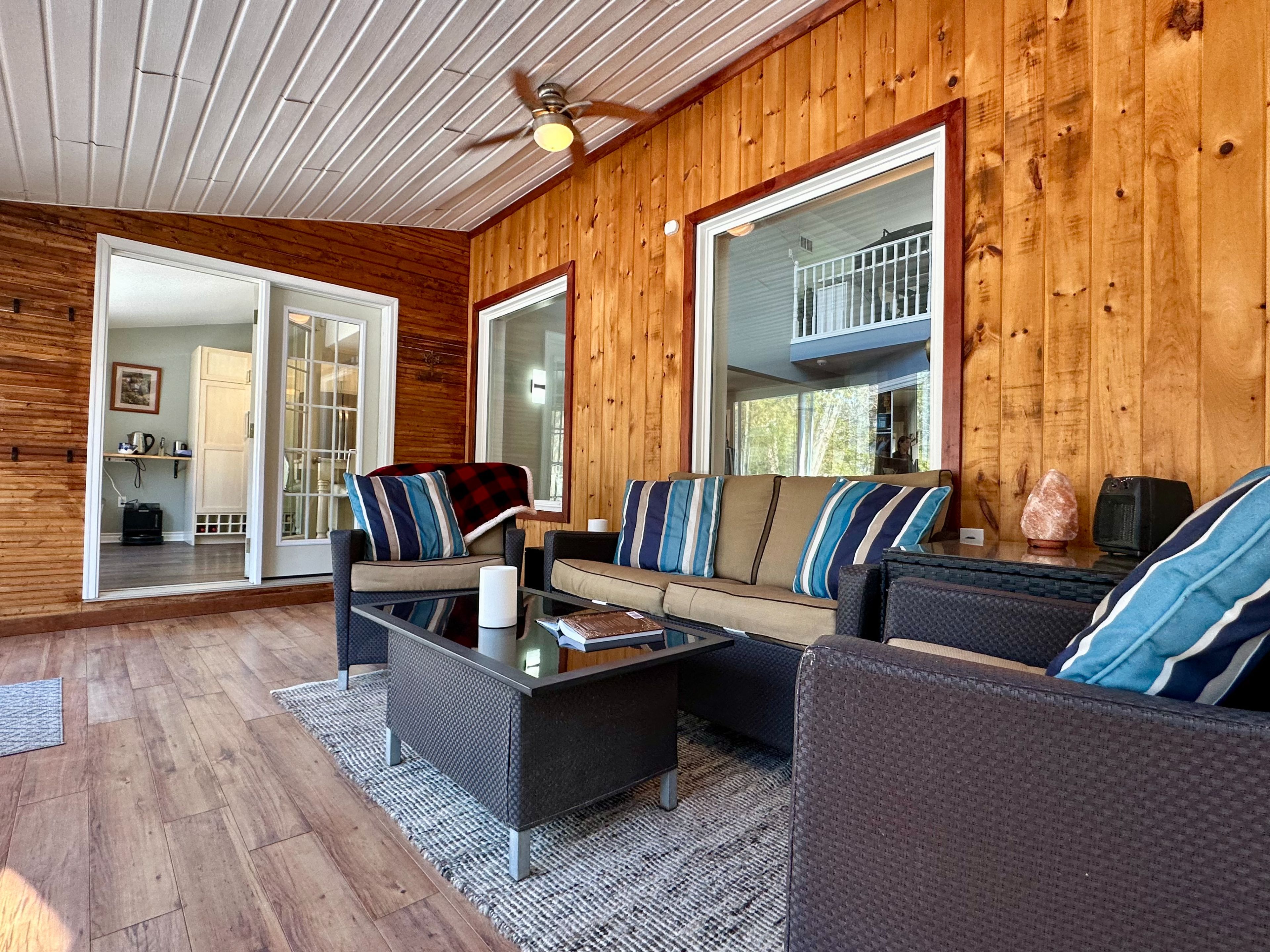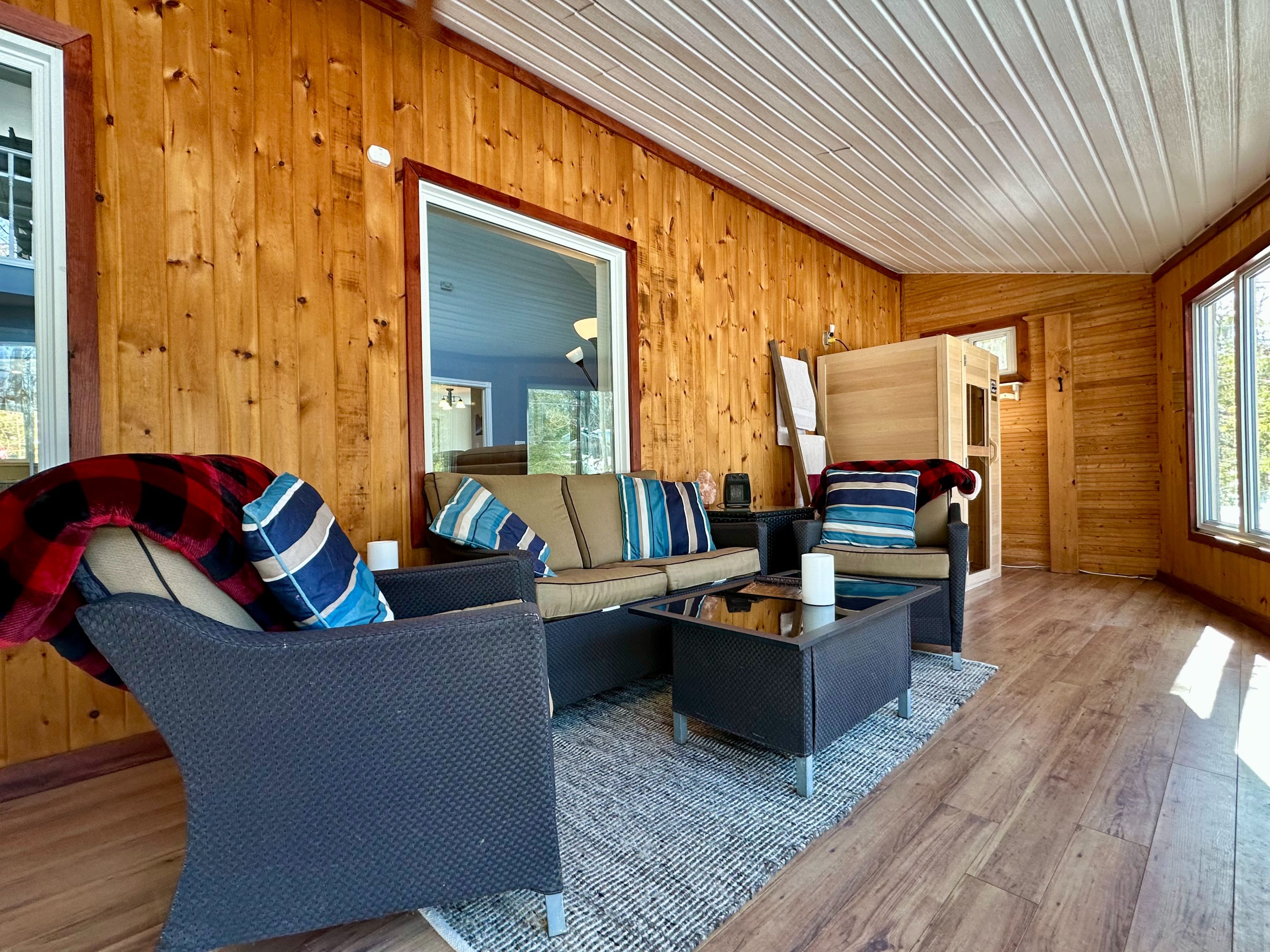 • Sunroom with river views plus a hot tub for relaxation and enjoyment.