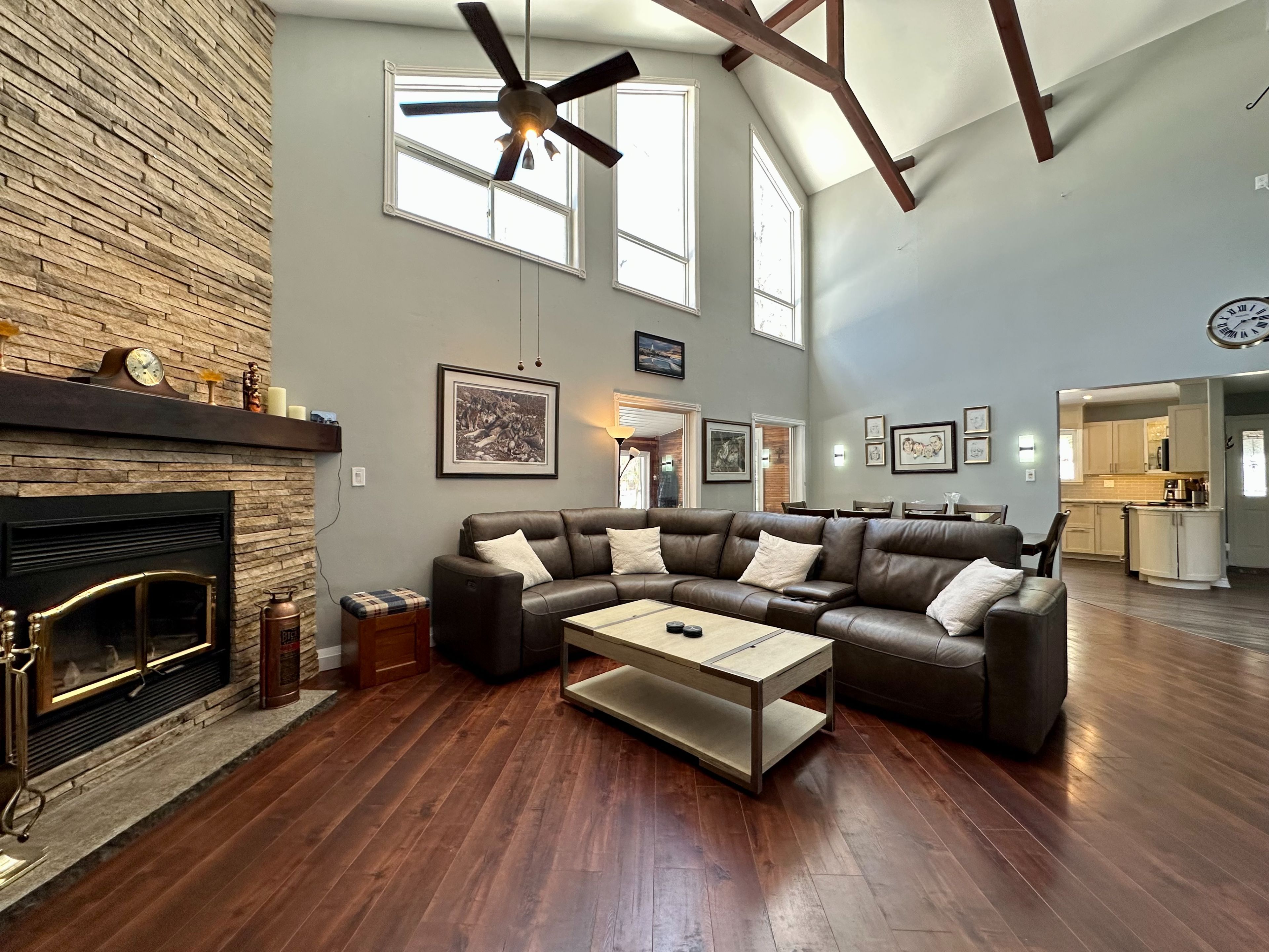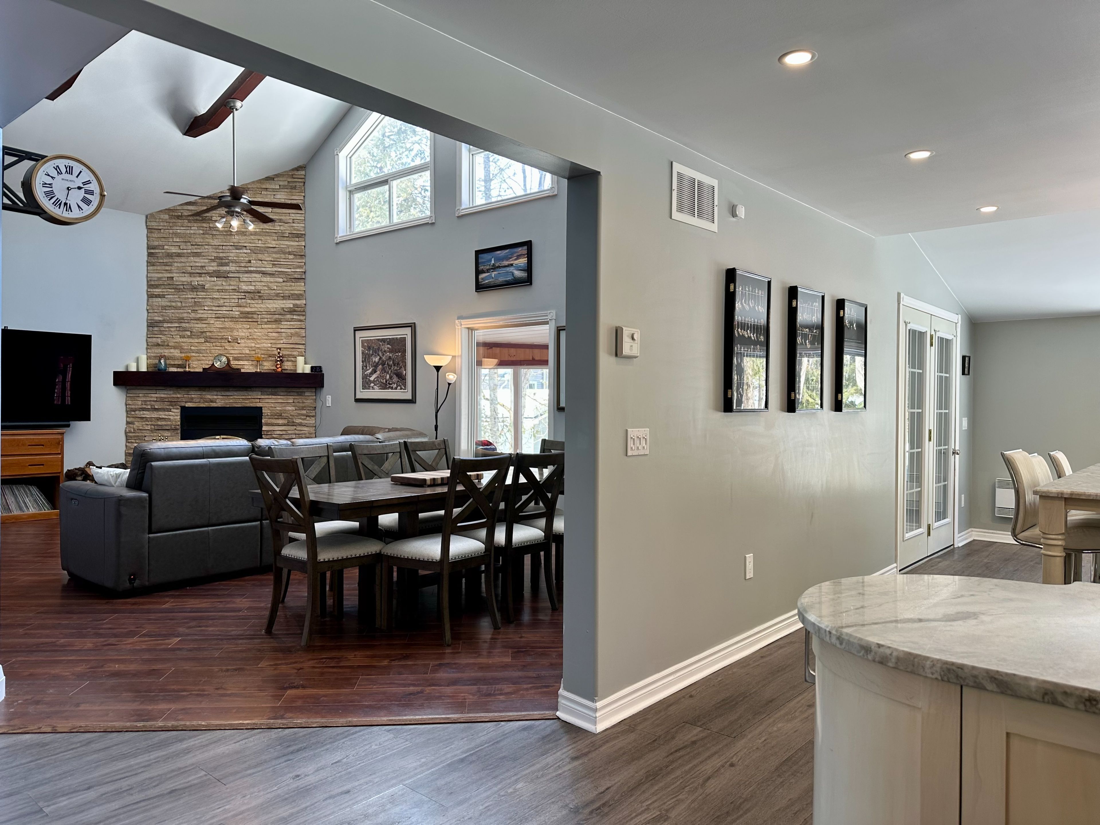 Welcome to this charming riverfront home or cottage offering 3 bedrooms and 3 bathrooms on a private riverside lot perfectly located on a year-round paved road between bobcaygeon and buckhorn. The home features vaulted ceilings, exposed beams, and a stunning stone wood-burning fireplace, creating a warm and inviting living space. The modern kitchen is designed for entertaining with granite countertops, stainless steel appliances, a large island with seating for four, and ample storage. A sunroom overlooking the river provides beautiful views, an infrared sauna and walkout access to the deck & newly installed hot tub (october 2025). The property includes a detached garage, metal carport and a heated bunkie behind the garage. Multiple storage options include a large shed with hydro beside the garage and another powered shed at the river's edge. Additional highlights include a steel roof, large mudroom entry, and a standing-height crawl space with stair access from the laundry room for convenient storage. Enjoy peace of mind with a 24 kw generac generator installed january 2026. The large, flat lot offers plenty of space to enjoy waterfront living, and oakshores marina is just steps away with a private boat launch providing access to the trent-severn waterway-making this an ideal full-time home or four-season cottage getaway.