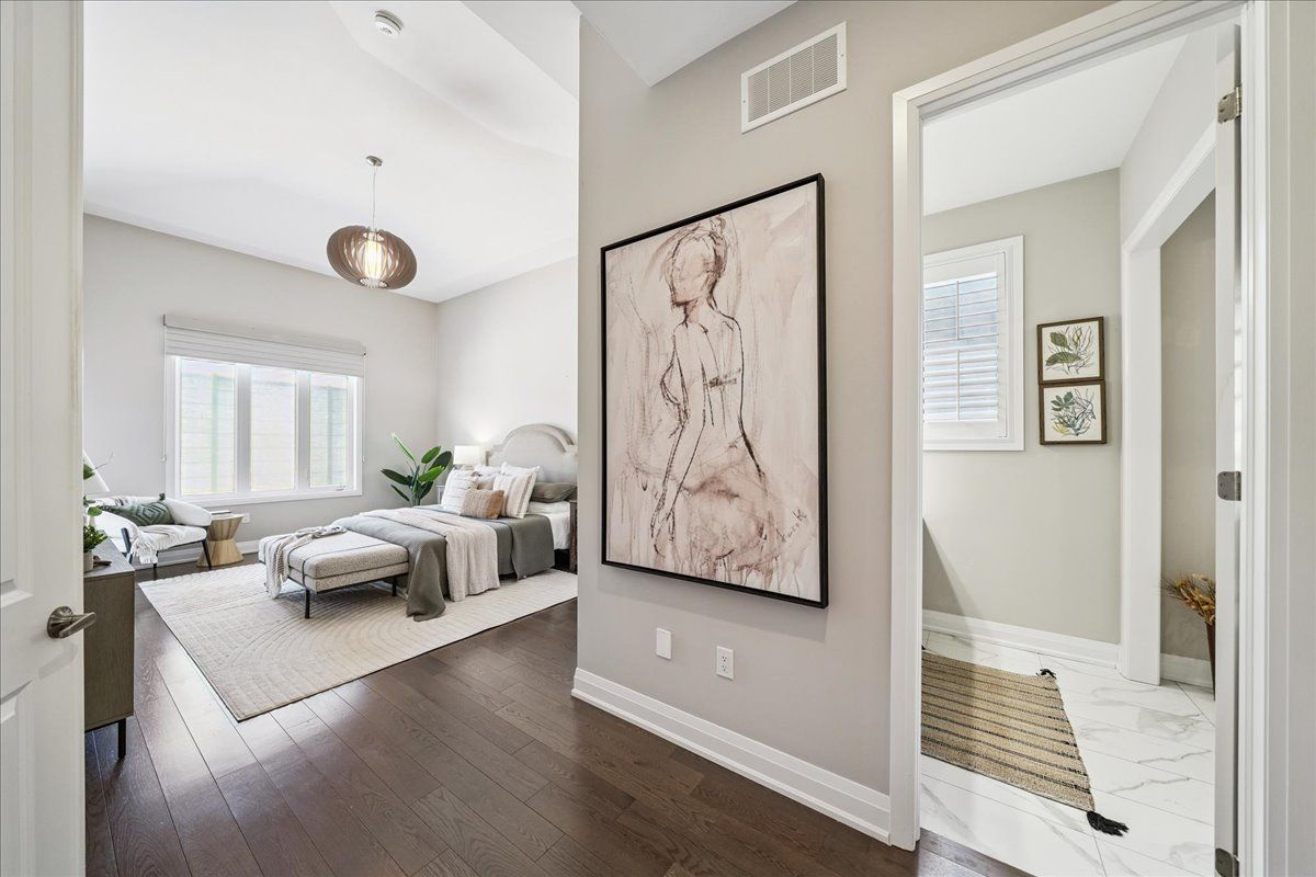 The one you've been waiting for. Welcome to a rare executive bungaloft in the prestigious rosebank community - thoughtfully designed for downsizers, families, and multi-generational living. Tucked on a quiet court and set on an oversized pie-shaped lot widening to over 100 feet, this custom build by marshall homes blends architectural elegance with everyday function. Soaring double-height ceilings elevate the foyer, living, great room, and primary suite while 10 foot ceilings continue upstairs. This ideal layout features two primary bedrooms - a luxurious main floor retreat and a private upper suite. The main floor primary offers two closets (including a walk-in), a tray ceiling, and a spa-inspired ensuite with freestanding tub, glass shower, separate toilet, and double granite vanity. At the heart of the home, the chef's kitchen showcases an impressive granite centre island, undermount sink, and premium bosch appliances including double ovens, gas cooktop, and full-depth fridge. Extended cabinetry with valance lighting, a walk-in pantry, and a servery add style and practicality. Rich oak hardwood flooring flows through most of the home. Upstairs, the second primary suite includes a walk-in closet and ensuite bath, while the third and fourth bedrooms share a jack & jill bath. A generous loft provides additional living space ideal for lounging or working from home. The expansive backyard offers excellent potential to create a true resort-style outdoor oasis. Additional highlights include an approximately 1,500 square foot unfinished basement with 5 windows and 3-piece bath rough-in, 200 amp service, and rough-ins for alarm and central vac. Steps to a notable private school, waterfront trails, and just 5 minutes to hwy 401, 398 frontier is a rare offering in rosebank combining luxury, flexibility, and location.
