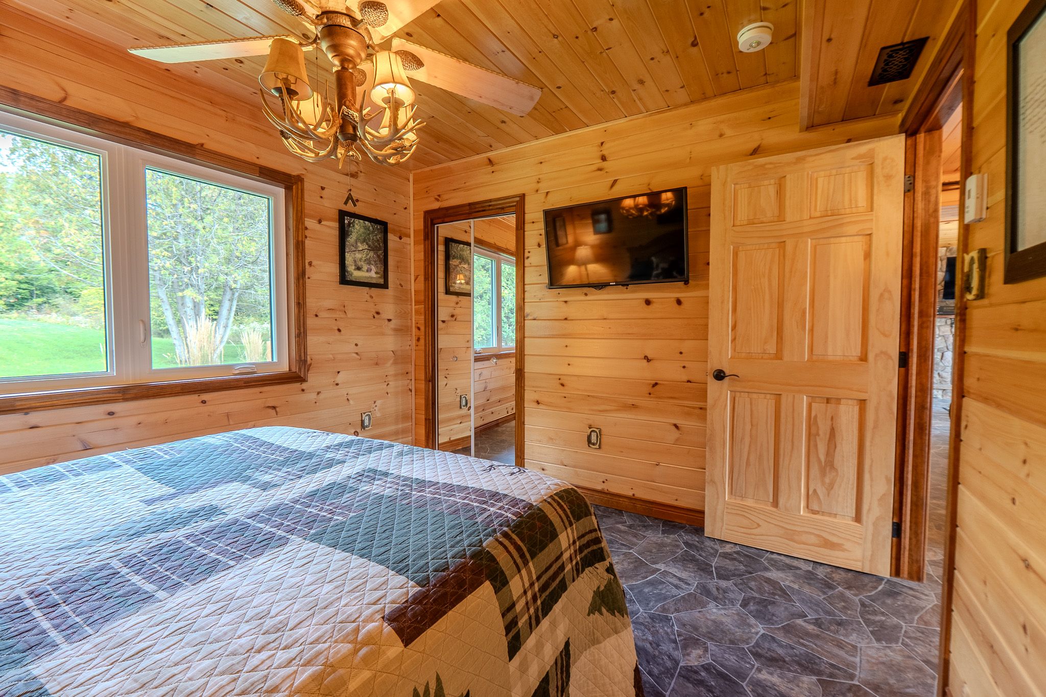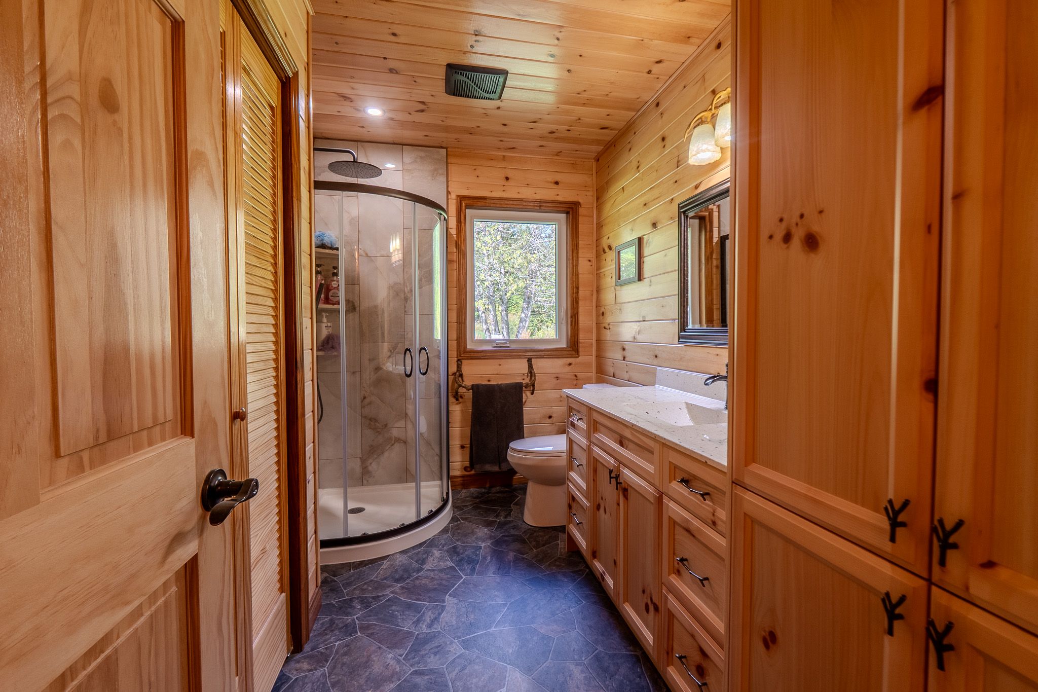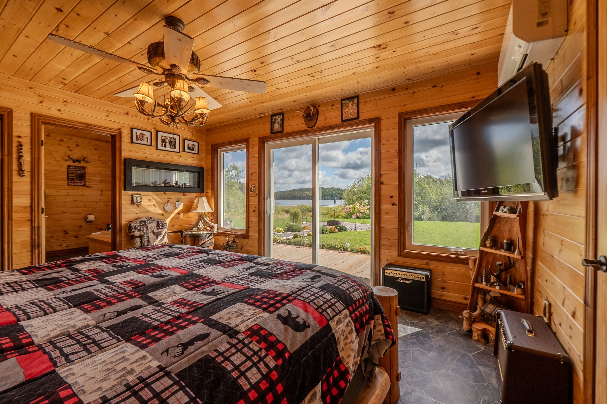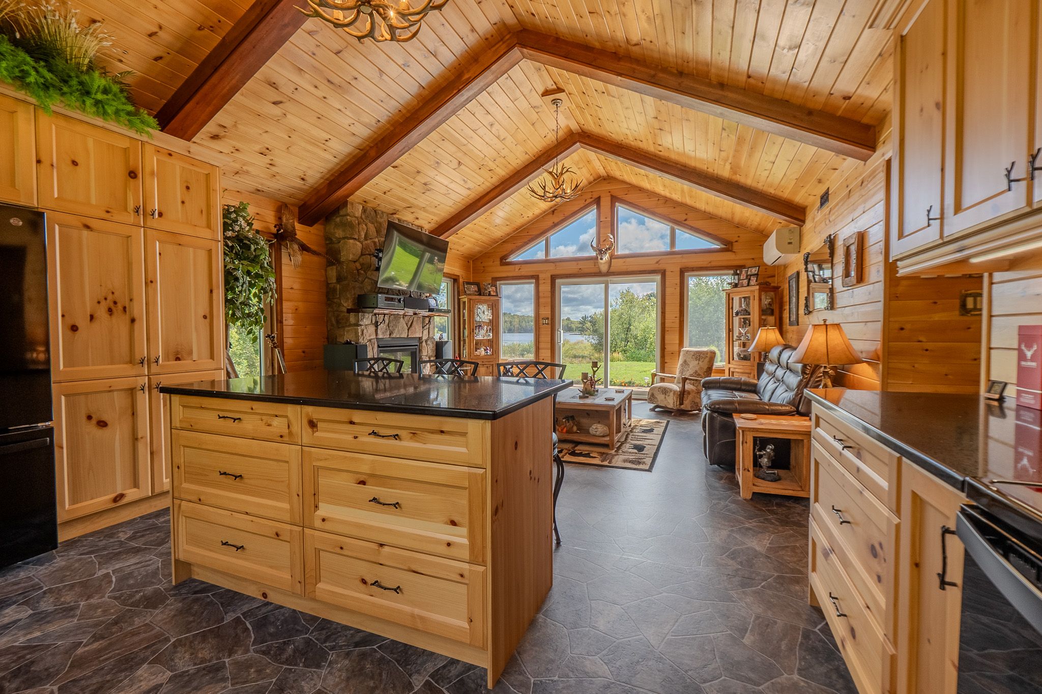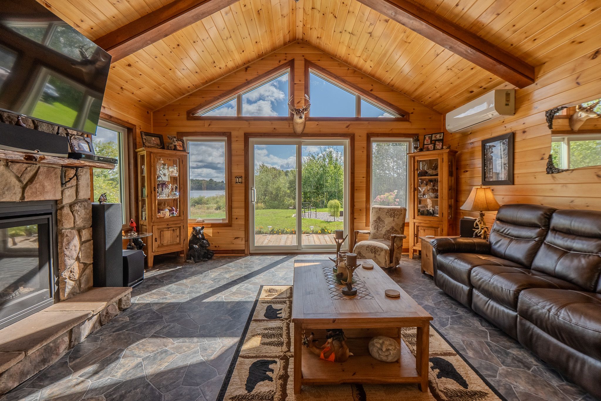 Stunning custom-built slab-on-grade home on wasi lake! Welcome to 398 mallard haven road, a 2023-built slab-on-grade home where no detail has been overlooked. Thoughtfully designed for long-term comfort and style, this two-bedroom, two-bathroom retreat offers an open and airy layout filled with natural light, cathedral ceilings, and nice finishes throughout. The heart of the home is the expansive dowdal kitchen, complete with a large island, engineered quartz countertops, and an abundance of storage-- perfect for cooking, entertaining, and everyday living. The dining/living area features bright, open spaces with walk-out access to the deck and lake views, while the primary suite offers its own walk-out with lake views, a spa-inspired ensuite with a double-sided electric fireplace for year-round ambiance, and two large walk-in closets for all your storage needs. Additional highlights include in-floor heating throughout, three heat pump wall units for added year-round comfort, and a fully heated and insulated garage. A versatile, fully finished bonus room at the back of the garage offers space for a den, office, or flex room. Outdoors, you'll find an 8x12 shed and plenty of room to enjoy your private 2. 65-acre surroundings. Set on the peaceful shores of wasi lake, this property is ideal for those who love fishing, hunting, and nature at their doorstep. With 200-amp service and already set up for gener-link, this home is both practical and private. Just 9 minutes to the heart of astorville, and 25 minutes to north bay. Truly move-in ready and designed with a quiet lifestyle in mind, this property is one that must be seen to be fully appreciated.