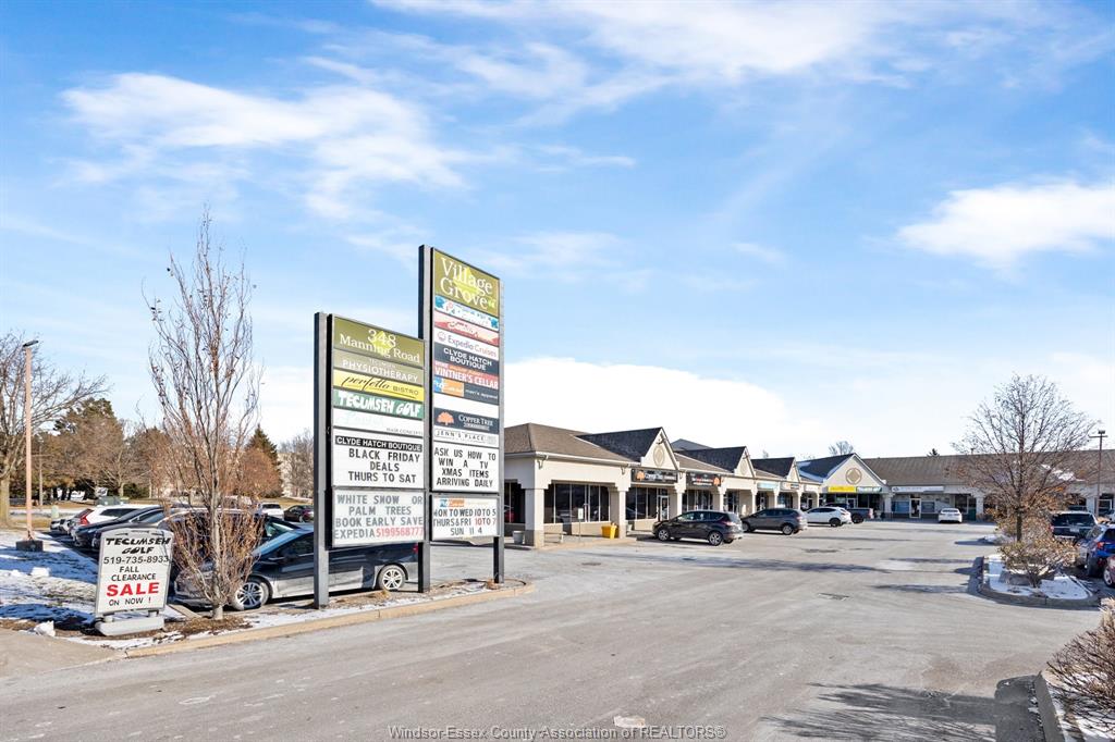 Welcome to village grove plaza in the heart of tecumseh’s manning road corridor. This rare 2,009 square foot corner pad unit offers strong exposure, high visibility, and direct access in one of the area’s most established retail destinations. Surrounded by excellent demographics and a proven mix of neighbouring tenants, the plaza delivers steady daily traffic and convenience for a wide range of users. Ample parking on site, well managed, and ideally suited for niche retail, specialty shop, office, non profit, commercial service, or ancillary medical. Available this spring. A terrific opportunity for those looking to secure a high demand location in the town of tecumseh.