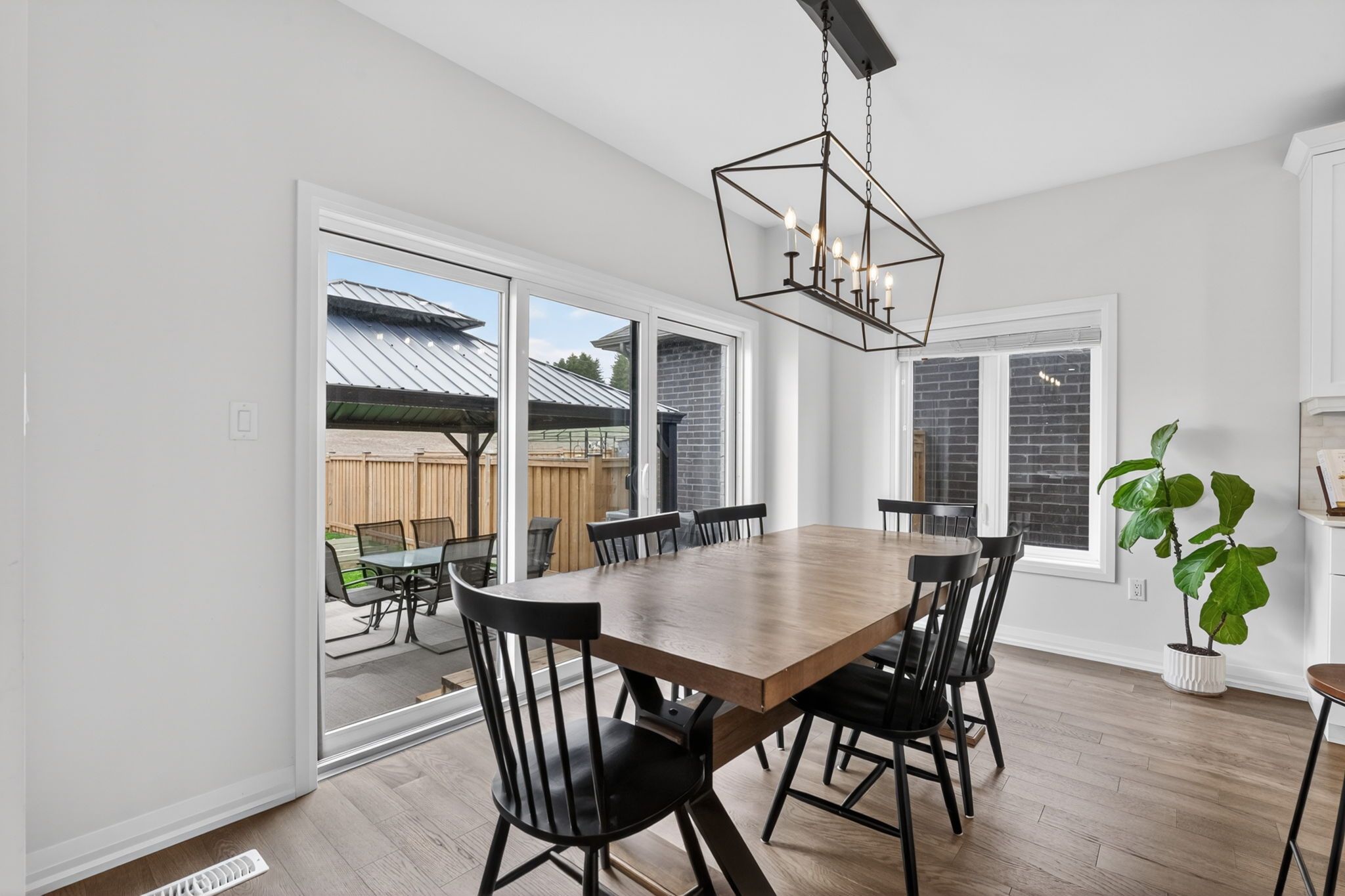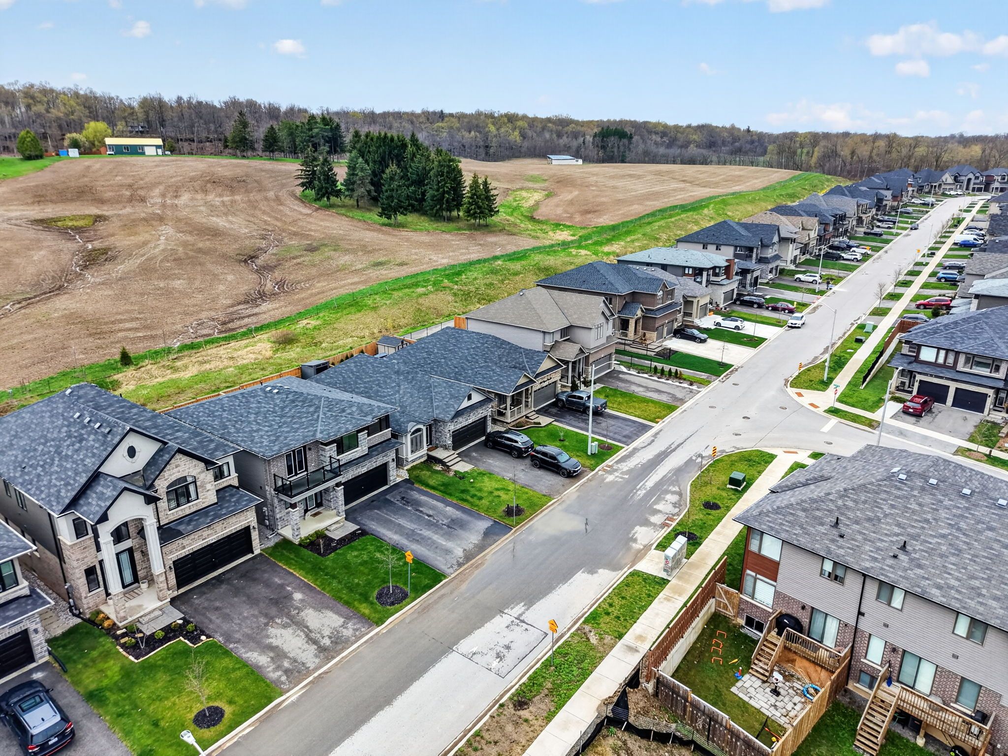 Serene views. Timeless finishes. Wine country living. This exceptional residence blends timeless modern finishes with thoughtful design, offering 4 bedrooms, 3+1 bathrooms, and a spacious layout tailored for both everyday living and elevated entertaining. The main floor features 9-ft ceilings, enhancing the bright, open-concept layout where built-in cabinetry frames a sleek gas fireplace in the stunning living room. Triple-panel sliding glass doors extend the space to a private patio, creating a seamless indoor-outdoor experience backing on to complete privacy. The kitchen is equally impressive, featuring quartz countertops, an eye-catching backsplash, a gas range with pot filler, and a convenient corner pantry. A large island overlooks the living and dining areas, all illuminated by a wall of windows that fills the home with natural light and makes for a fantastic space to entertain friends and family. Up stairs, the expansive primary suite is perfectly positioned to take in tranquil farmland views, complete with a walk-in closet and an ensuite featuring a glass walk-in shower. All bedrooms are generously sized and include their own walk-in closets. A secondary bedroom with a walkout balcony shares a jack-and-jill bathroom with the adjoining bedroom, while upper-level laundry adds everyday convenience. Outdoors, the backyard offers a perfect balance of structure and open space, featuring a 23' x 16' concrete patio ideal for entertaining, surrounded by green space and complete privacy with no rear neighbours-just uninterrupted farmland views. Set just minutes from niagara's renowned wineries, scenic trails, and charming parks, this home offers a lifestyle defined by privacy and beauty.