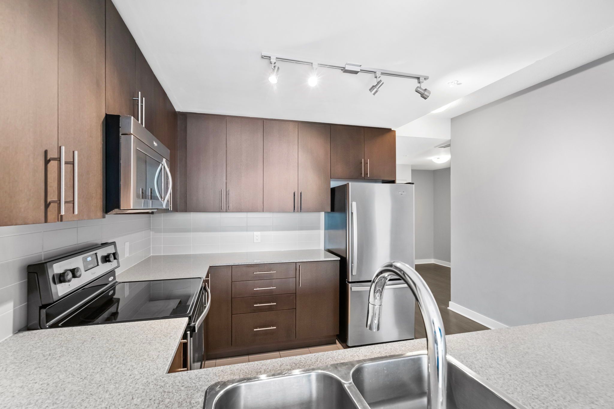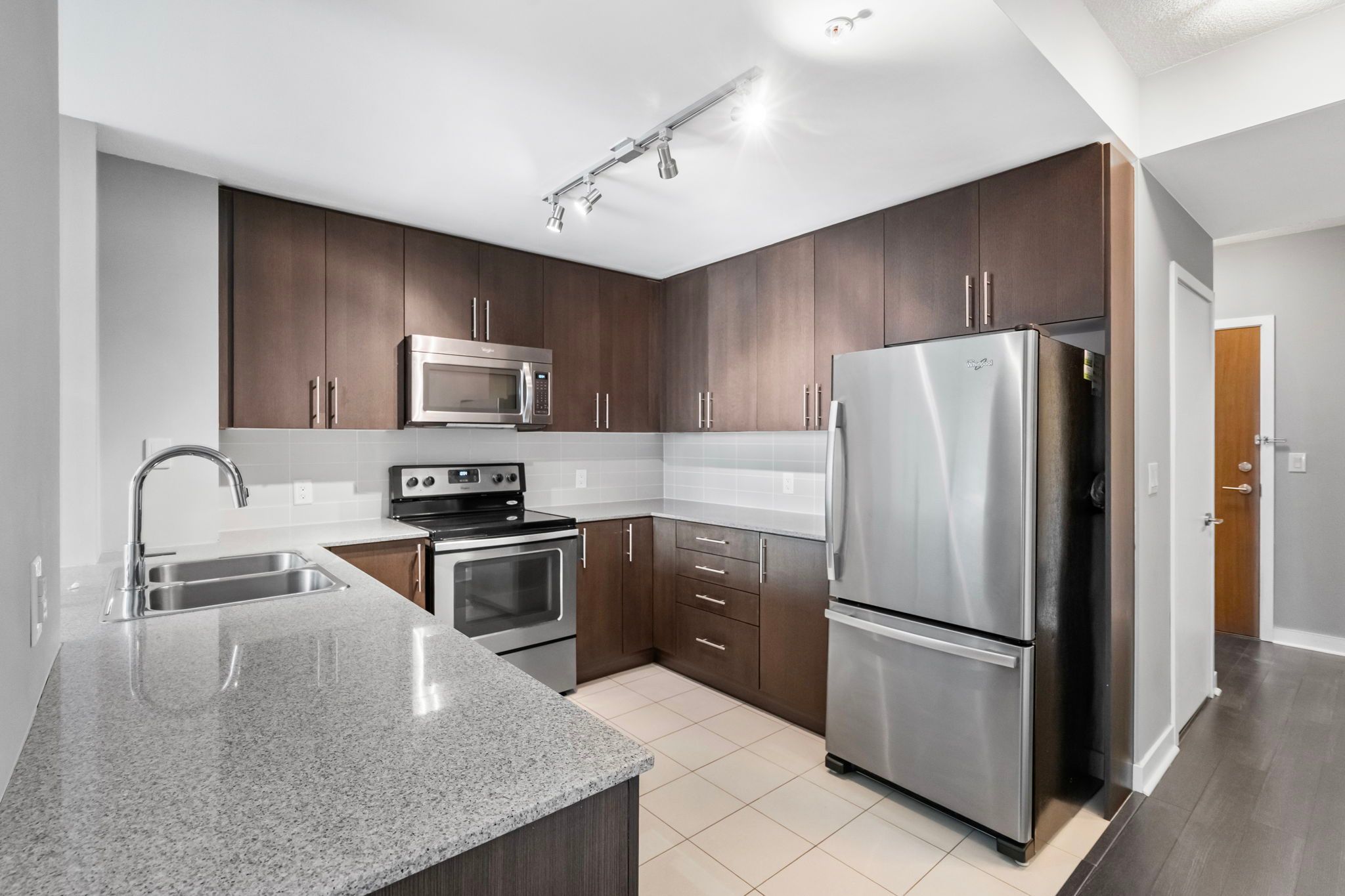 • Upgraded kitchen featuring stainless steel appliances and quartz countertops.