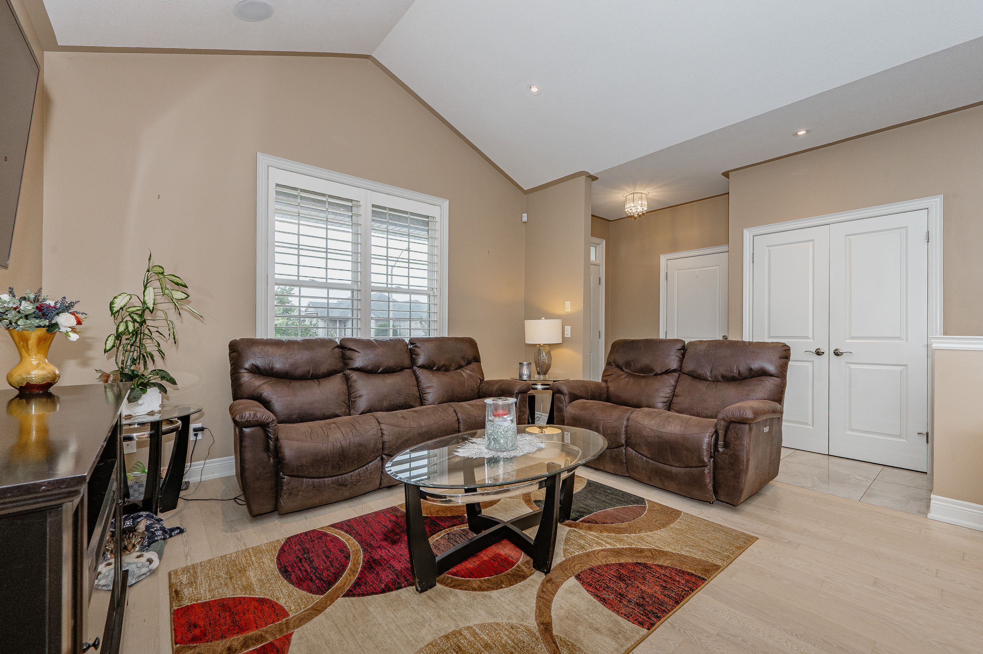 Welcome to 3985 lower coach road, a beautifully maintained open-concept bungalow set on a rare oversized reverse pie-shaped lot in one of stevensville's most desirable neighbourhoods. Built in 2017, this 4-bedroom, 3-bathroom home blends modern finishes with a functional layout suited to a wide range of lifestyles. The main floor features engineered hardwood, custom california shutters, a built-in speaker system, and an open-concept living and dining area. The kitchen offers granite countertops, a large 8-foot island with a built-in wine rack, a granite sink, 24-inch tile floors, and a spacious pantry. French doors lead to a full-length deck (2019) overlooking a deep, fully fenced backyard with no rear neighbours. This rare lot provides exceptional privacy, mature perennial gardens, two large sheds, and a double side gate ideal for trailer or boat access. The main floor includes two bedrooms, a second full 4-piece bathroom, and convenient main-floor laundry. The primary suite offers a private 3-piece ensuite and a walk-in closet. An attached 2-car insulated garage with an insulated automatic door and a double-wide driveway allows parking for up to six vehicles. The fully finished basement expands the living space with two additional large bedrooms, a 3-piece bathroom, and a generous rec room with a cozy gas fireplace. A large storage room adds practicality. With thoughtful details throughout, a private backyard setting, and a well-designed layout, this home is move-in ready and ideal for families, downsizers, or anyone looking for space and quality in stevensville.