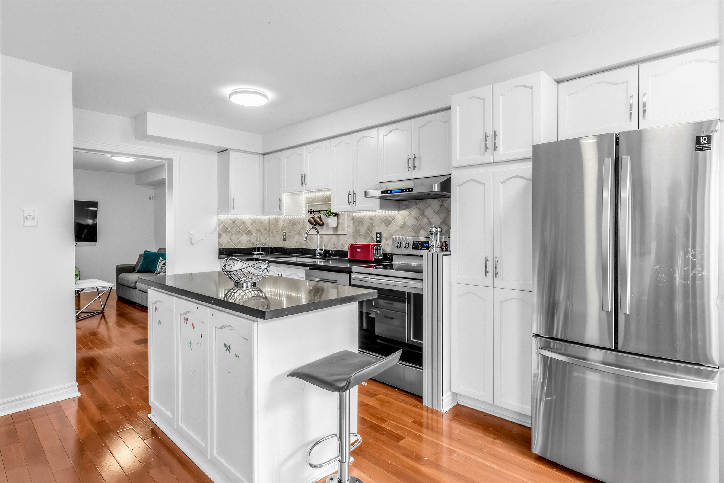 • Modern open-concept living and dining area with plenty of natural light.