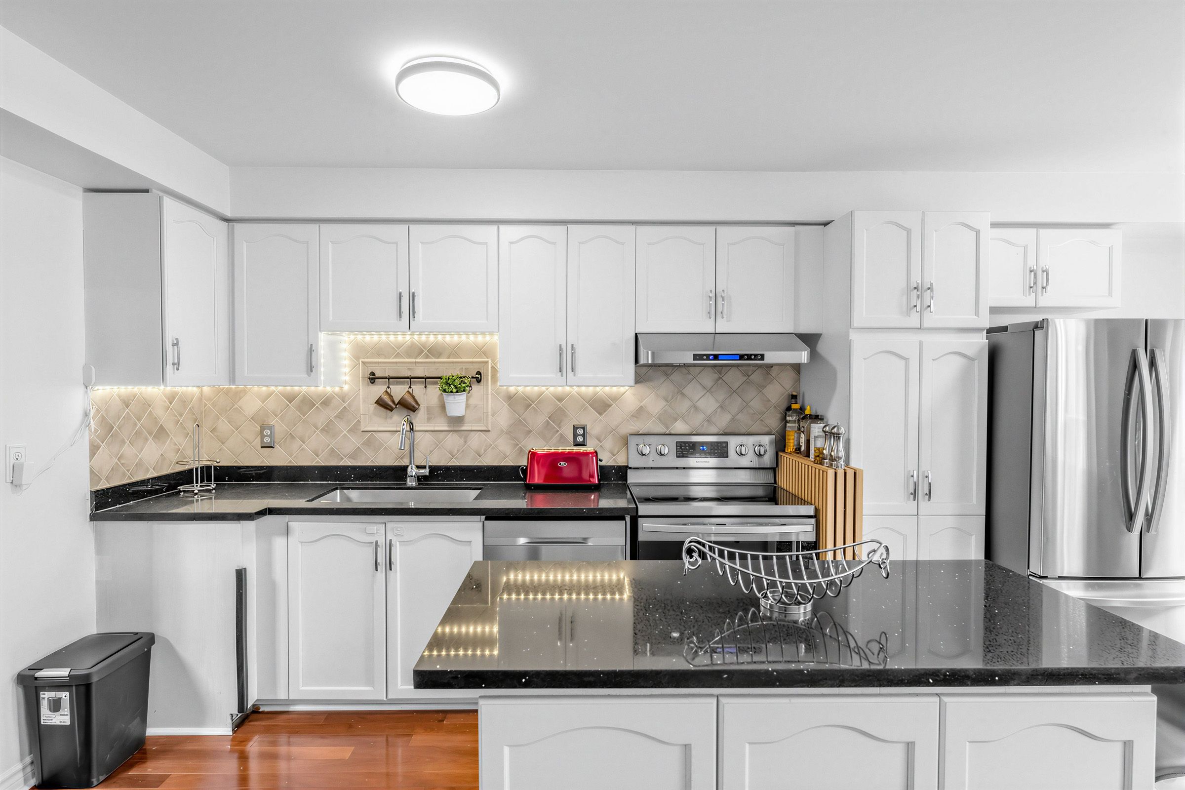An exceptional end-unit townhome offering the space and functionality of a semi-detached, set on a deep lot in a quiet, family-friendly cul-de-sac with minimal traffic. Proudly owned and meticulously maintained, this home has been thoughtfully updated throughout and is truly move-in ready. Featuring 3 spacious bedrooms and 3 bathrooms, the home offers a highly functional layout designed for modern living. The main floor showcases rich hardwood flooring, an open-concept living and dining area, and an abundance of natural light thanks to its end-unit positioning. The beautifully updated kitchen is the heart of the home, complete with a centre island, ample cabinetry, and a seamless flow for both everyday use and entertaining. Upstairs, you'll find generously sized bedrooms, including a sun-filled primary retreat, along with fully renovated bathrooms featuring stylish, contemporary finishes. Laminate flooring and carpeting throughout the upper levels add comfort and a fresh, modern feel. The finished basement provides valuable additional living space, perfect for a family room, home office, gym, or guest area - offering flexibility to suit your lifestyle needs. Step outside to enjoy the deep lot, providing extra outdoor space rarely found in townhomes - ideal for relaxing, entertaining, or family use. Located in a highly convenient pocket, just minutes to top-rated schools, parks, community centres, smartcentres shopping, and with quick access to highways 401 and 407, this home offers the perfect balance of comfort, space, and accessibility. A rare opportunity to own a turnkey end-unit in a prime location - this is one you don't want to miss.