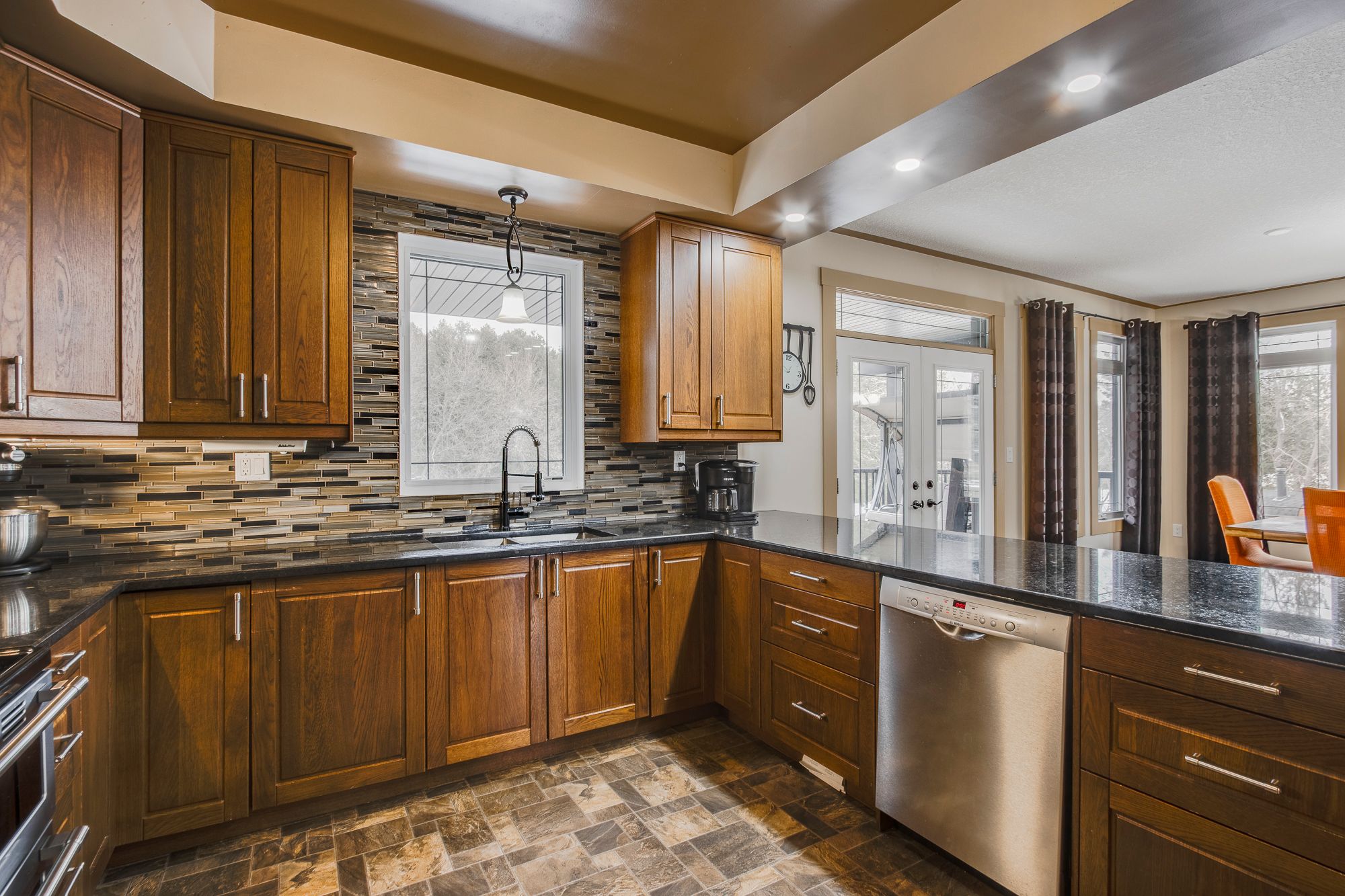 Nestled on 9. 5 sprawling acres of pristine land, this stunning home is perfect for those seeking a peaceful retreat from the hustle and bustle of everyday life. The foyer leads to a spacious living area featuring a magnificent double-sided fireplace with its stunning stone surround & mantel, adding a touch of rustic elegance. On one side, you'll find a cozy living room perfect for relaxing evenings, while the other side opens into a dining area perfect for casual family meals or hosting guests. The heart of the home features a gourmet kitchen adorned with custom cabinetry & sleek granite countertops, providing ample space for meal preparation. The spacious walk-in pantry is an organizer's delight, offering generous space to store provisions & kitchen essentials while keeping everything conveniently within reach. The home is thoughtfully designed & features wide hallways, high ceilings & large windows to invite natural light to flood the rooms and highlight the picturesque views of the surrounding landscape. Each of the six bedrooms is generously proportioned, with the primary suite offering a spa-like ensuite bathroom complete with a tub, walk-in shower, & dual vanities, as well as a spacious walk-in closet. The additional bedrooms are versatile & ideal for accommodating guests, creating a home office, or indulging in hobbies. Step outside onto the covered back deck, overlooking a serene backyard, this inviting space is ideal for morning coffee, dine in harmony with nature, or simply relaxing and taking in the beauty of the surroundings or enjoying the sauna and hot tub - perfect for unwinding after a long day. There's a large, detached shop & chicken coop. The tranquil setting is enhanced with a gentle river as the northern boundary. Whether you dream of hosting gatherings on the lush grounds or simply reveling in the serenity of your surroundings, this home is a rare gem that blends modern comfort with nature's beauty. A truly idyllic escape! (total 4,640 sq ft)