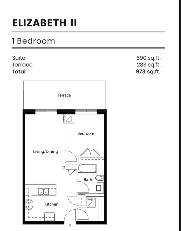 • Convenient in-suite washer and dryer plus designated parking spot.